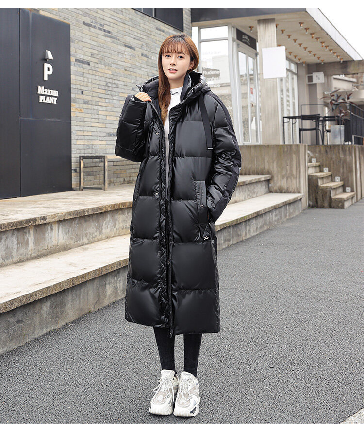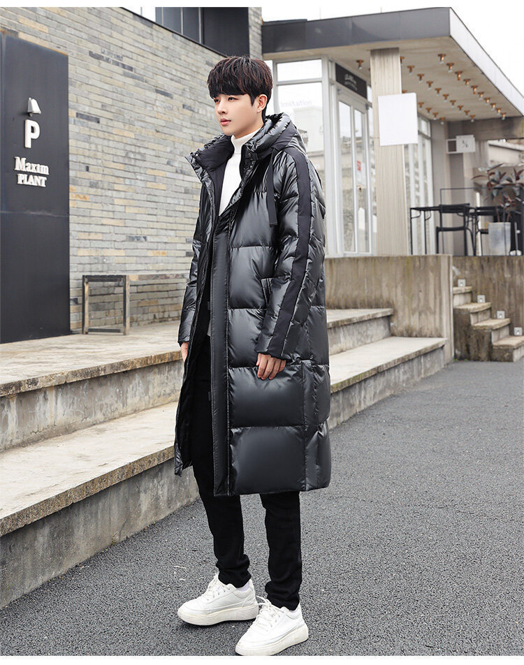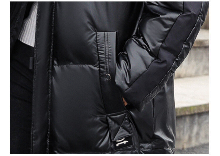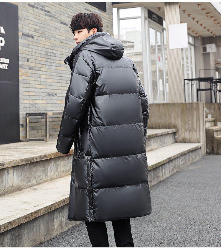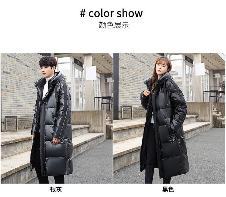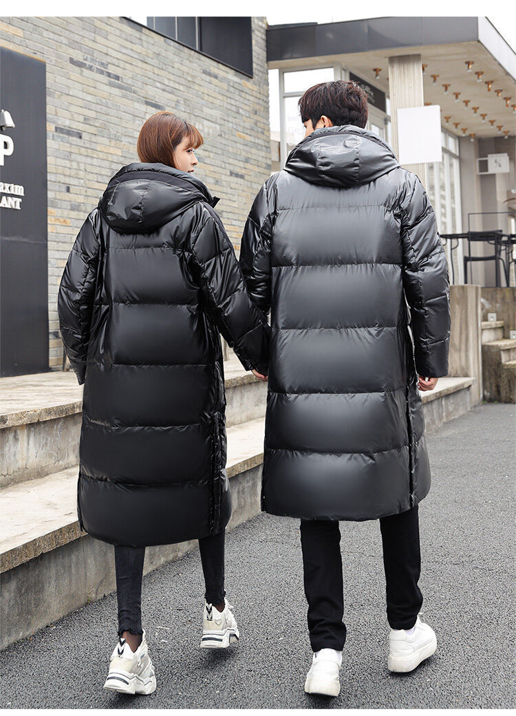 Abajo chaqueta de los hombres y de las mujeres de la mitad de la longitud de la superficie brillante engrosada cálida pareja abajo chaqueta de invierno de los hombres jóvenes Chaqueta de algodón acolchado