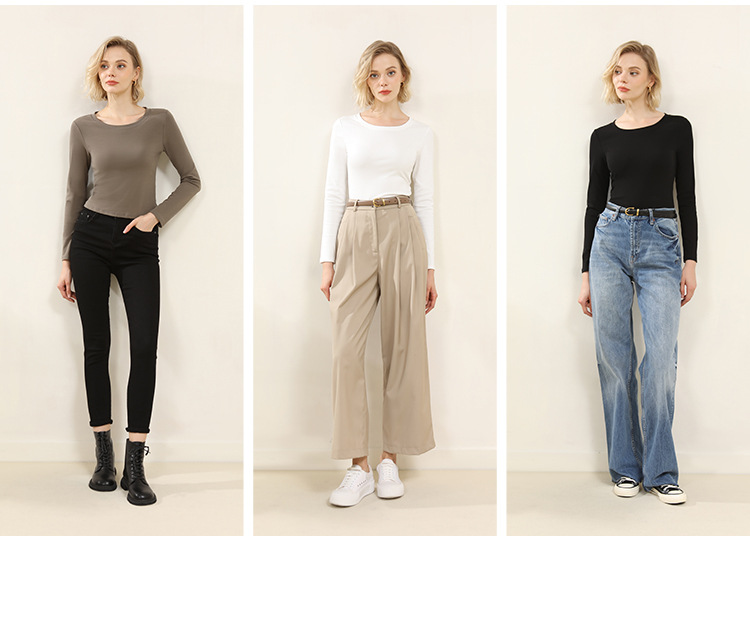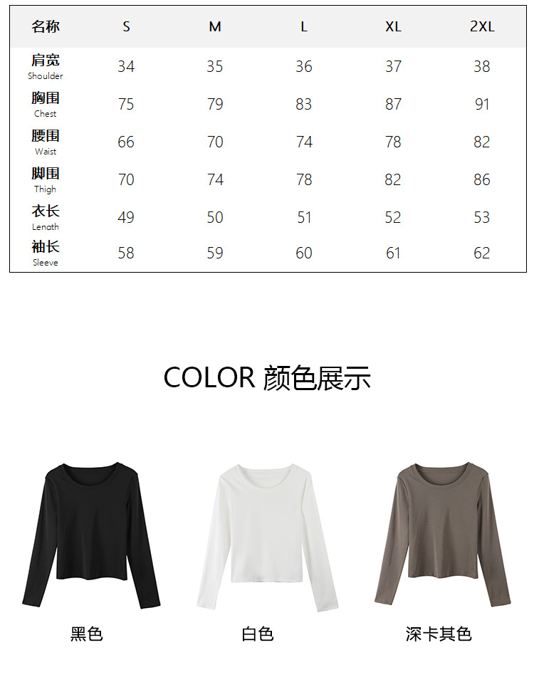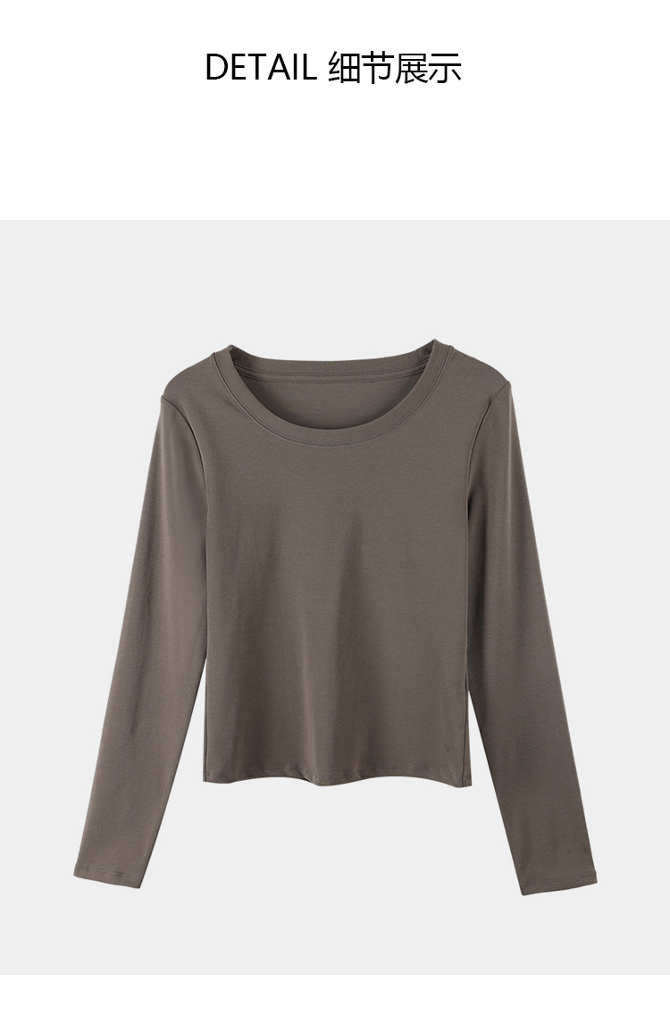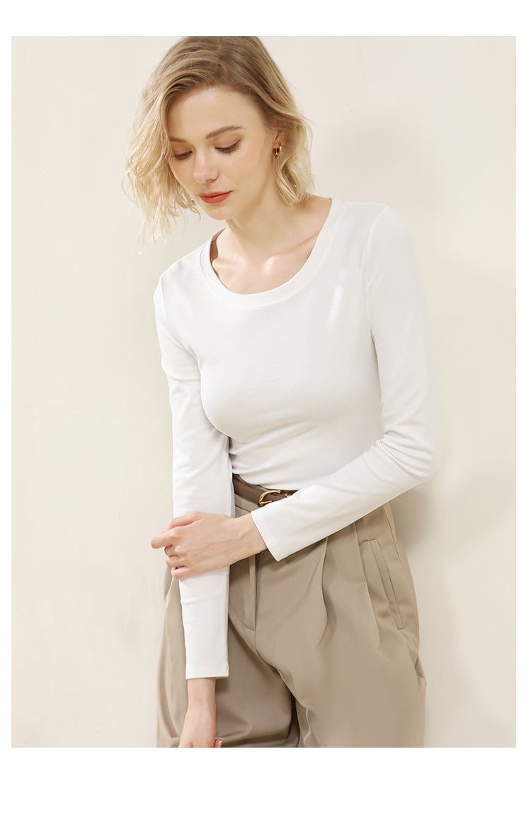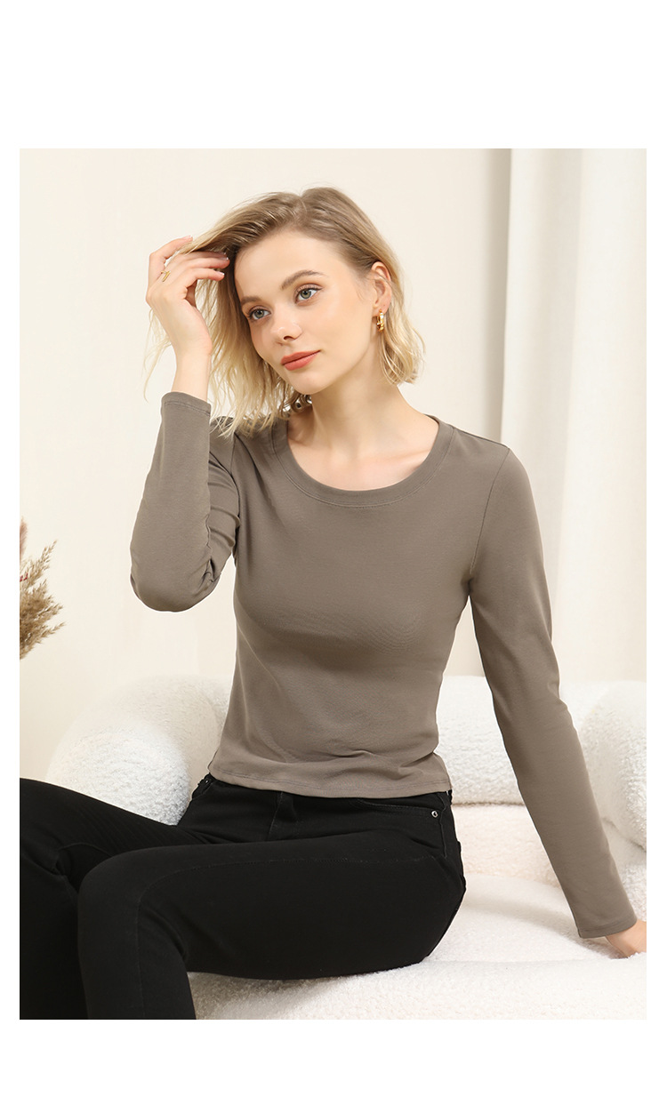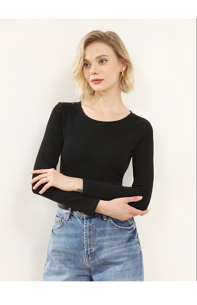 Ropa de Otoño e Invierno para mujer nueva camisa de fondo estilo coreano Cuello redondo para mujer Slim fit adelgazamiento color sólido Algodón elástico desgaste exterior interior superior