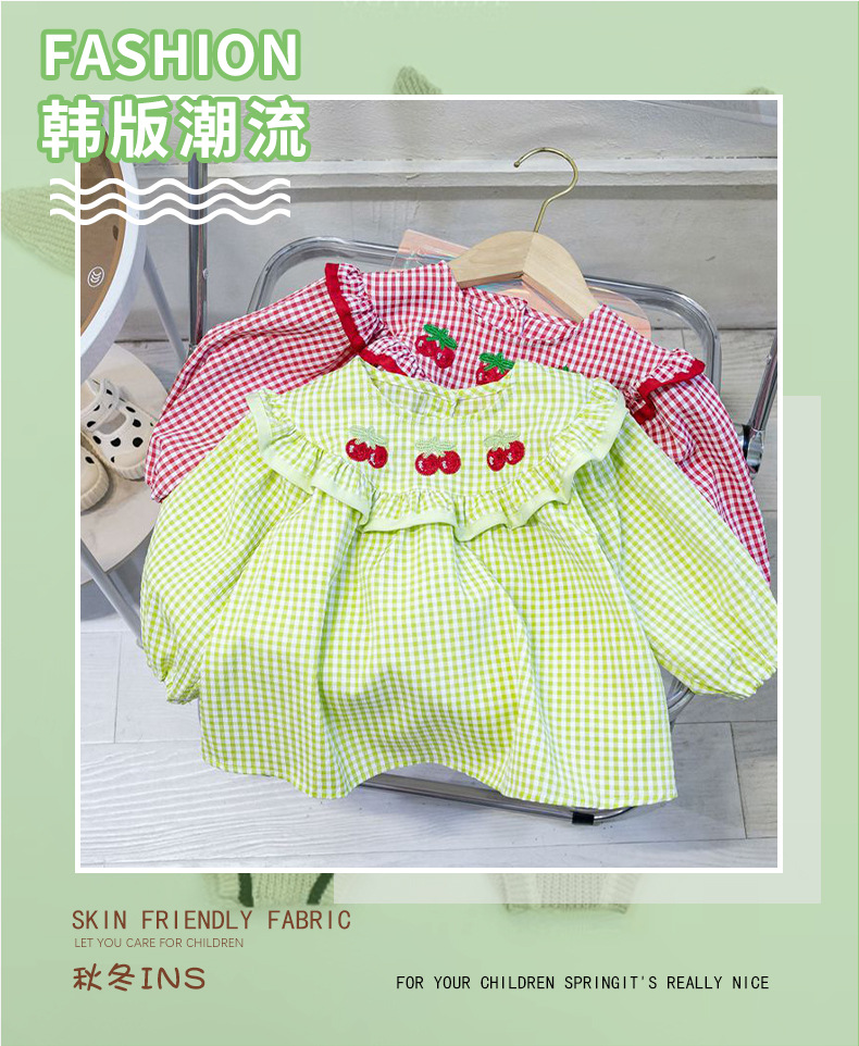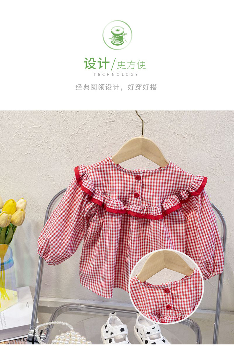 Camisa de las niñas primavera y otoño Camisa a cuadros de las niñas de estilo occidental camisa de muñeca de manga larga para niños ropa de otoño para niñas otoño