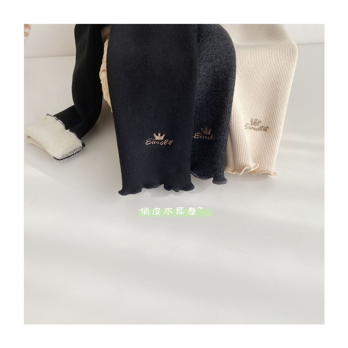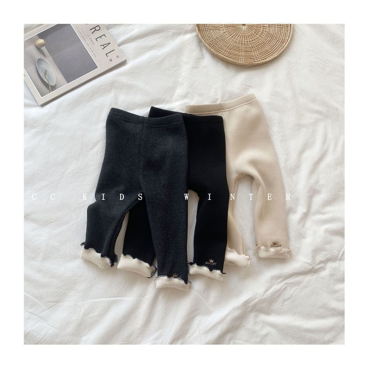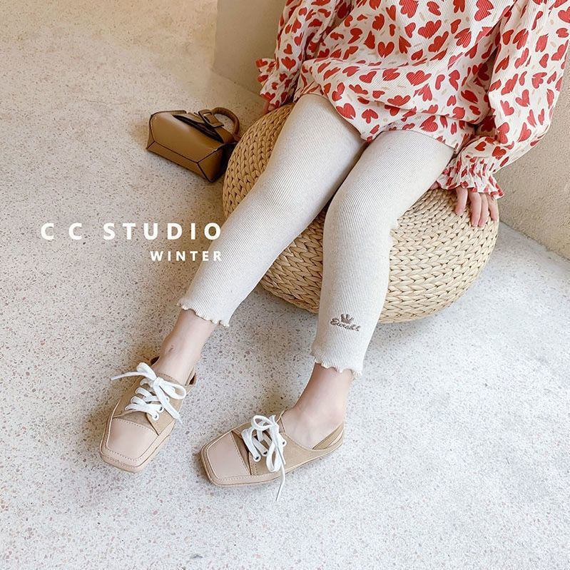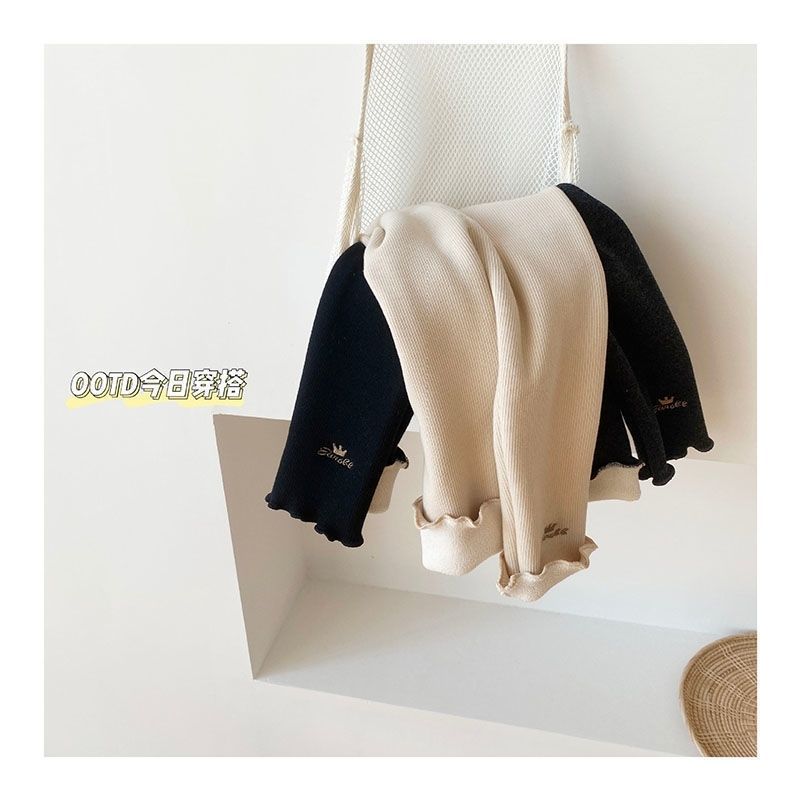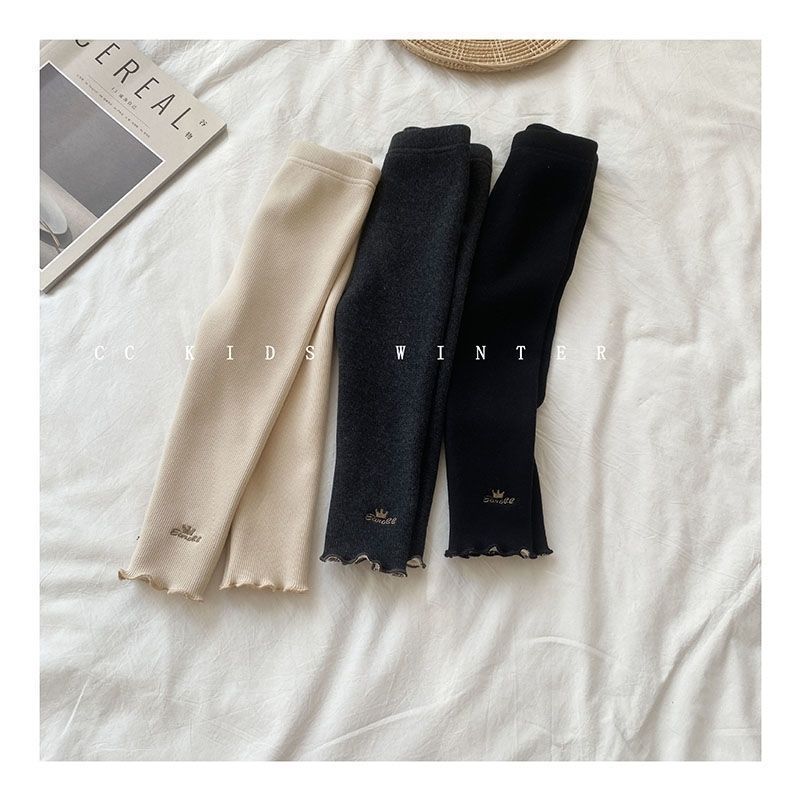 Otoño e invierno Nuevo de terciopelo infantil hongo rollo polainas forrado de lana/no forrado de lana bordado de una sola pieza de terciopelo cálido pantalones de las niñas
