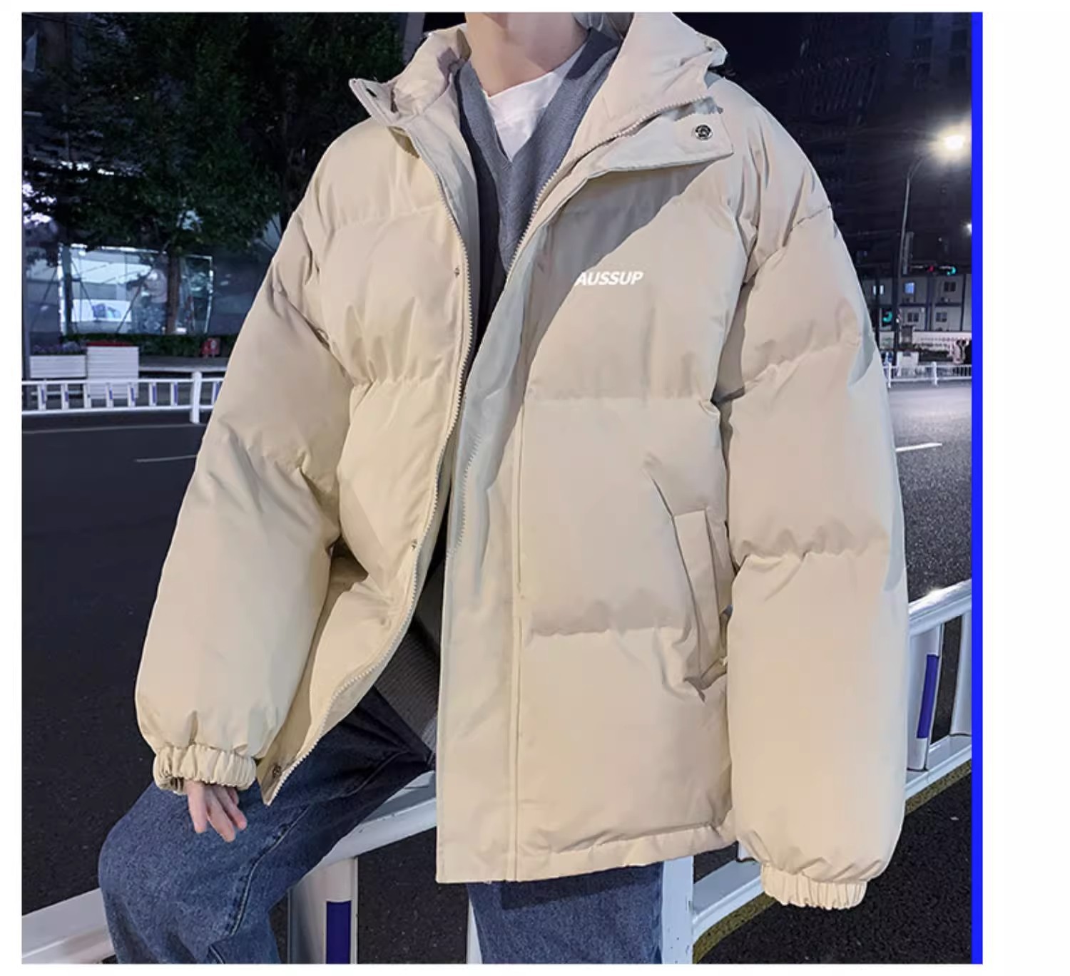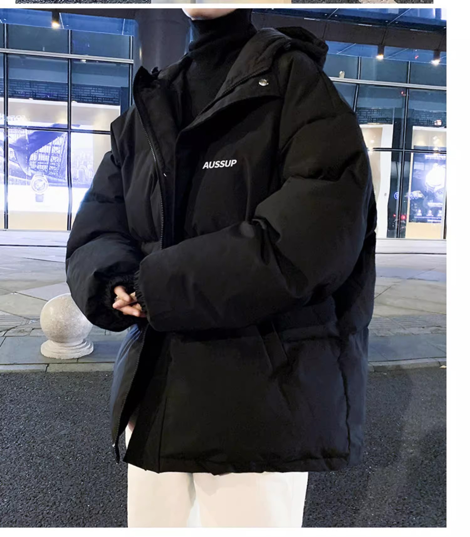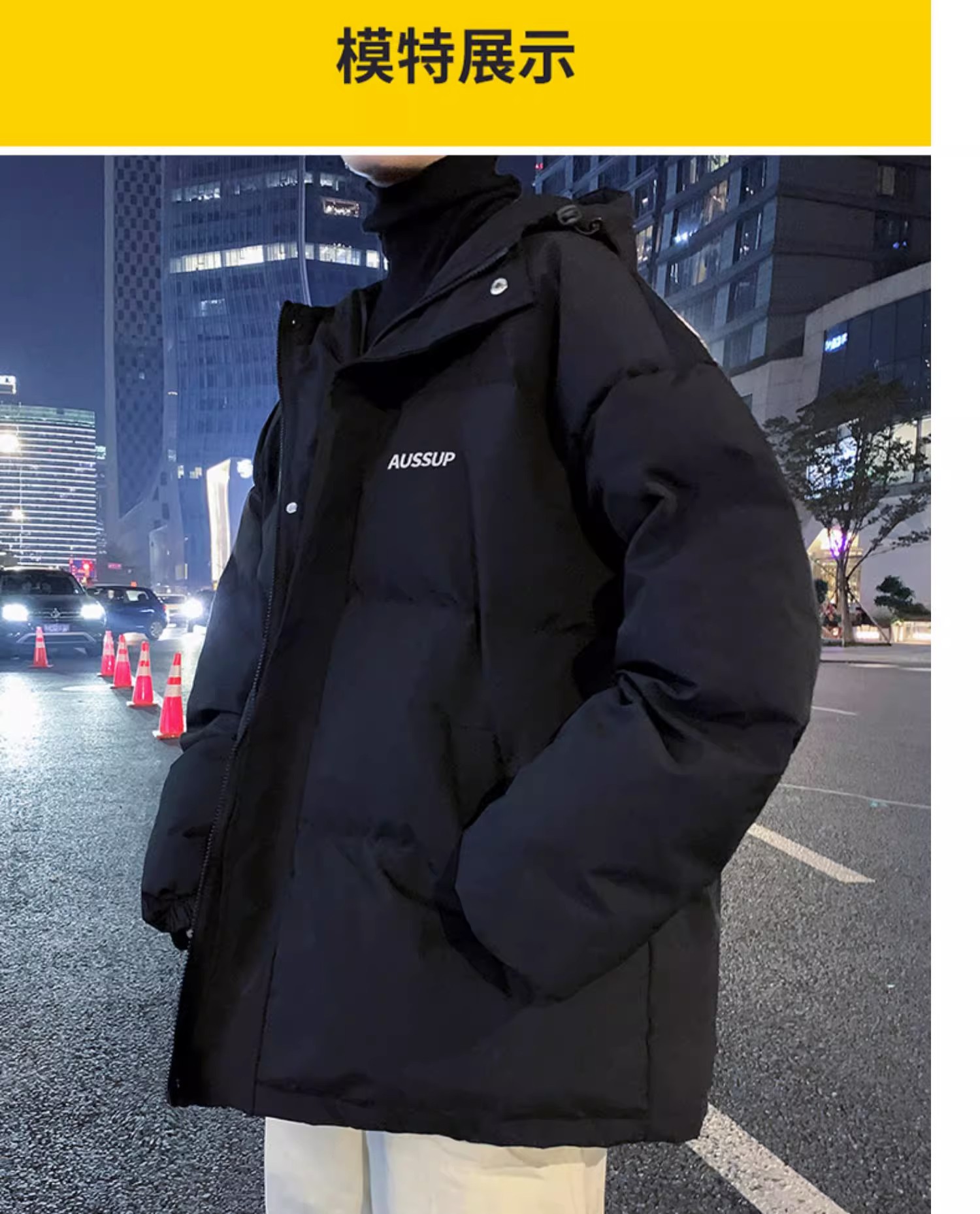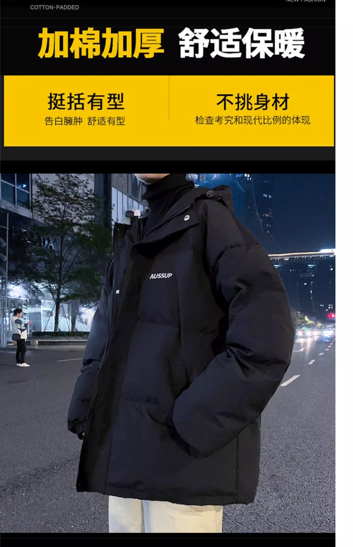 Abrigo acolchado de algodón Otoño e Invierno nueva chaqueta con capucha para hombre cálido color sólido estilo coreano versátil a prueba de viento a prueba de frío suelta chaqueta acolchada de algodón casual