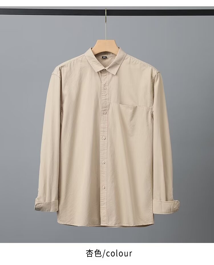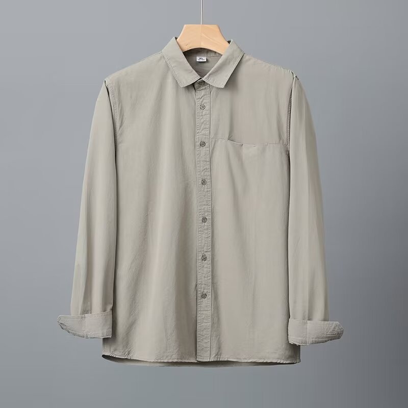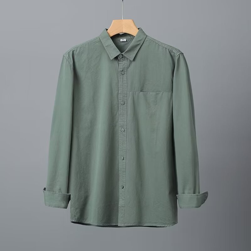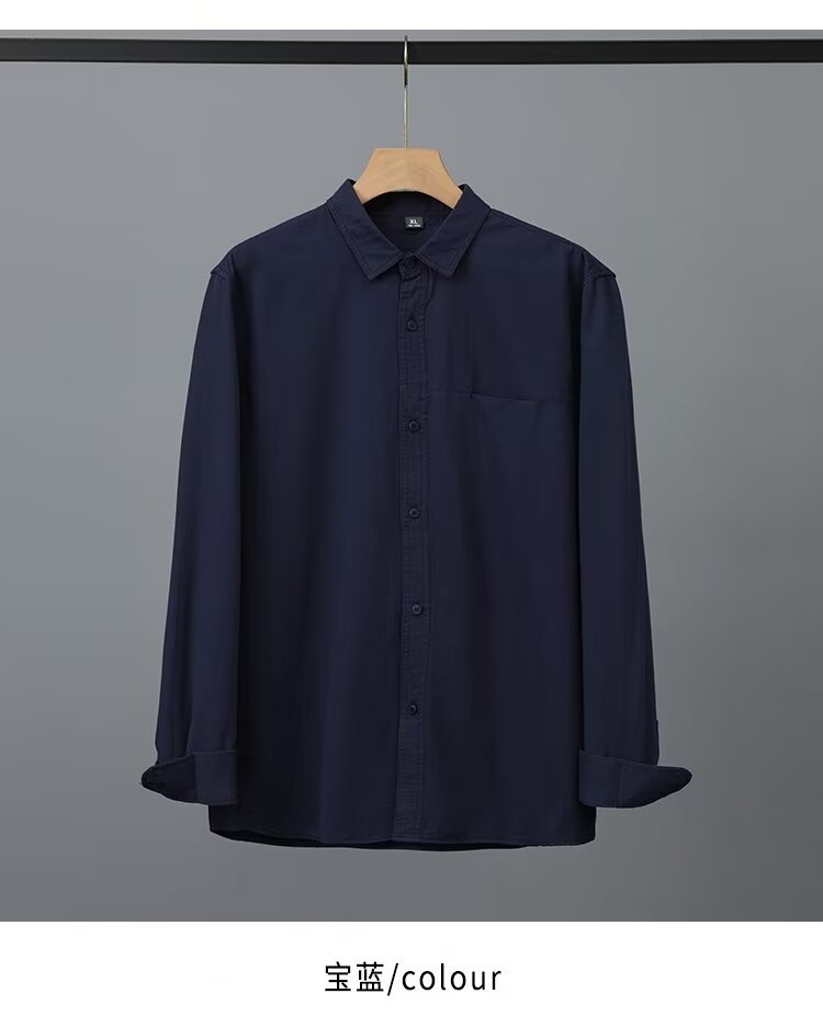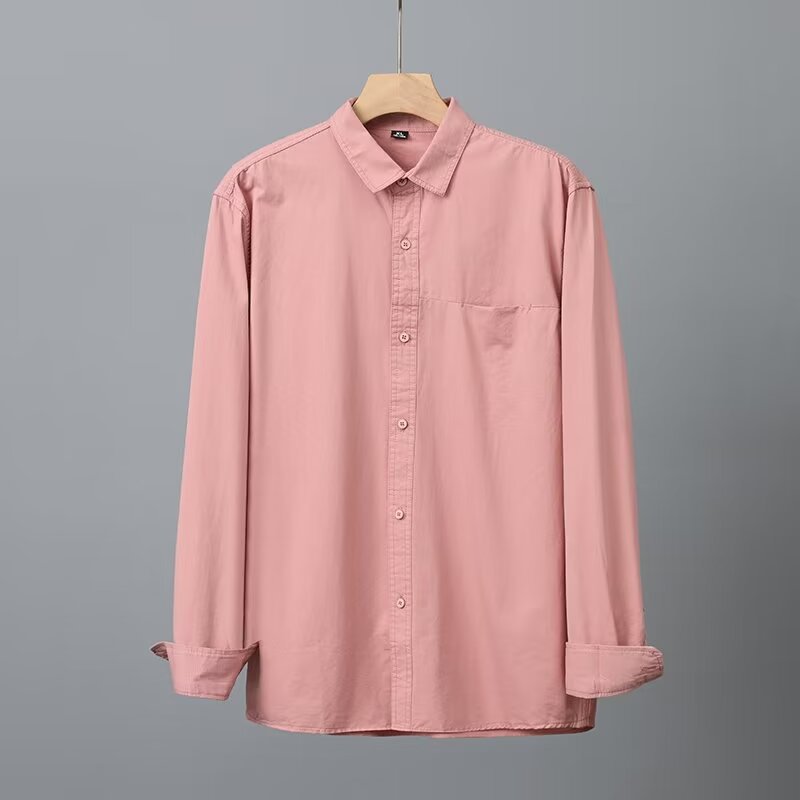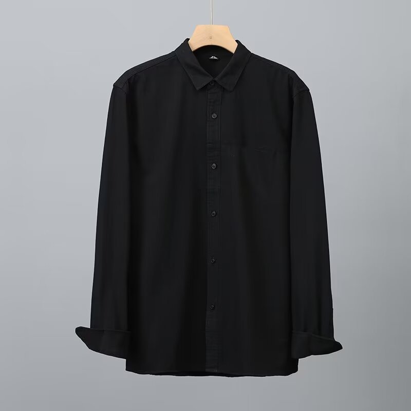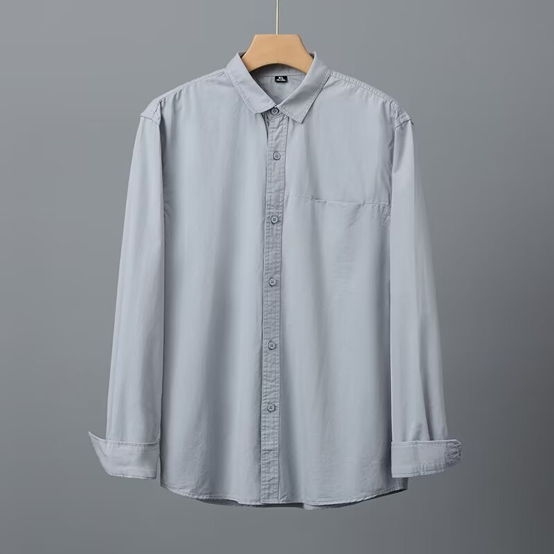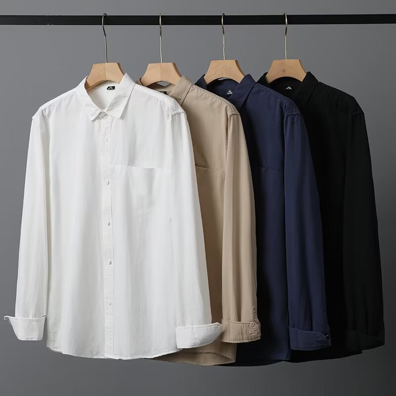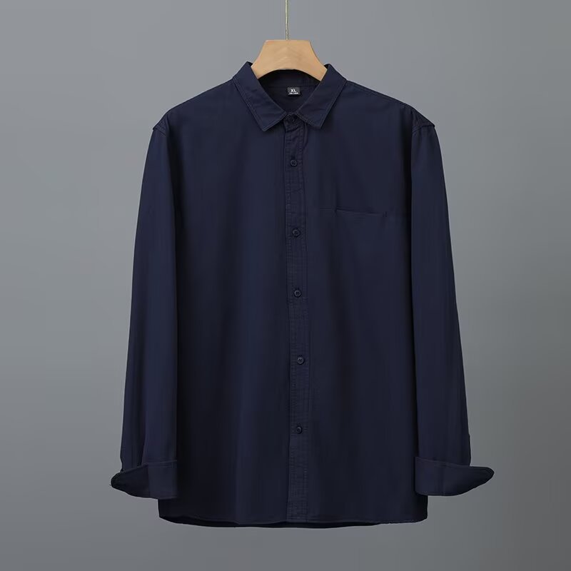Camisa de algodón blanco pesado americano para hombres, primavera y otoño, casual, suelta, camisa de solapa de manga larga, chaqueta superior