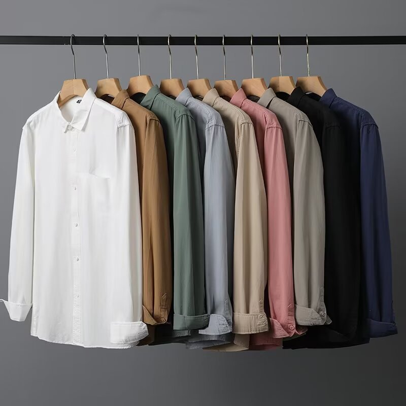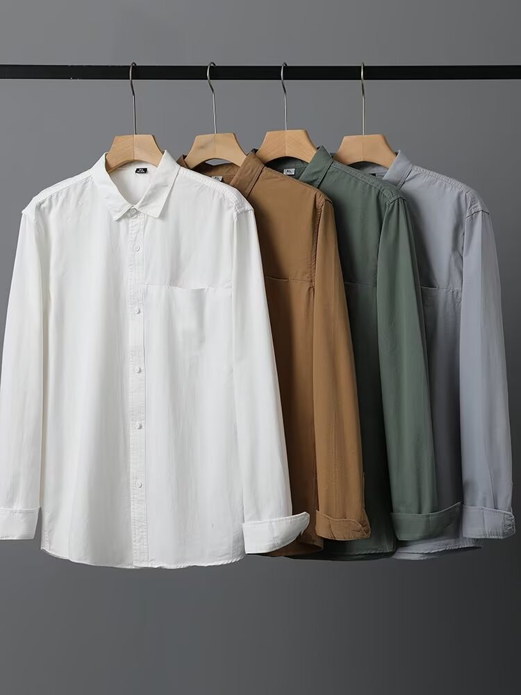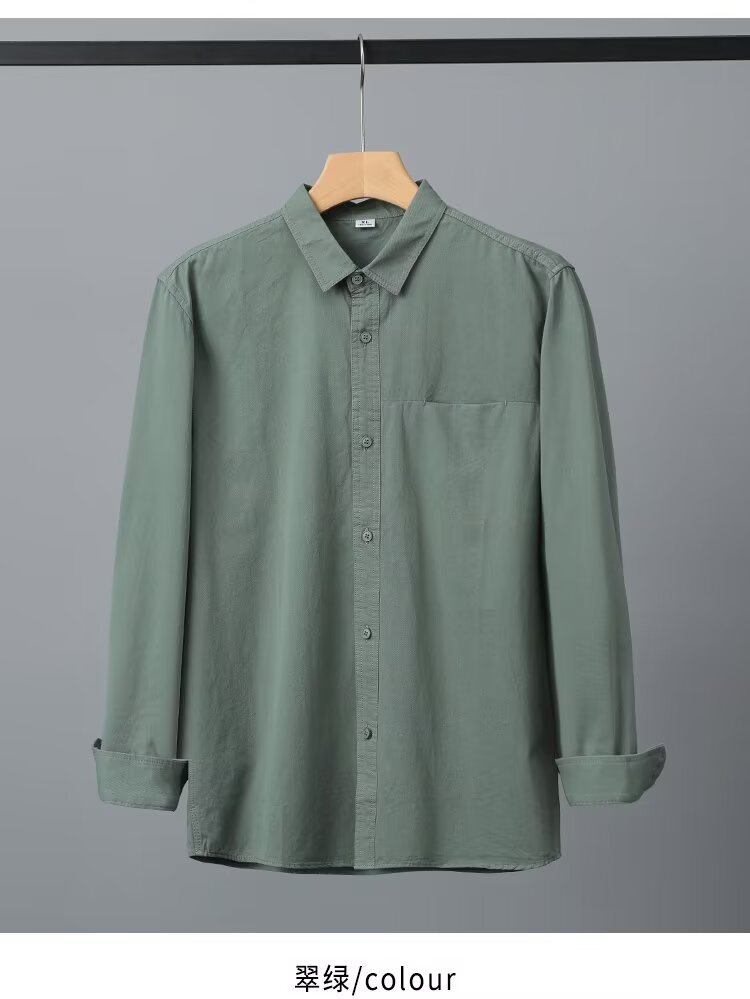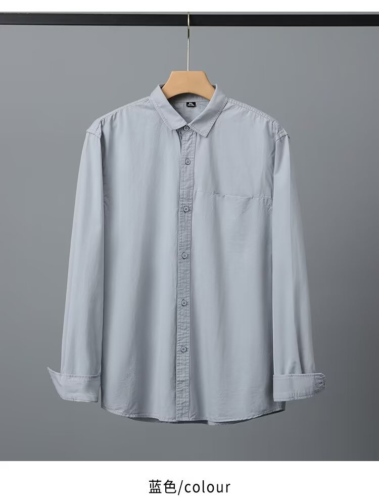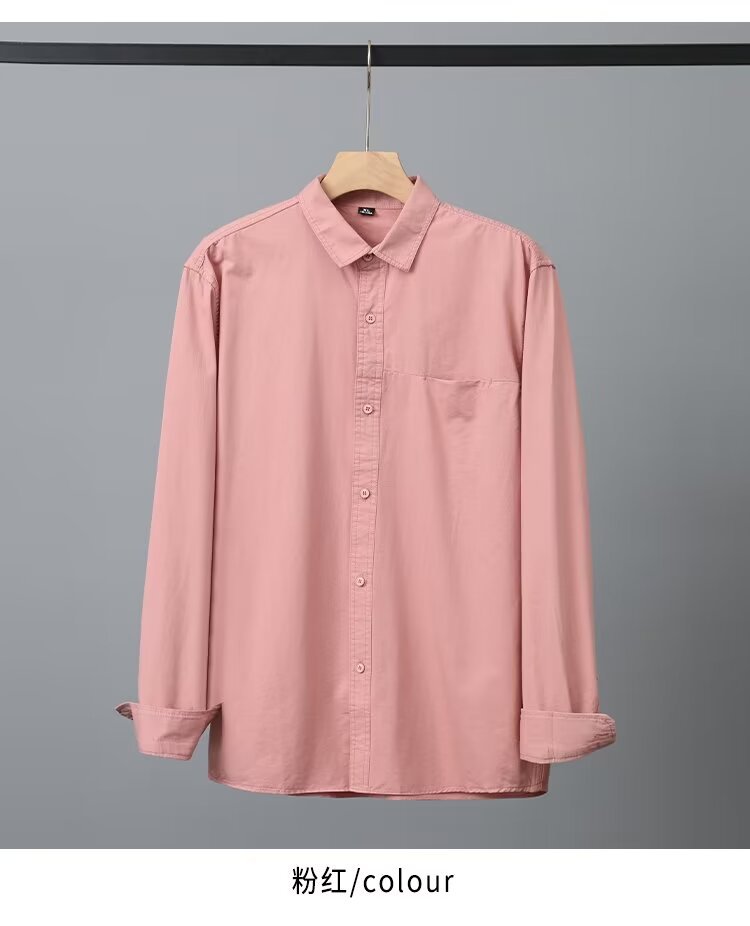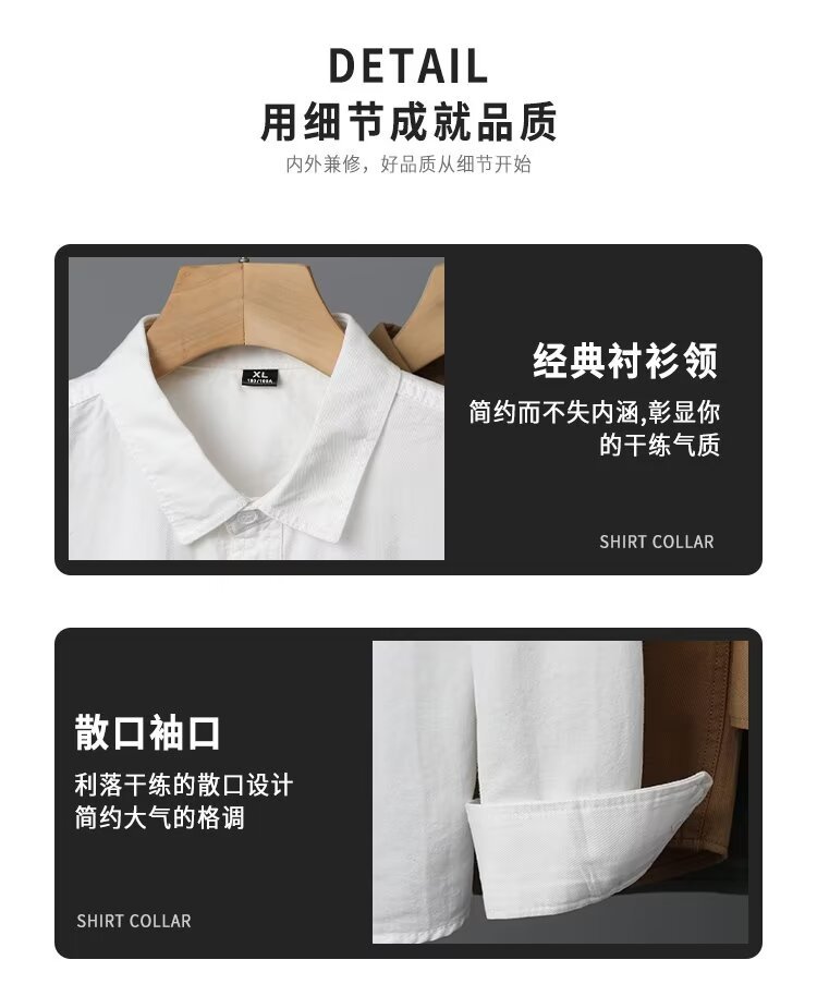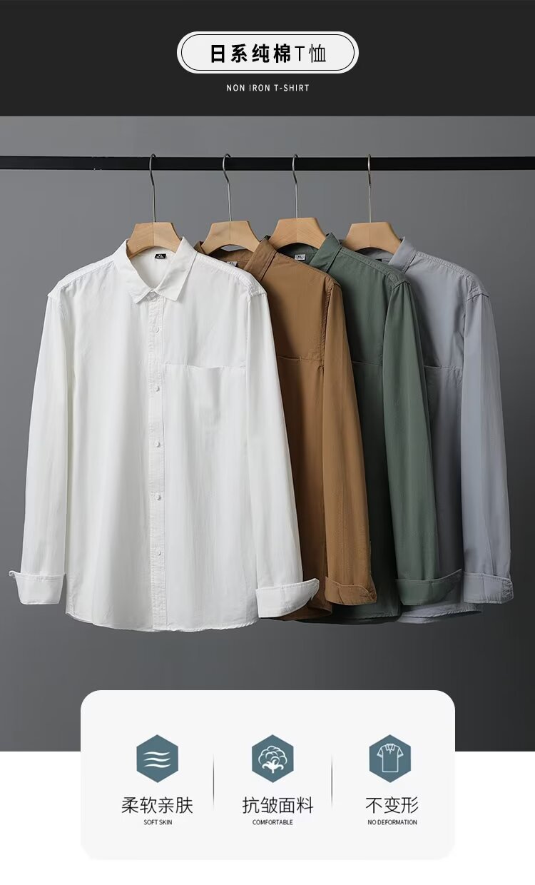 Camisa de algodón blanco pesado americano para hombres, primavera y otoño, casual, suelta, camisa de solapa de manga larga, chaqueta superior