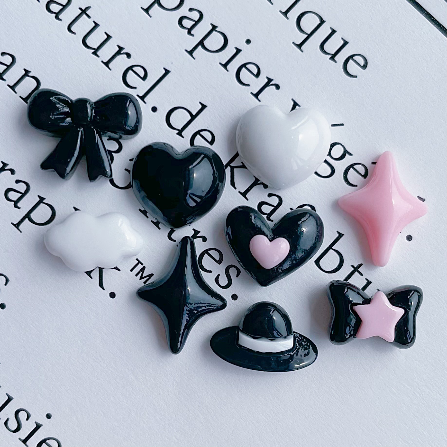 Negro Rosa Pajarita amor corazón estrella de cuatro esquinas superficie brillante accesorios de resina Mini tamaño pequeño pegamento de crema pendientes de uñas accesorios Nuevo