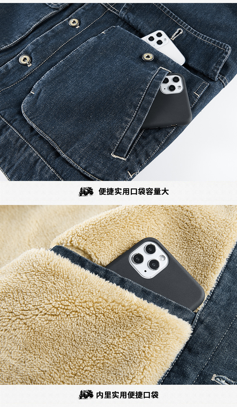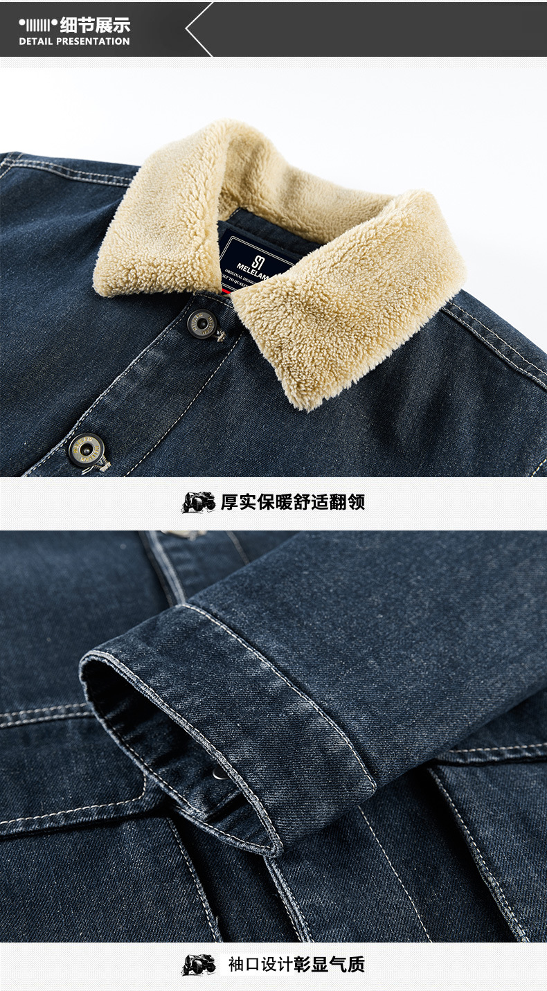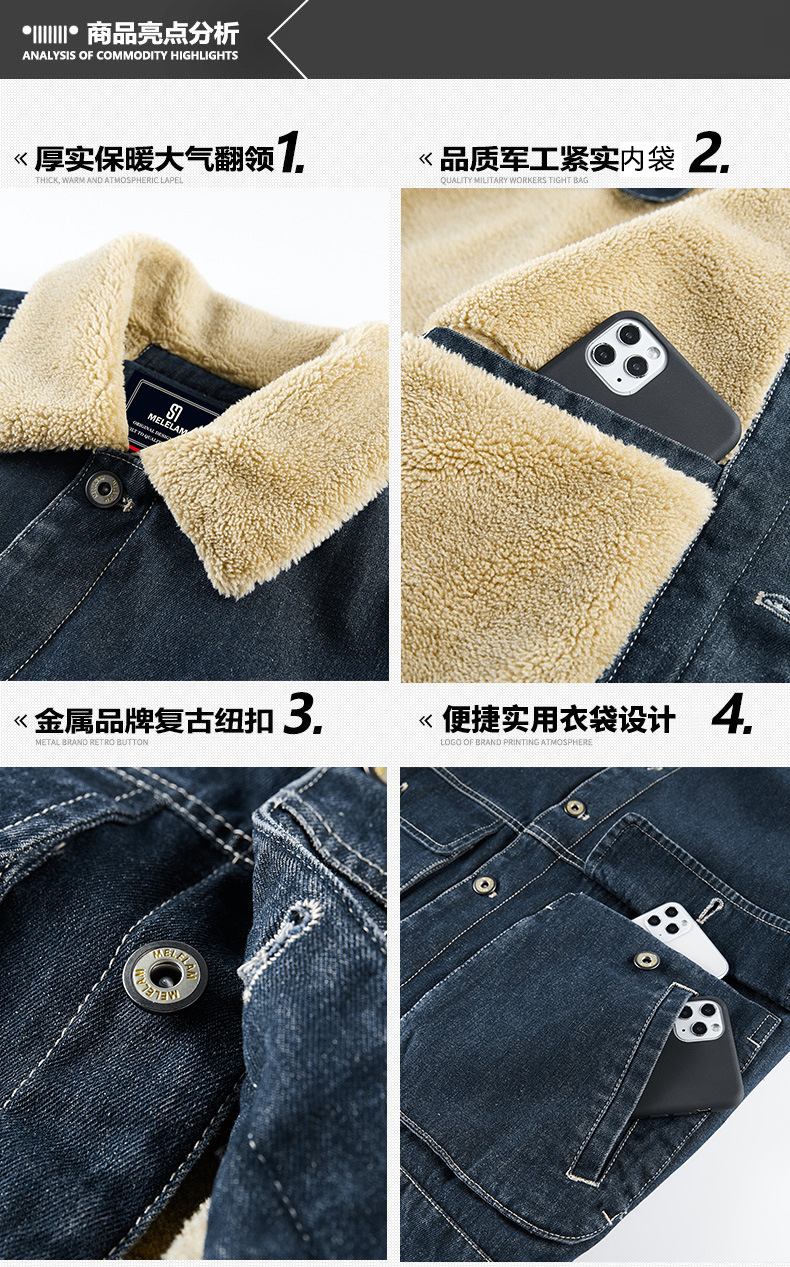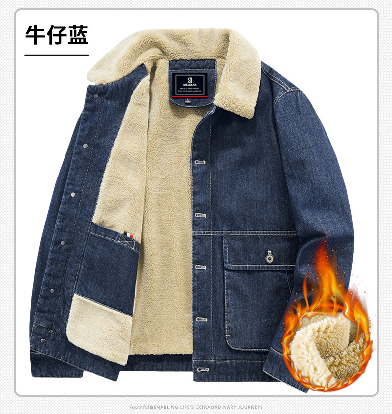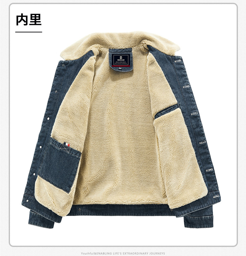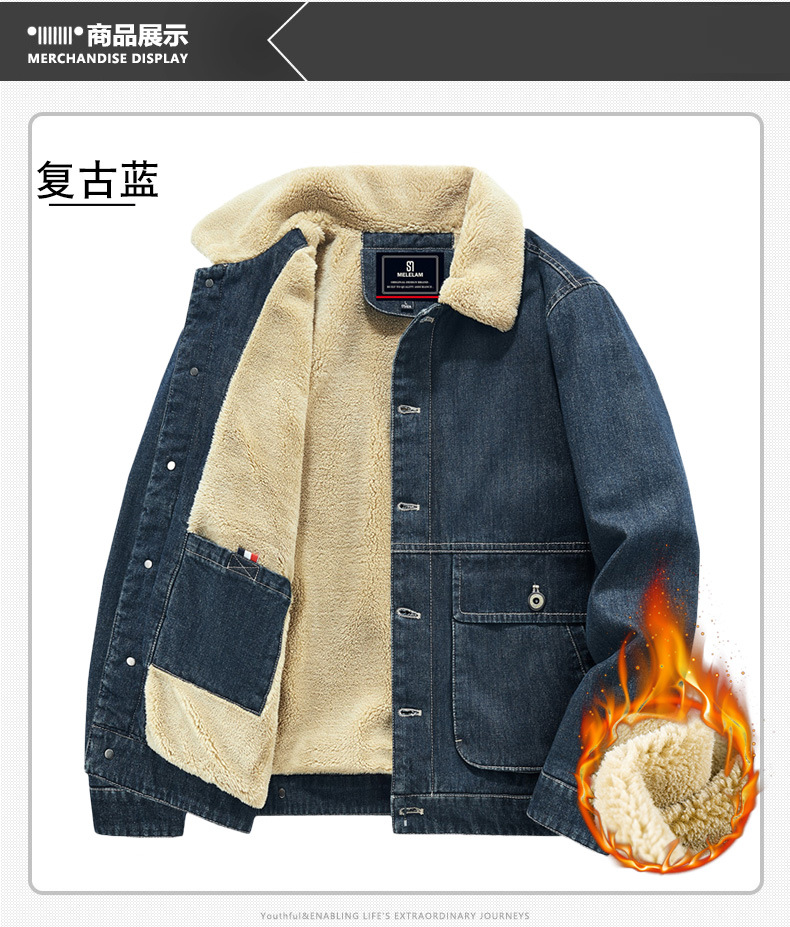 Cross-border exclusivo vintage lambswool abrigo de algodón acolchado de invierno de los hombres de lana engrosada cálido abrigo de mezclilla guapo abrigo de algodón acolchado