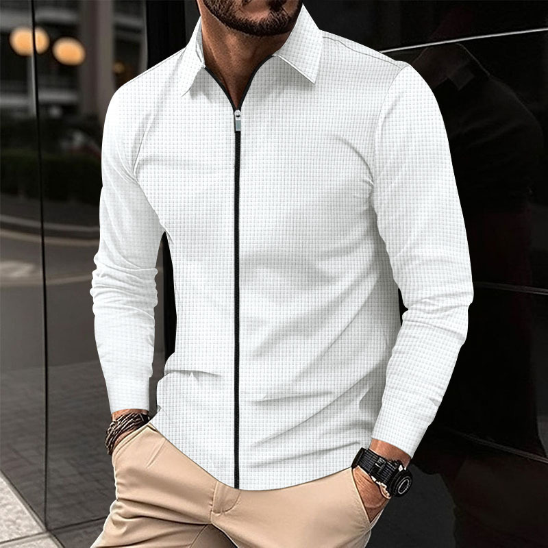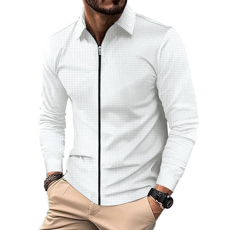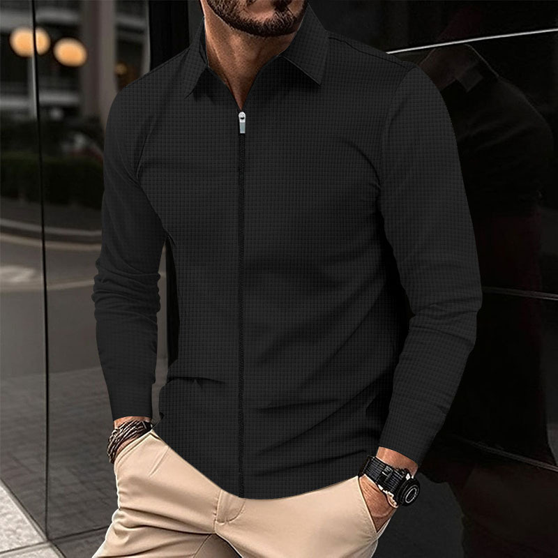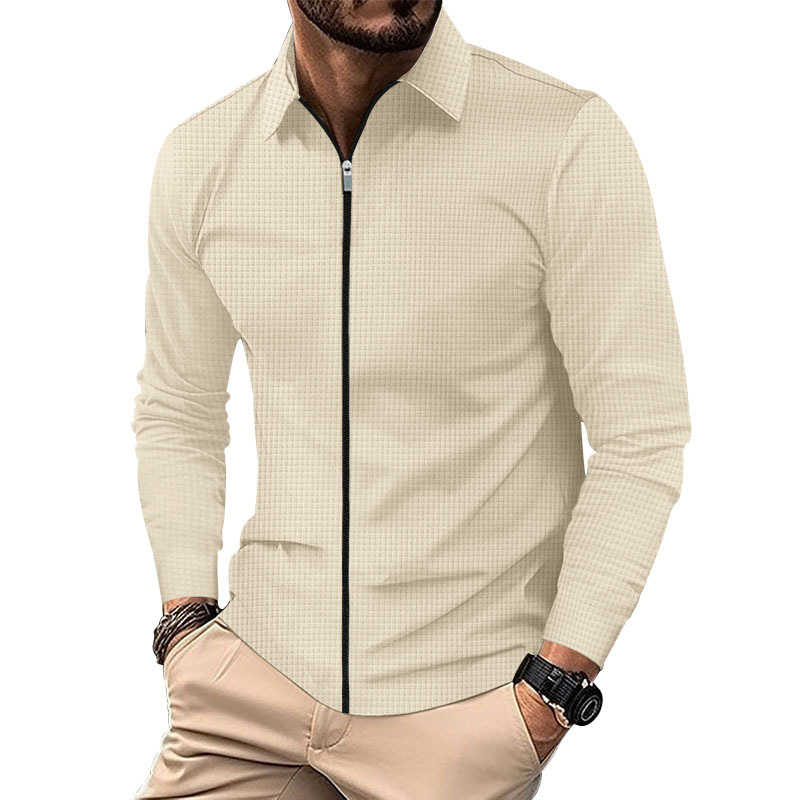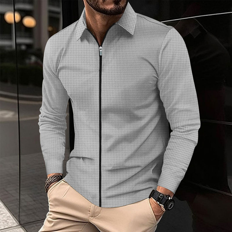 Cross-border 2023 chaqueta cardigan Otoño de los hombres Nueva chaqueta de cremallera de los hombres ocasionales de manga larga chaqueta de la galleta de solapa