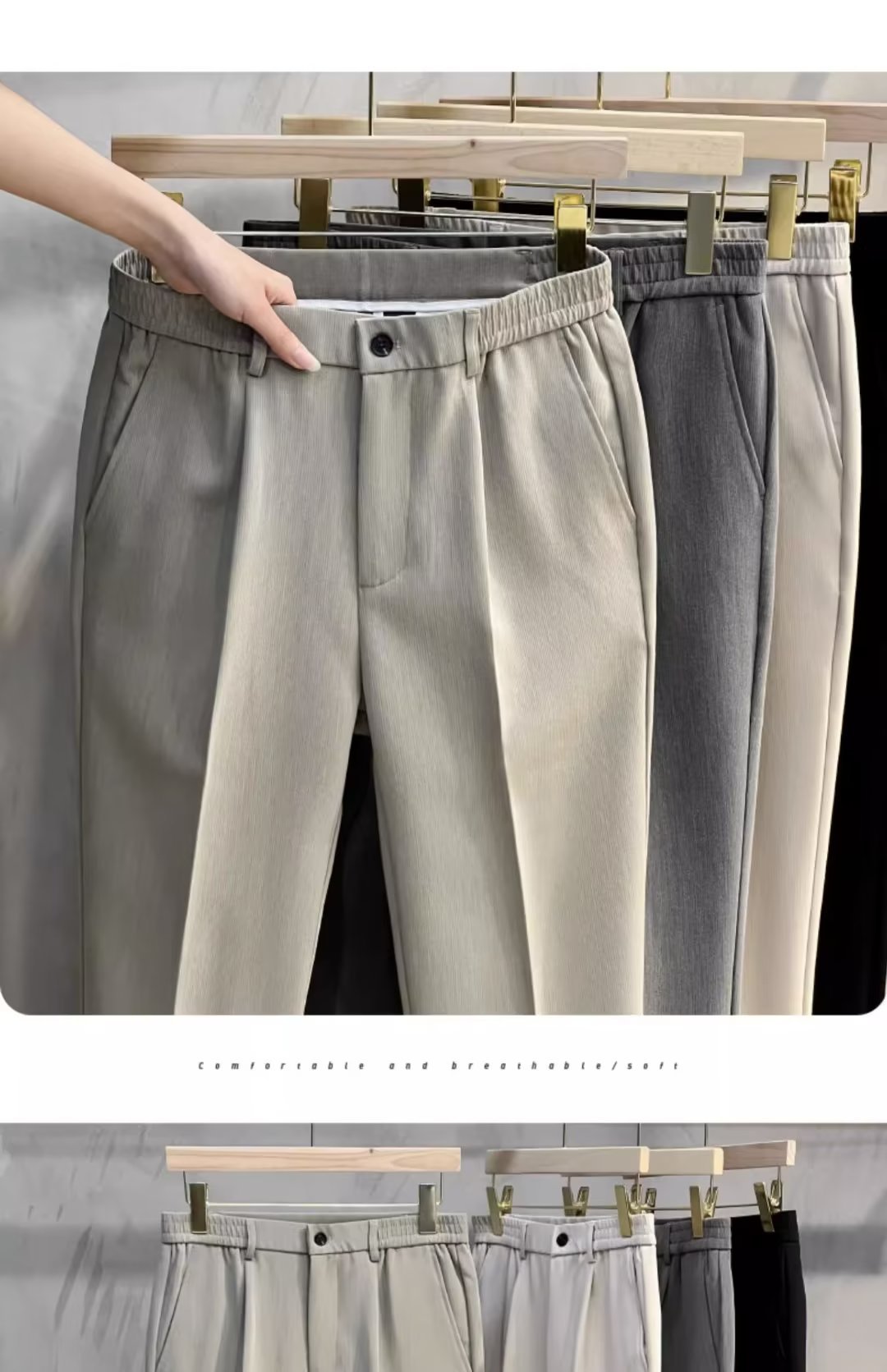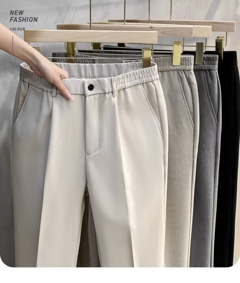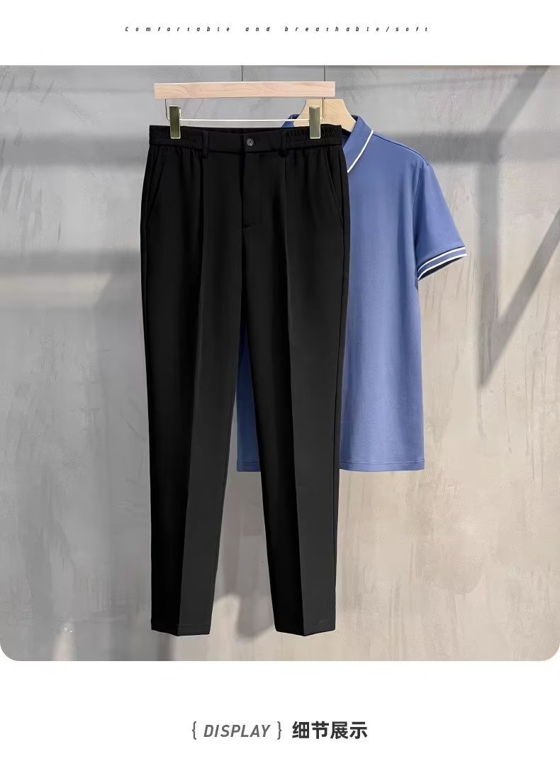 Primavera y otoño drapeado recortado pantalones de traje skinny hombres de negocios casual recto SLIM-Fit anti-arrugas no planchar traje pantalones de moda