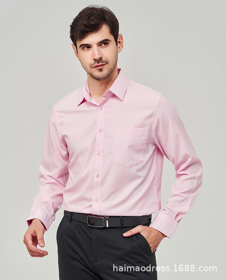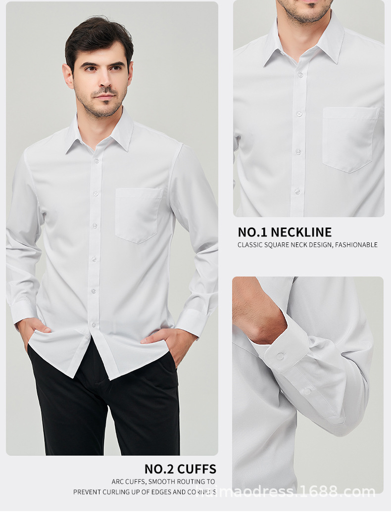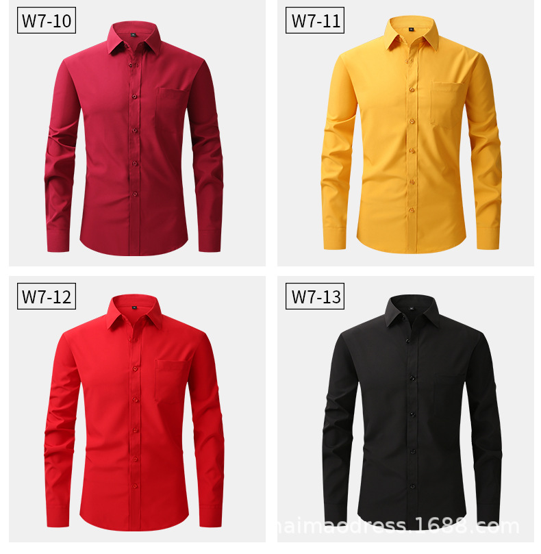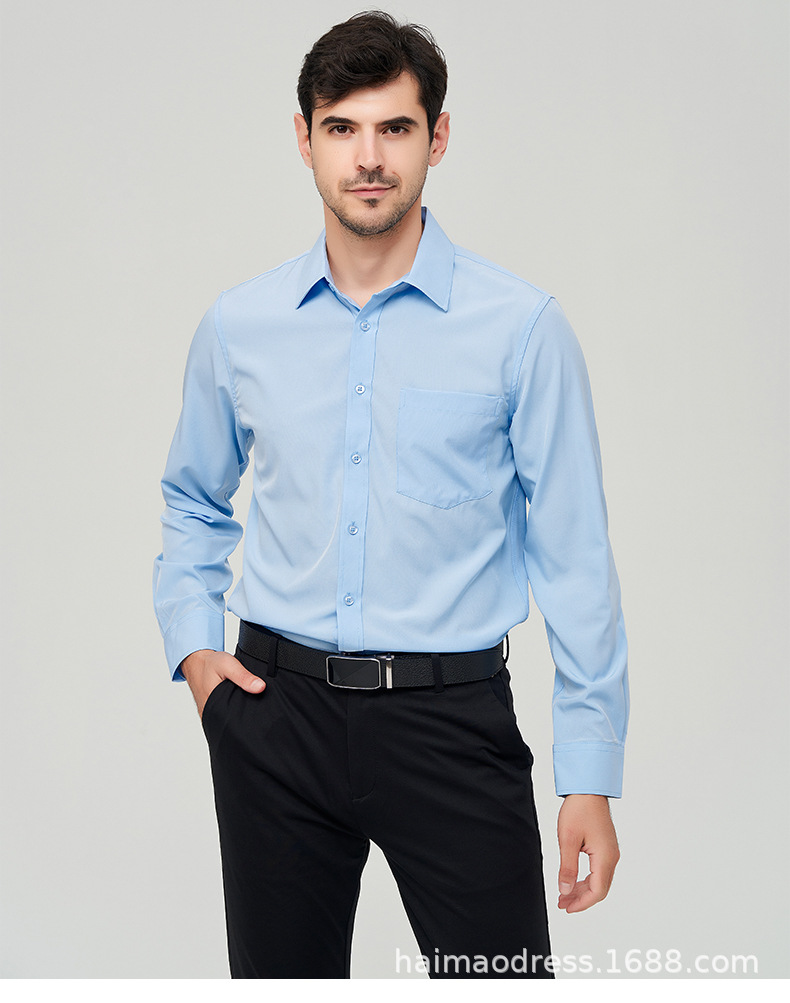 Camisa blanca de manga larga para hombre de primavera delgada de Amazon, transpirable elástico y antiarrugas, top profesional de negocios de color sólido para hombre