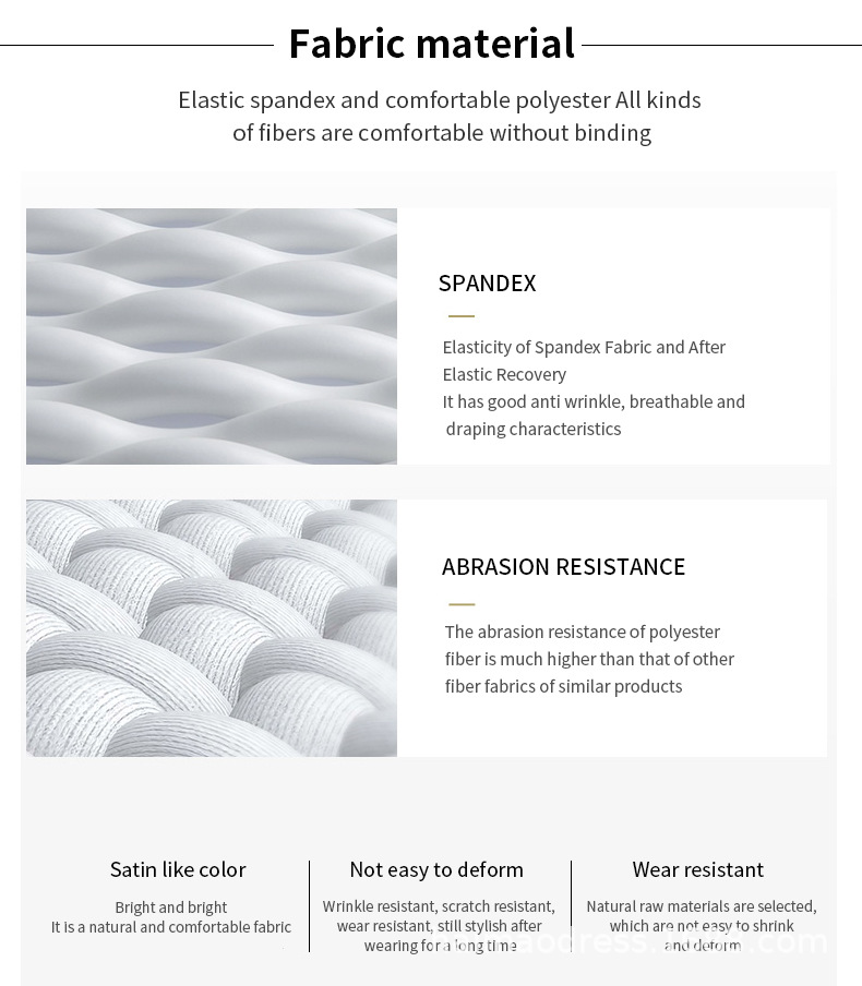 | Función de material | Antiarrugas,Resistencia al desgaste,Bomba alta,Alta solidez del color |
