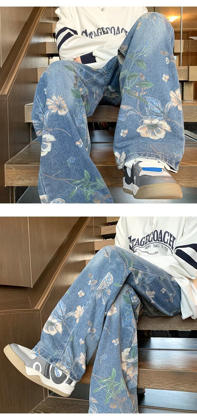 American High Street washed jeans hombres de diseño sentido nicho marca moda retro calle hip hop casual pierna ancha Pantalones