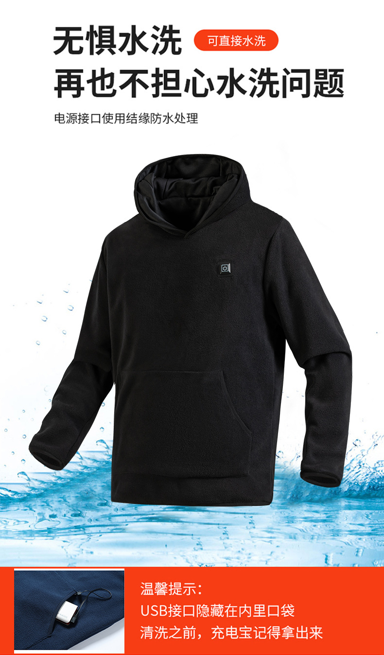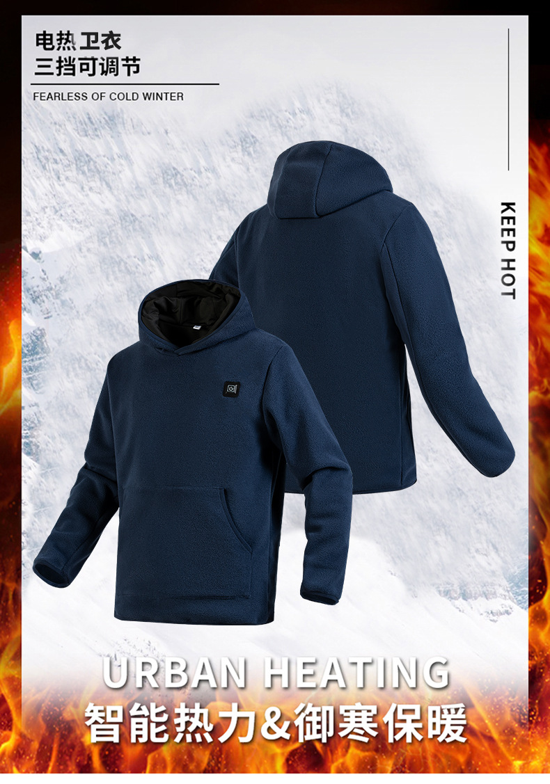 Suéter de calefacción transfronteriza más el tamaño de control de temperatura inteligente calefacción suéter de lana polar térmica abrigo grueso forrado de lana de manga larga para hombres