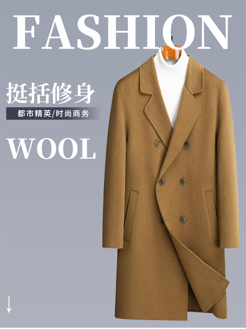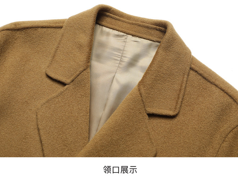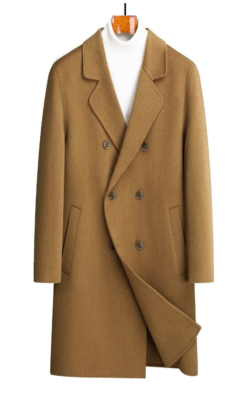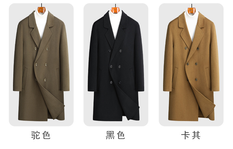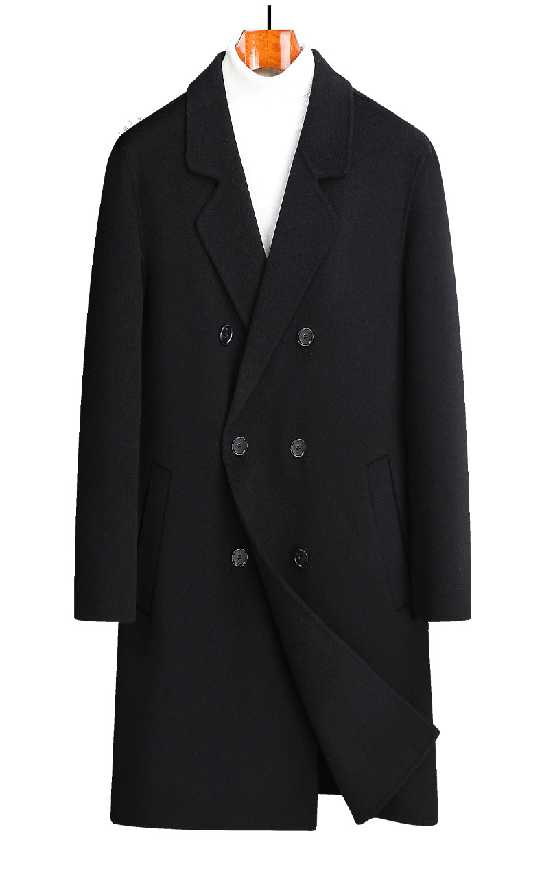 100% abrigo de lana de los hombres de lana larga de doble cara de doble botonadura de color sólido abrigo de lana completo