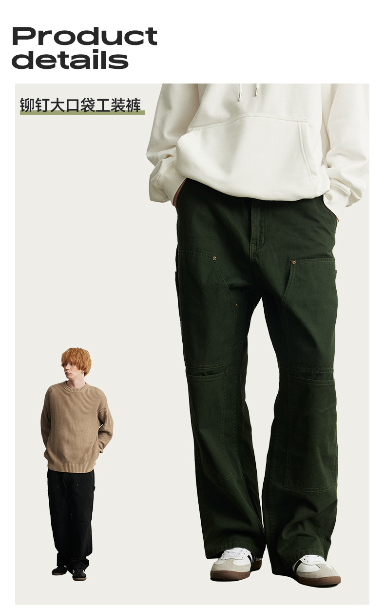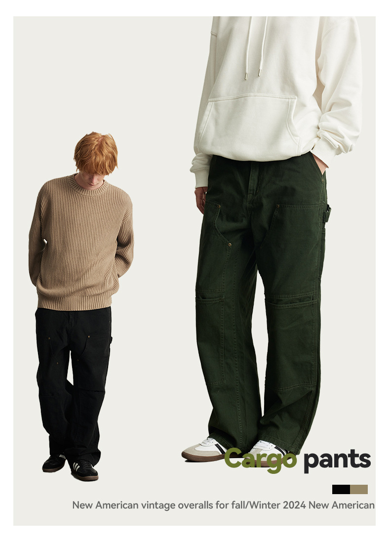Vaqueros de herramientas estadounidenses de otoño e invierno UNF para hombres, remaches de marca de moda nacional sueltos, bolsillos grandes, monos neutros