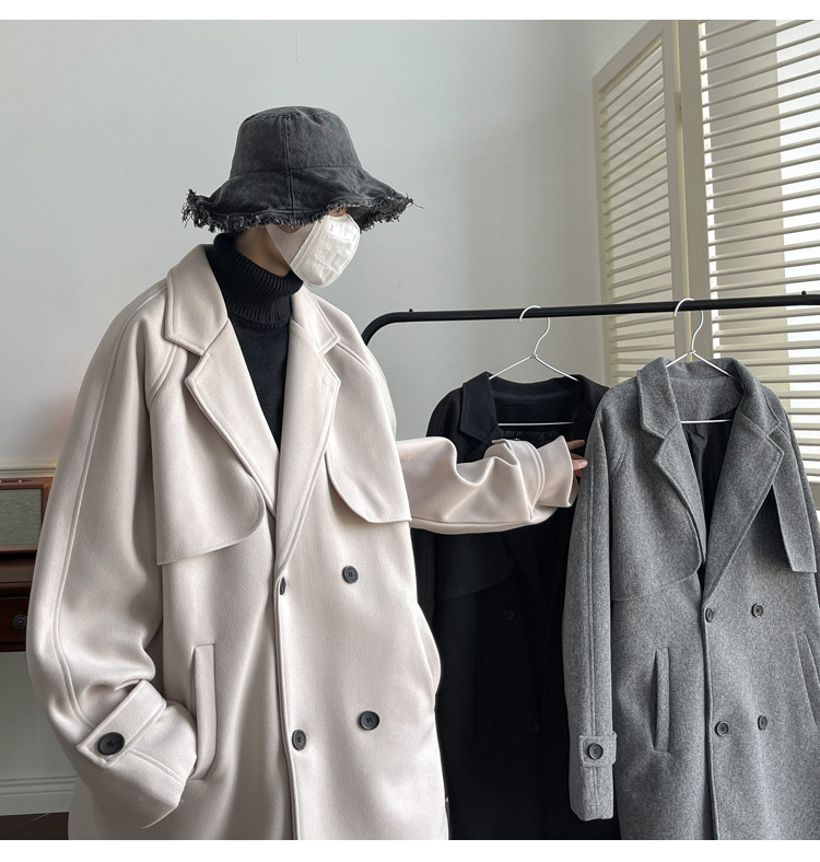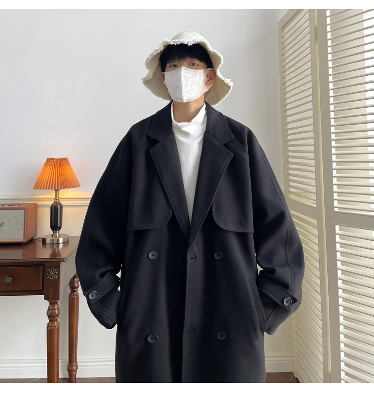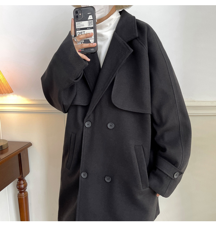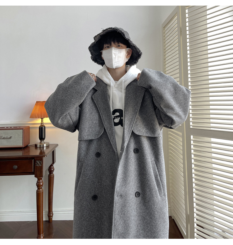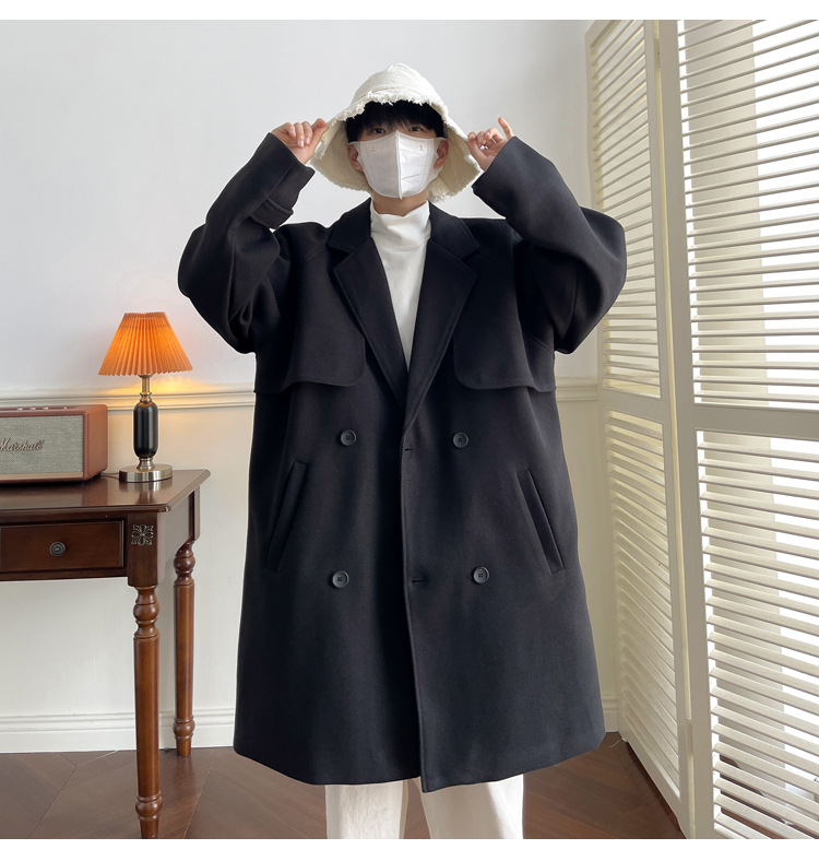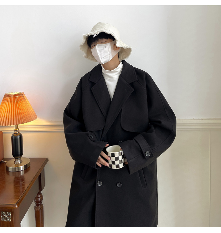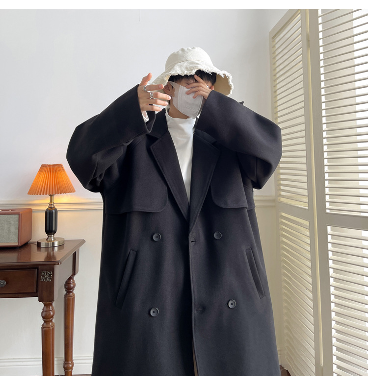 Abrigo de lana de los hombres de moda ins Otoño e Invierno suelta estilo británico Yupi trench coat de lana de moda engrosada abrigo de longitud media