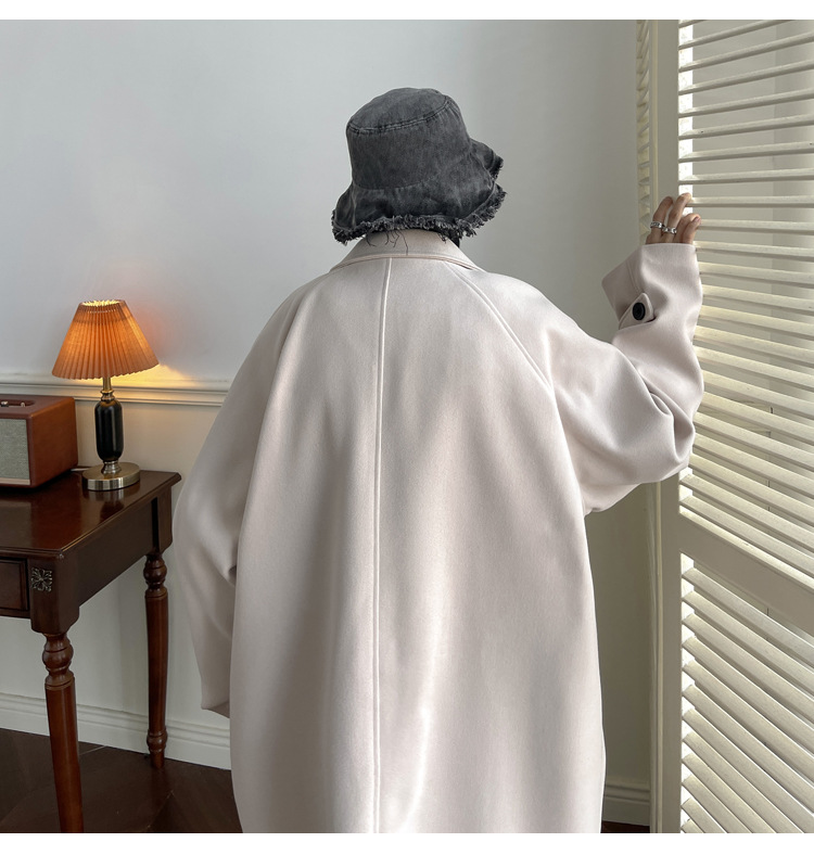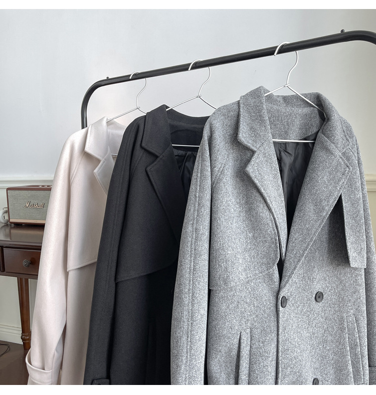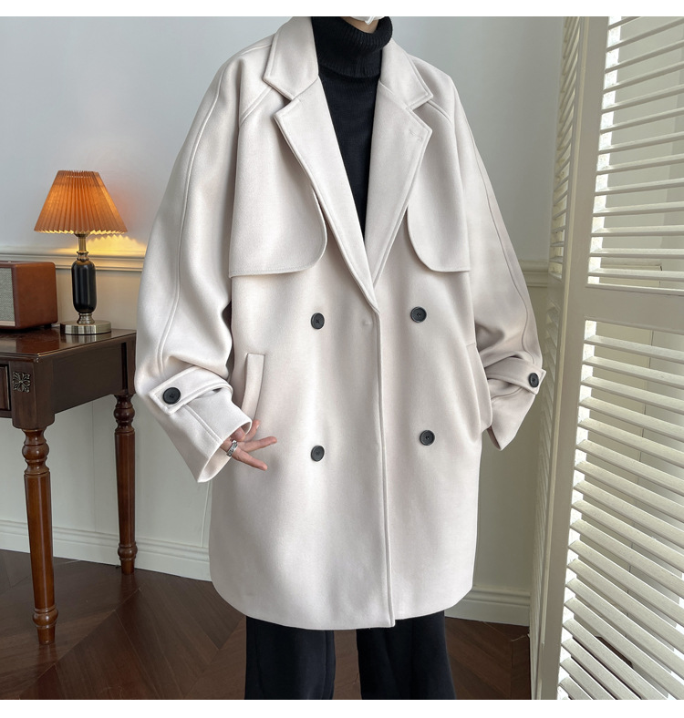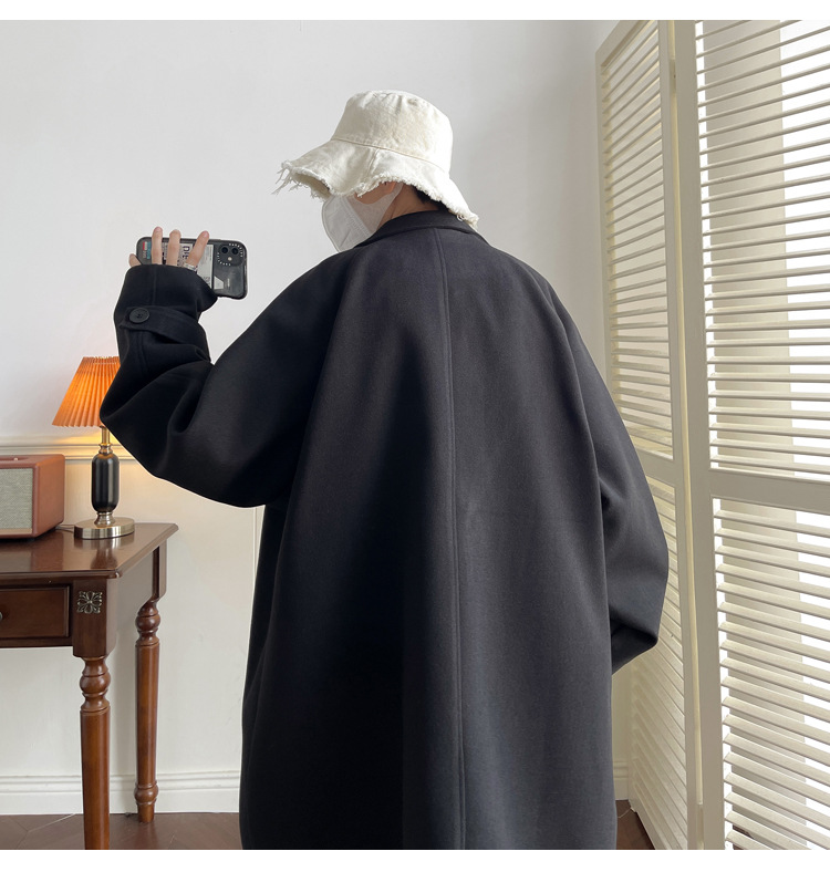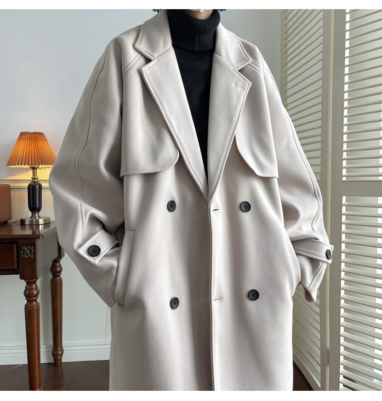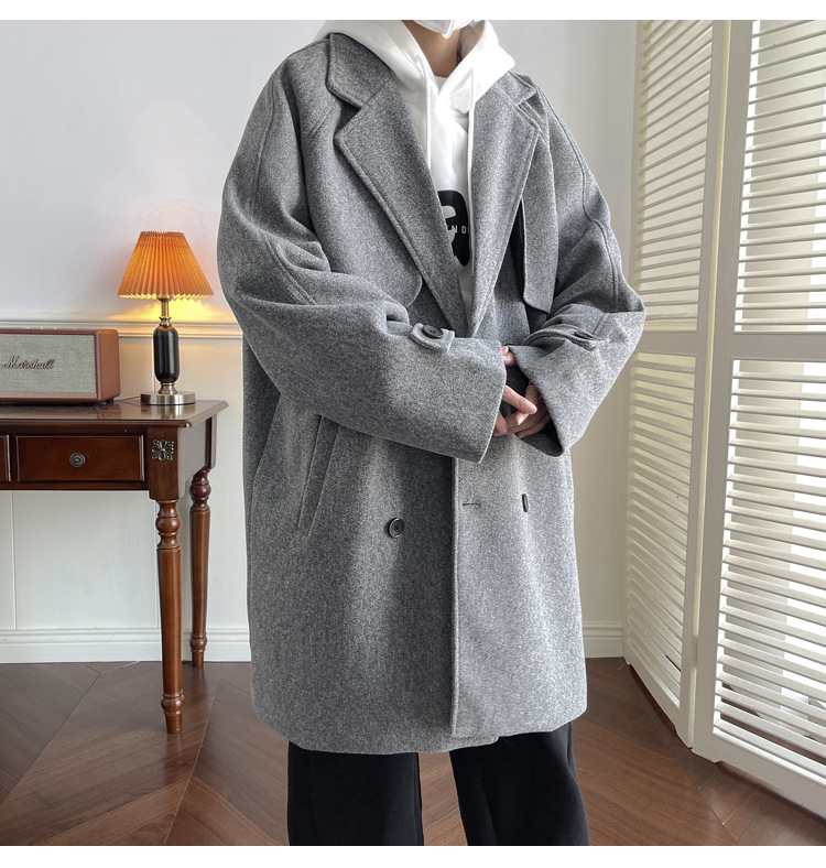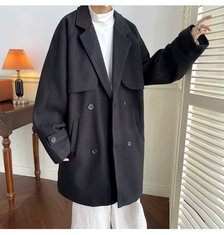 Abrigo de lana de los hombres de moda ins Otoño e Invierno suelta estilo británico Yupi trench coat de lana de moda engrosada abrigo de longitud media