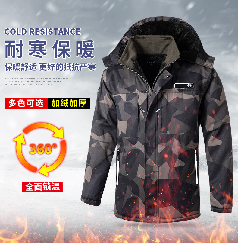 Chaqueta de invierno de algodón acolchado traje de los hombres forrado de lana engrosada Chaqueta de algodón acolchado ropa de trabajo impermeable más tamaño abrigo ropa de trabajo de algodón acolchado abrigo