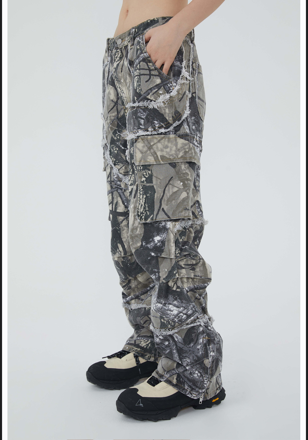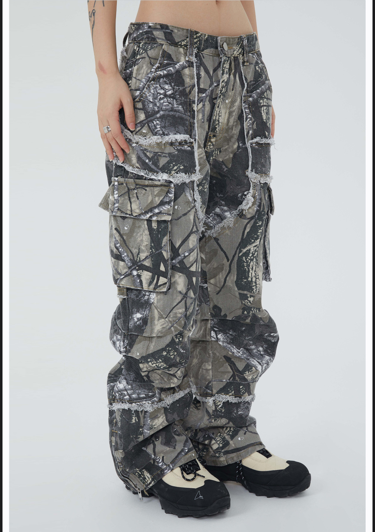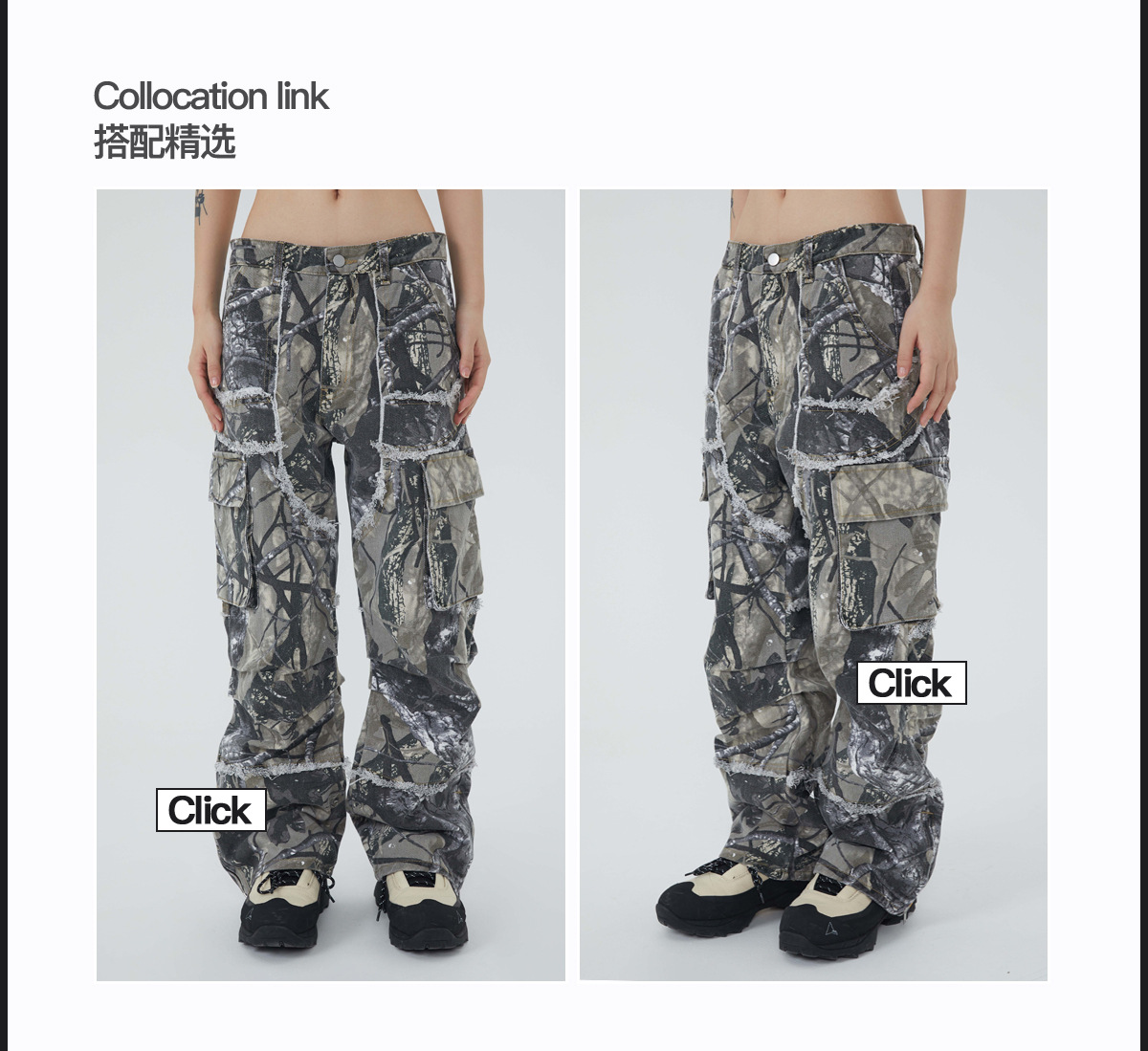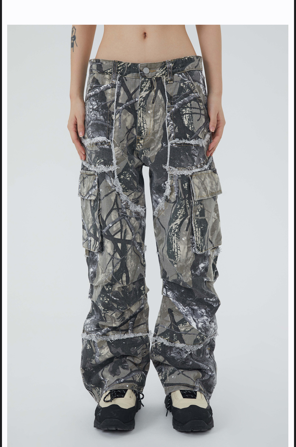2023 high street american hip hop marca de moda jeans deshilachados hombres multi-bolsillo ropa de trabajo recta pierna ancha pantalones sueltos mujeres