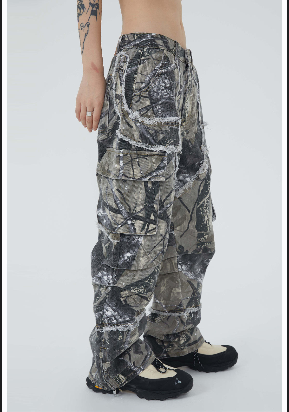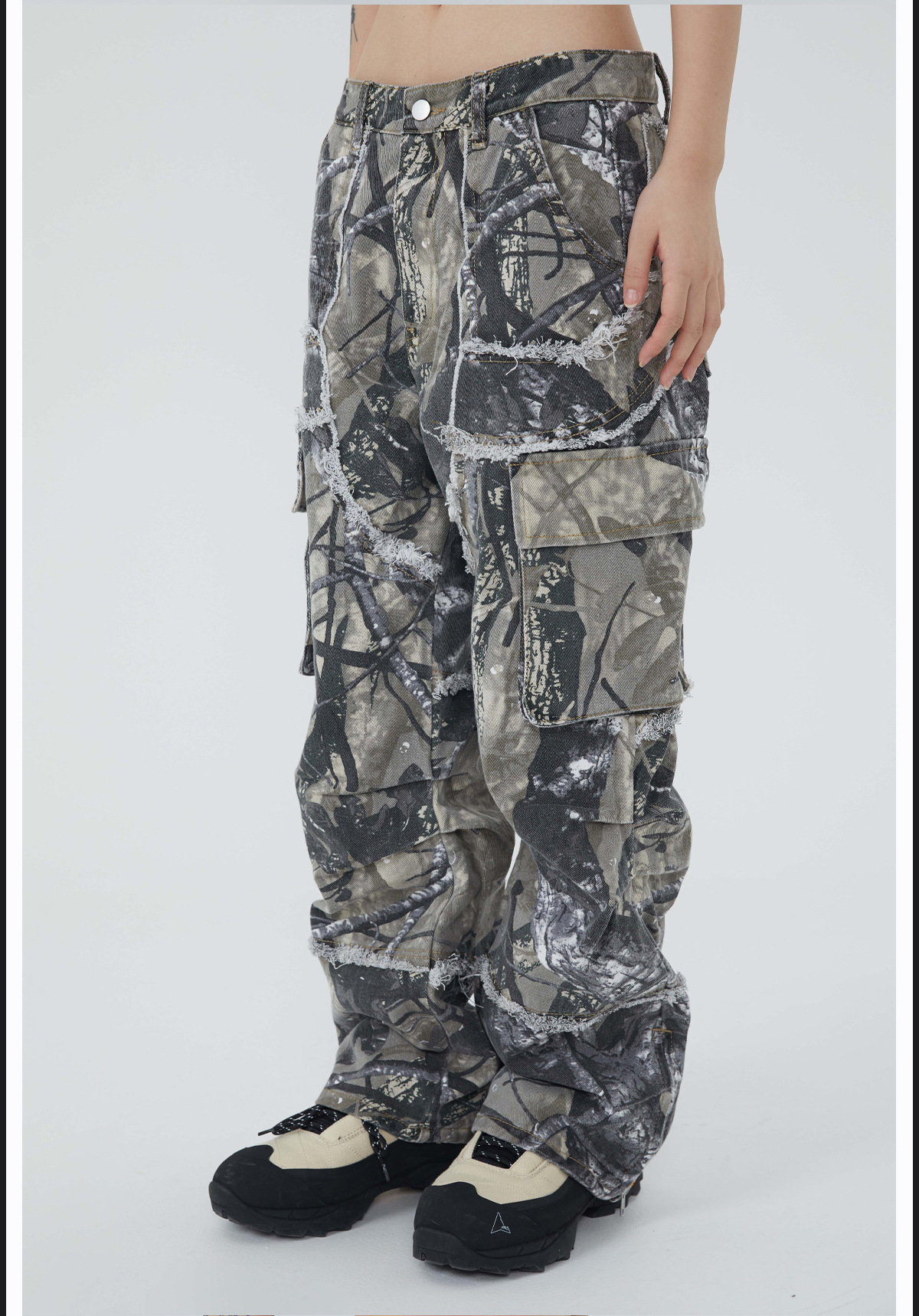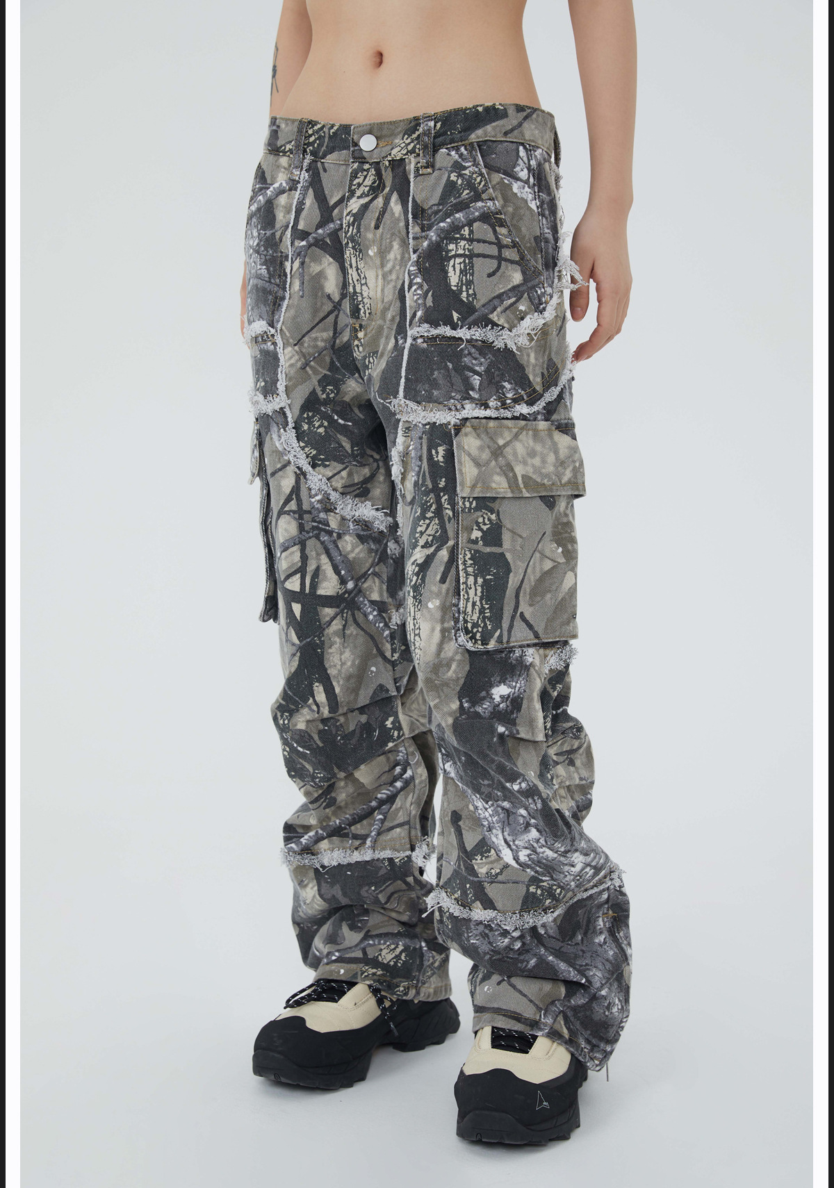 2023 high street american hip hop marca de moda jeans deshilachados hombres multi-bolsillo ropa de trabajo recta pierna ancha pantalones sueltos mujeres