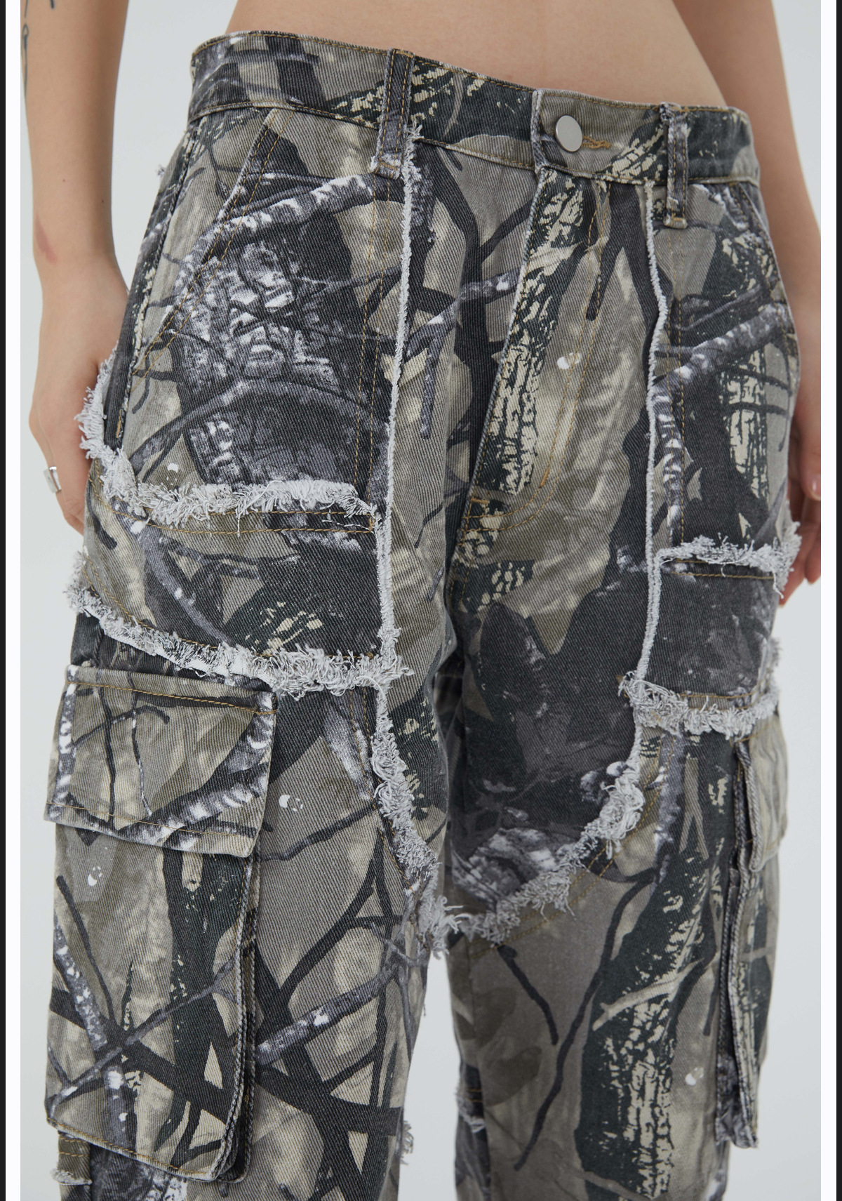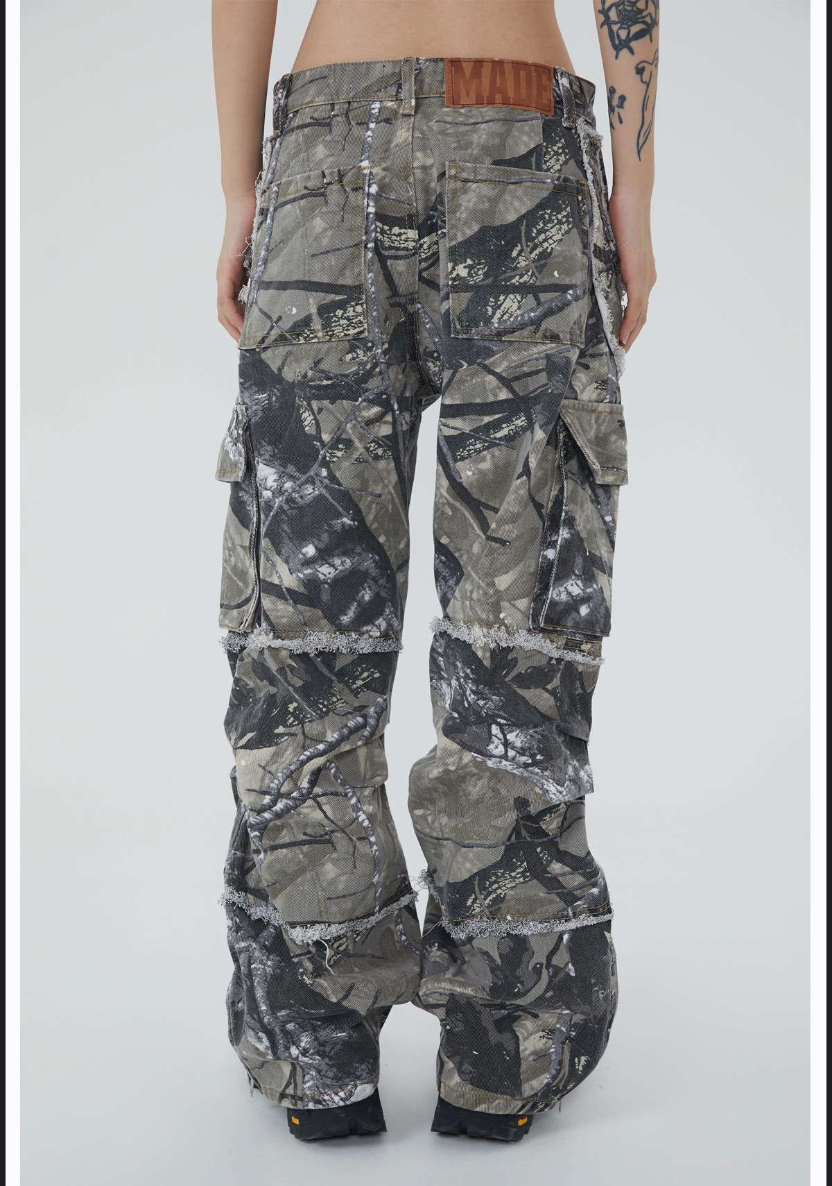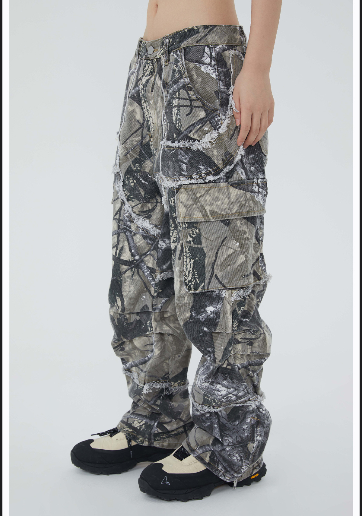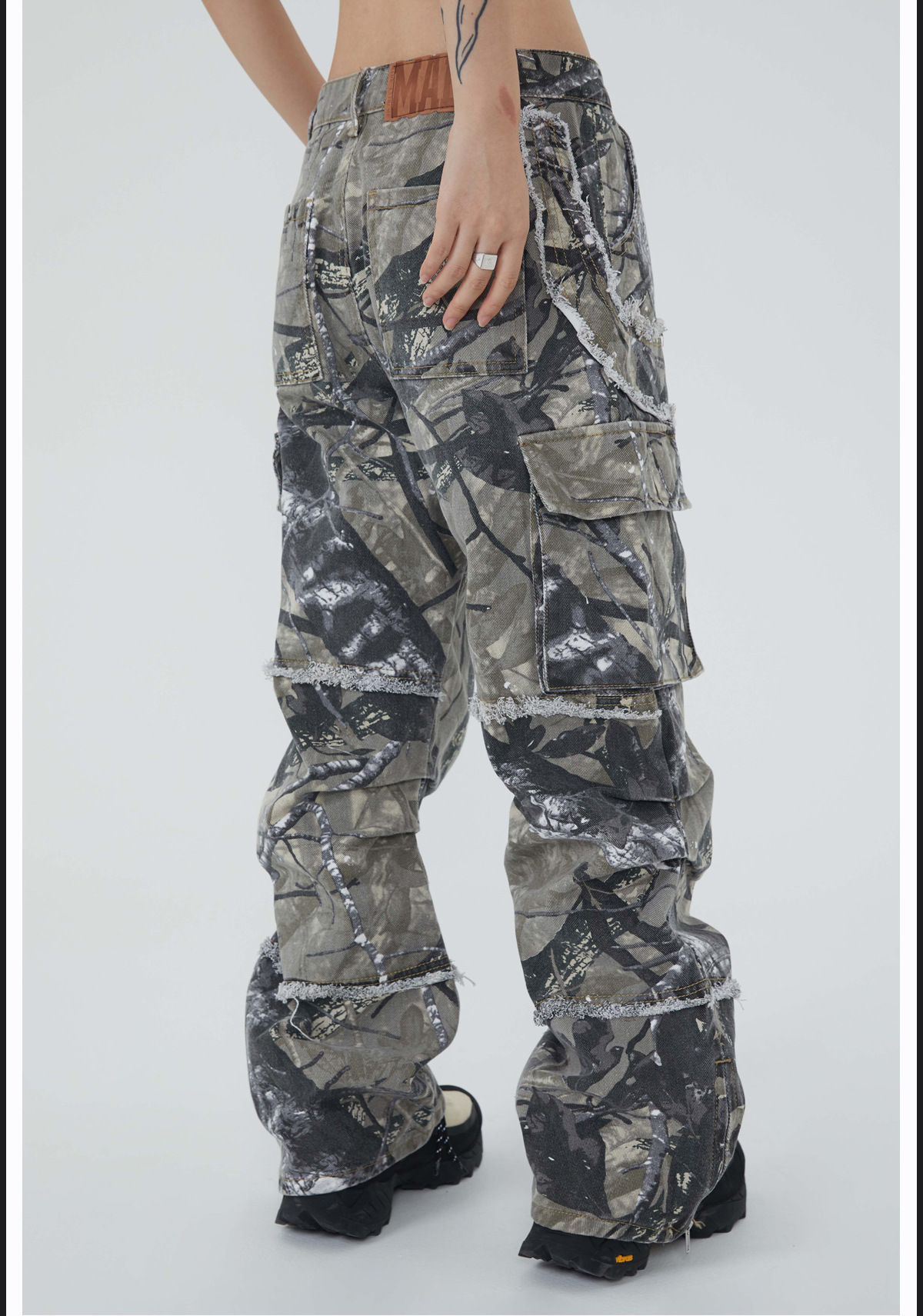 2023 high street american hip hop marca de moda jeans deshilachados hombres multi-bolsillo ropa de trabajo recta pierna ancha pantalones sueltos mujeres