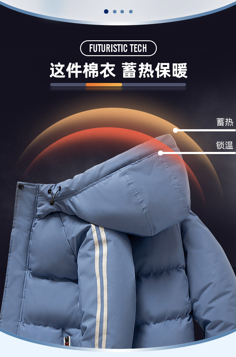 2023 nuevo abrigo de algodón acolchado de los hombres forrado de lana engrosada abrigo de algodón acolchado de los hombres de dos barras de invierno de los hombres abrigo de pan con capucha ropa de hombre