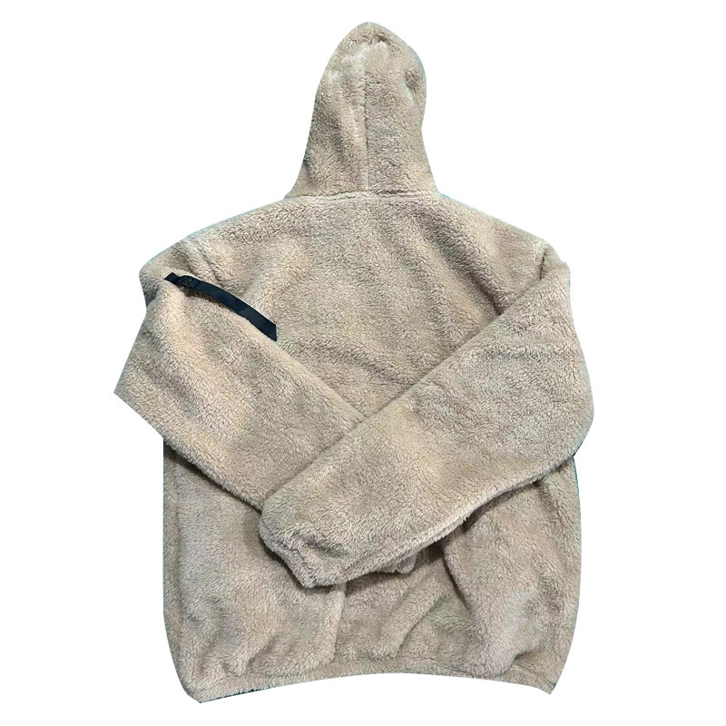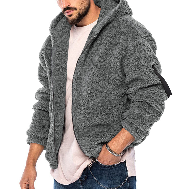 2023 chaqueta transfronteriza de otoño e invierno para hombres nueva chaqueta europea y americana de doble cara de terciopelo ártico con capucha de color sólido con cremallera casual para hombres