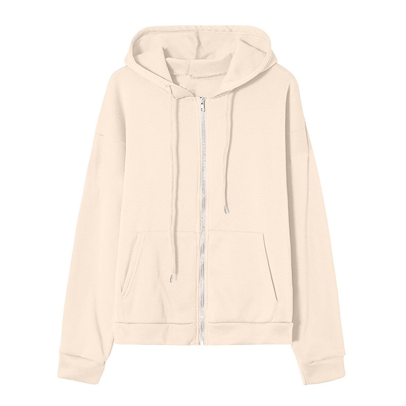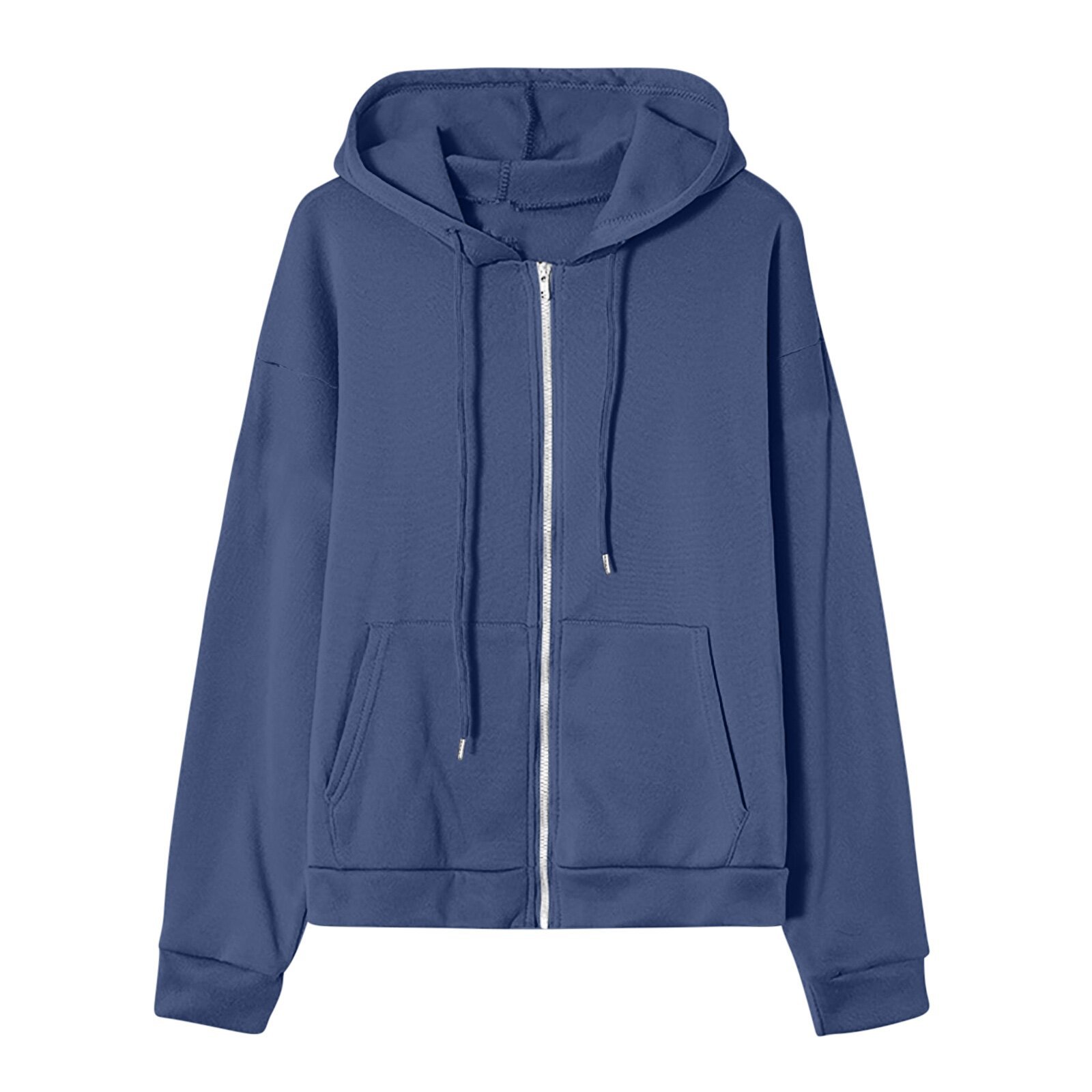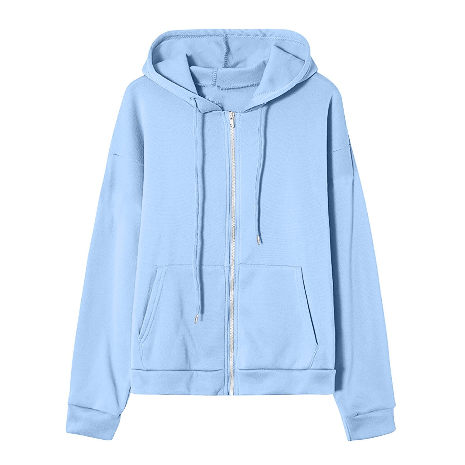 2023 amazon nuevo color sólido con capucha sudadera forrada de lana de manga larga abrigo mujeres calle suelta cremallera superior