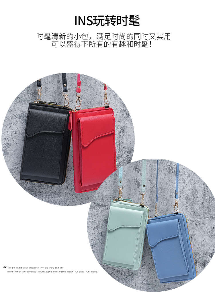 2023 simple nueva moda estilo coreano hombro mensajero bolsa de gran capacidad de las mujeres larga cartera color sólido teléfono bolsa