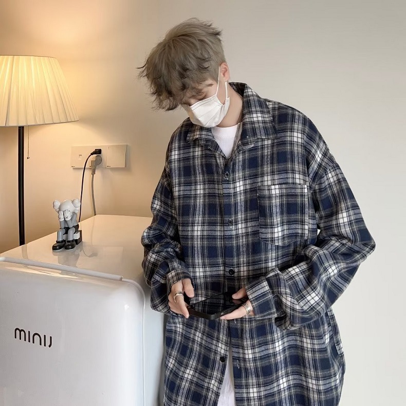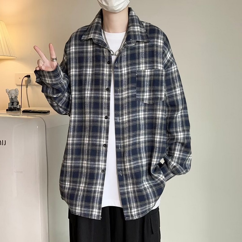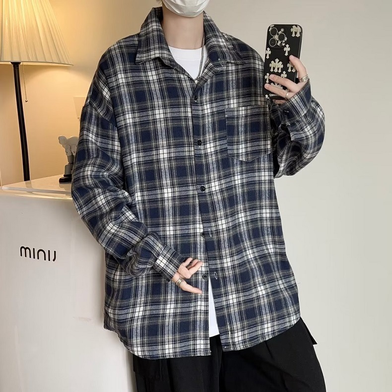 Camisa a cuadros japonesa de manga larga para hombres otoño nueva moda versátil juvenil casual ropa de trabajo suelta camisa chaqueta