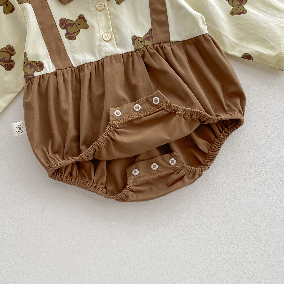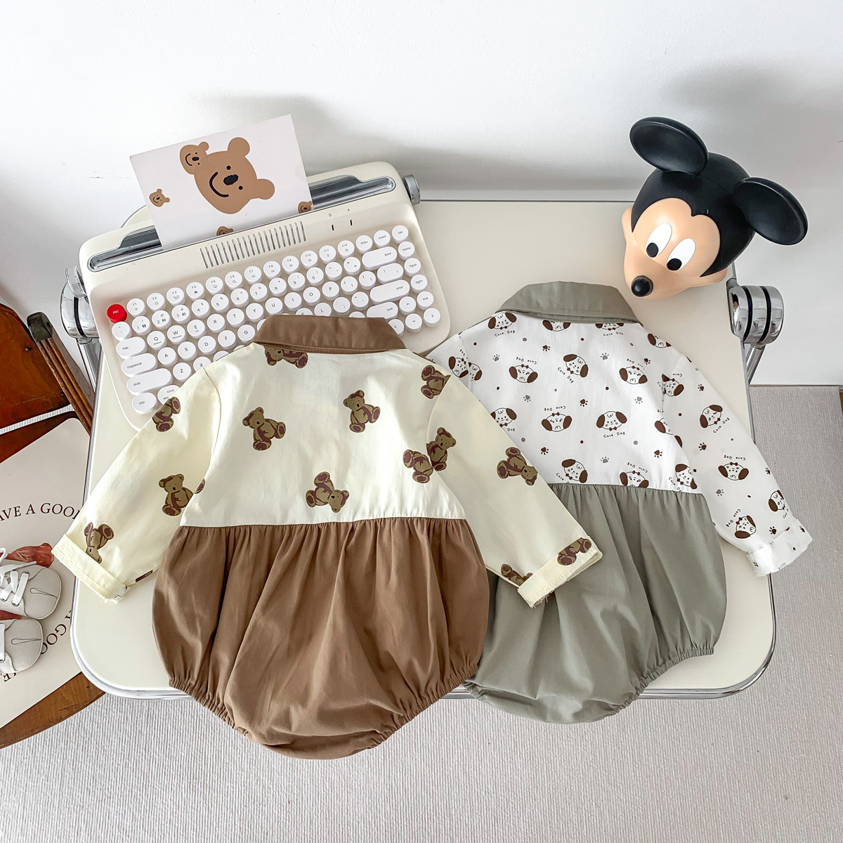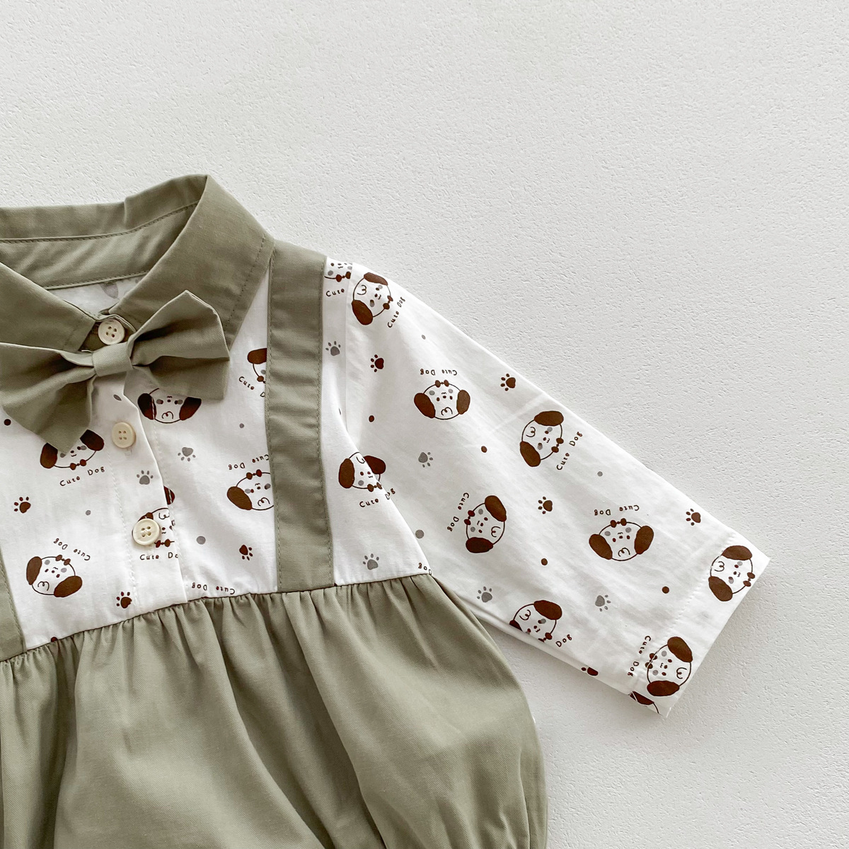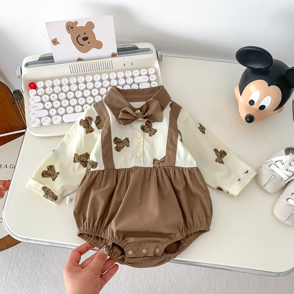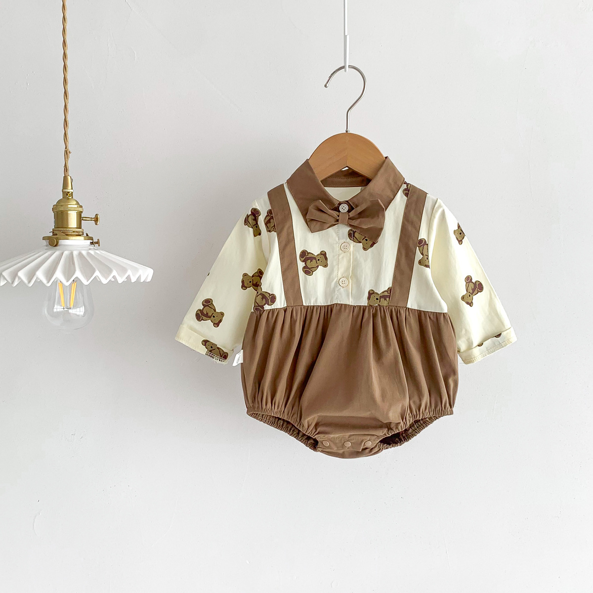 Mono del bebé otoño Niño de dibujos animados impreso ropa bebé recién nacido falso dos piezas Caballero pajarita camisa mameluco