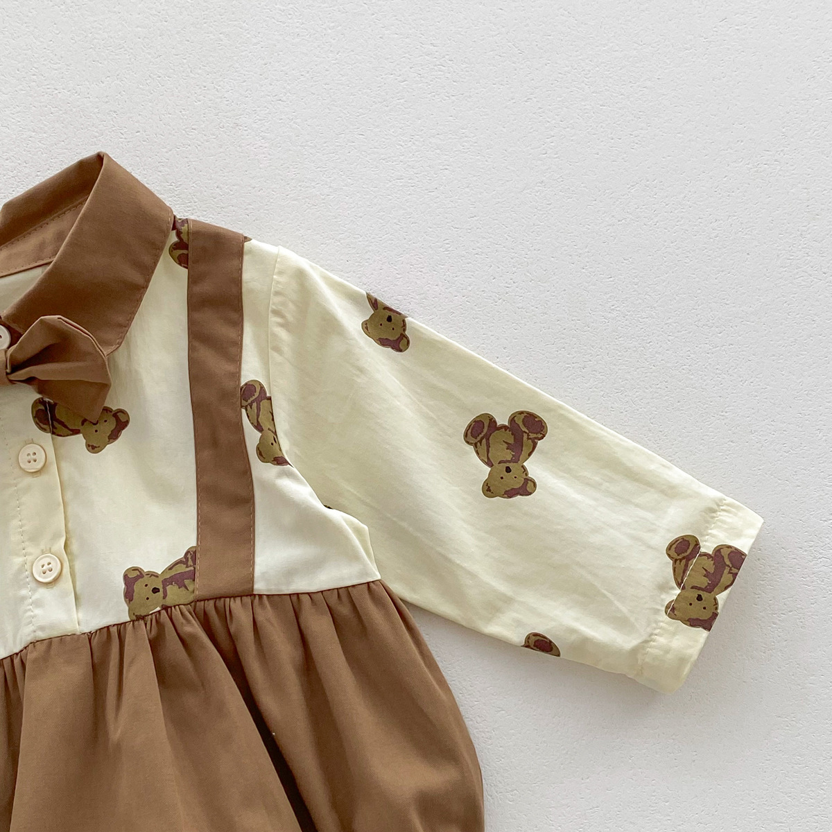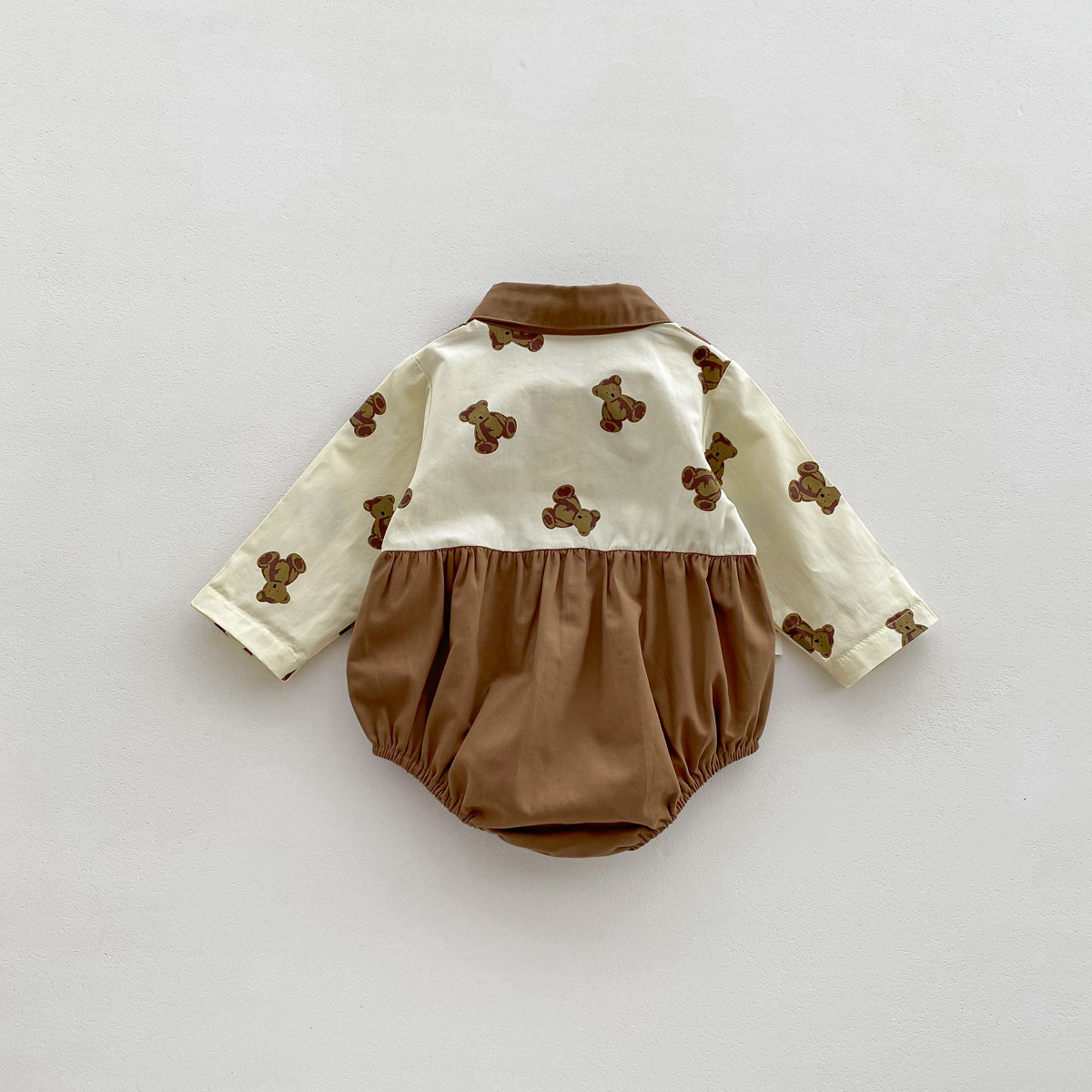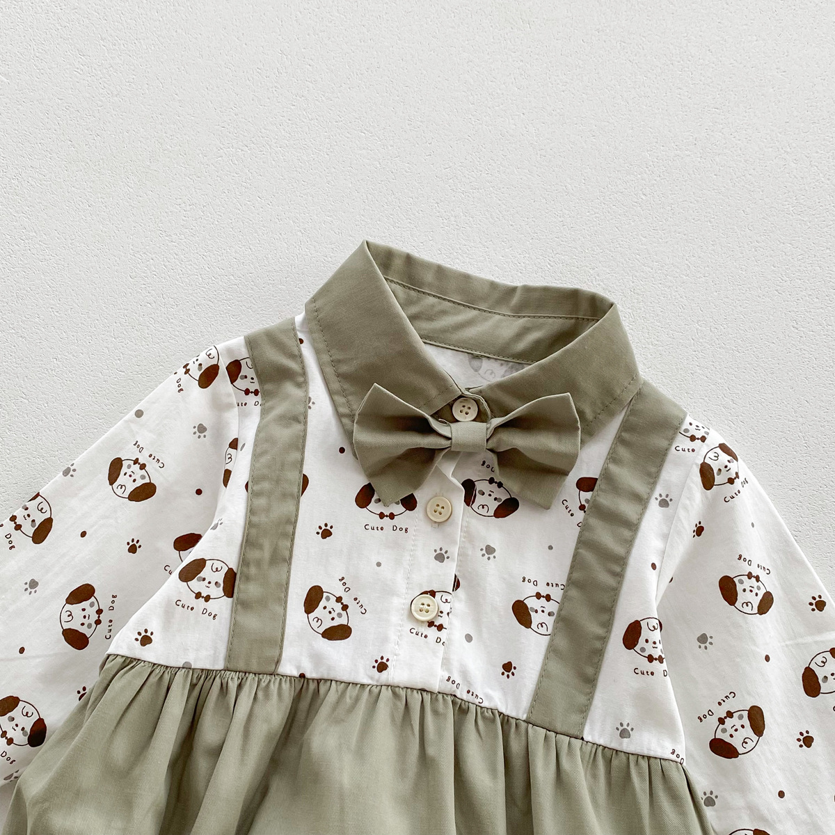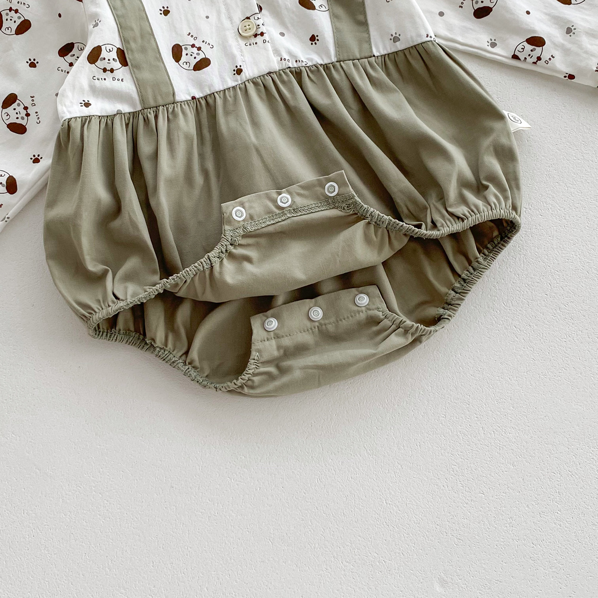 Mono del bebé otoño Niño de dibujos animados impreso ropa bebé recién nacido falso dos piezas Caballero pajarita camisa mameluco