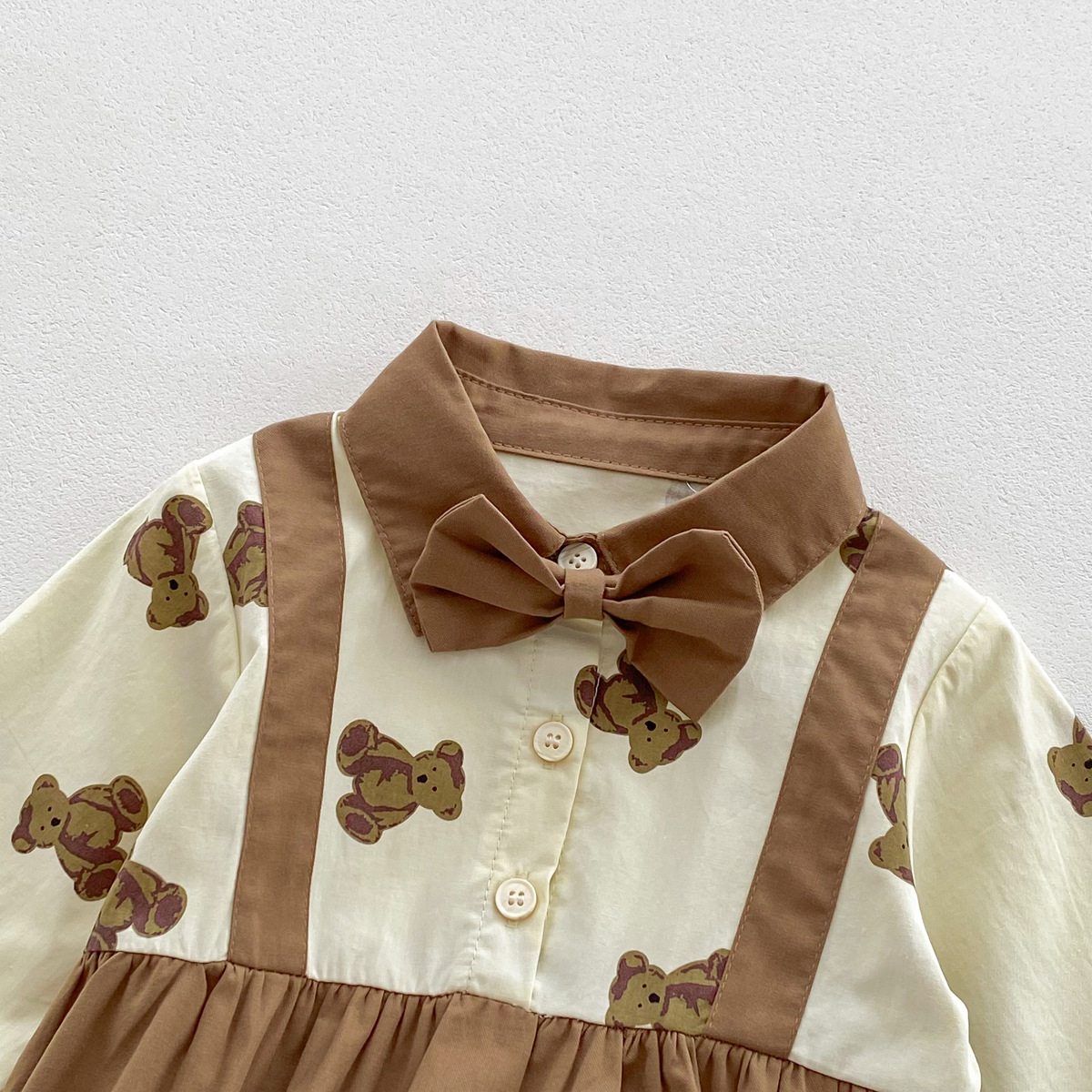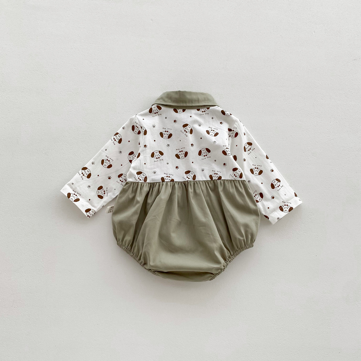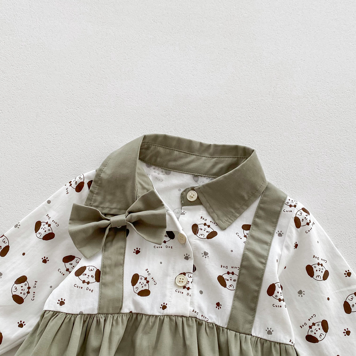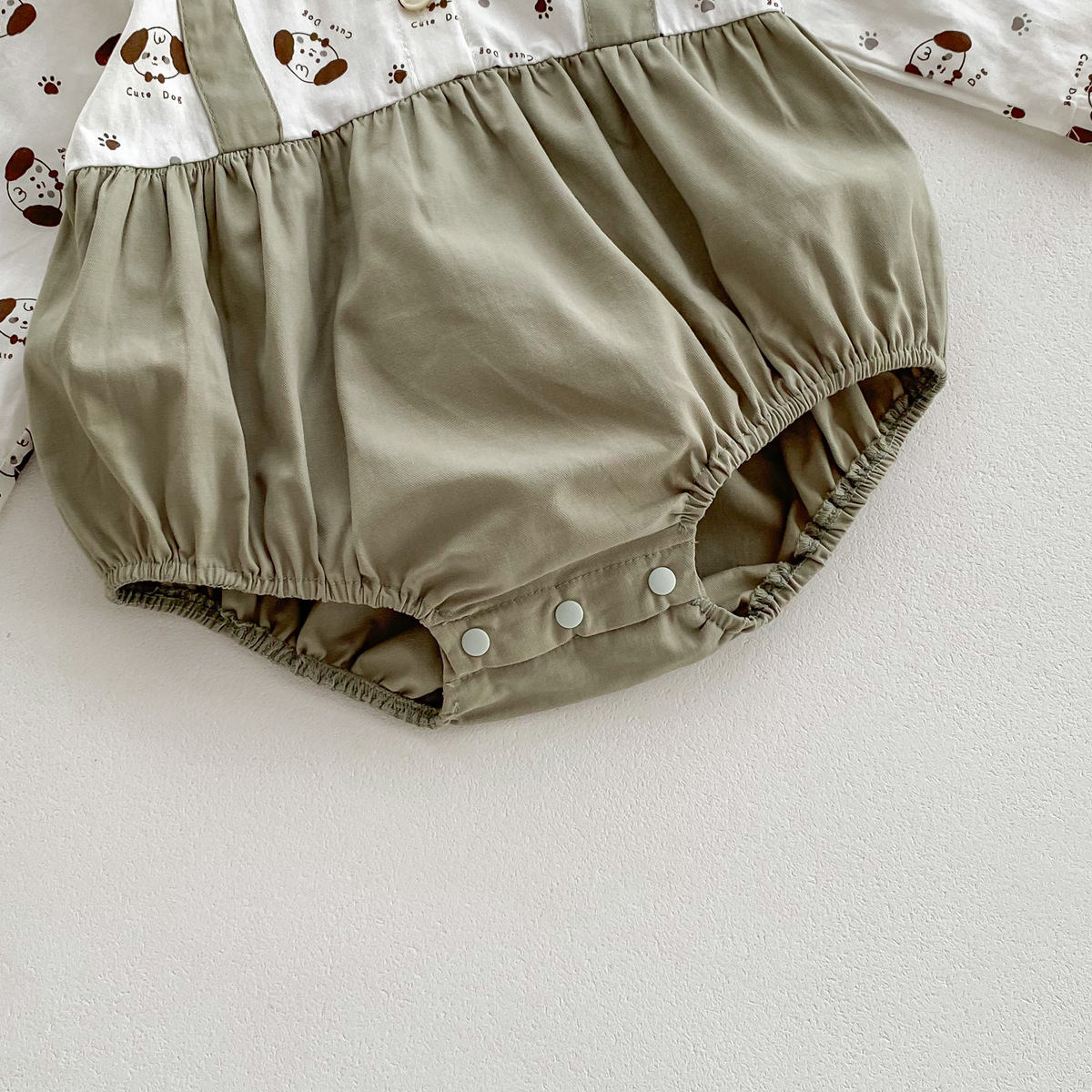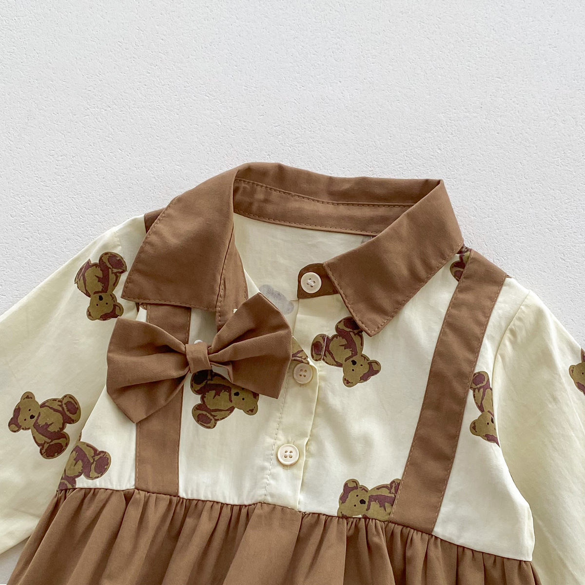 Mono del bebé otoño Niño de dibujos animados impreso ropa bebé recién nacido falso dos piezas Caballero pajarita camisa mameluco