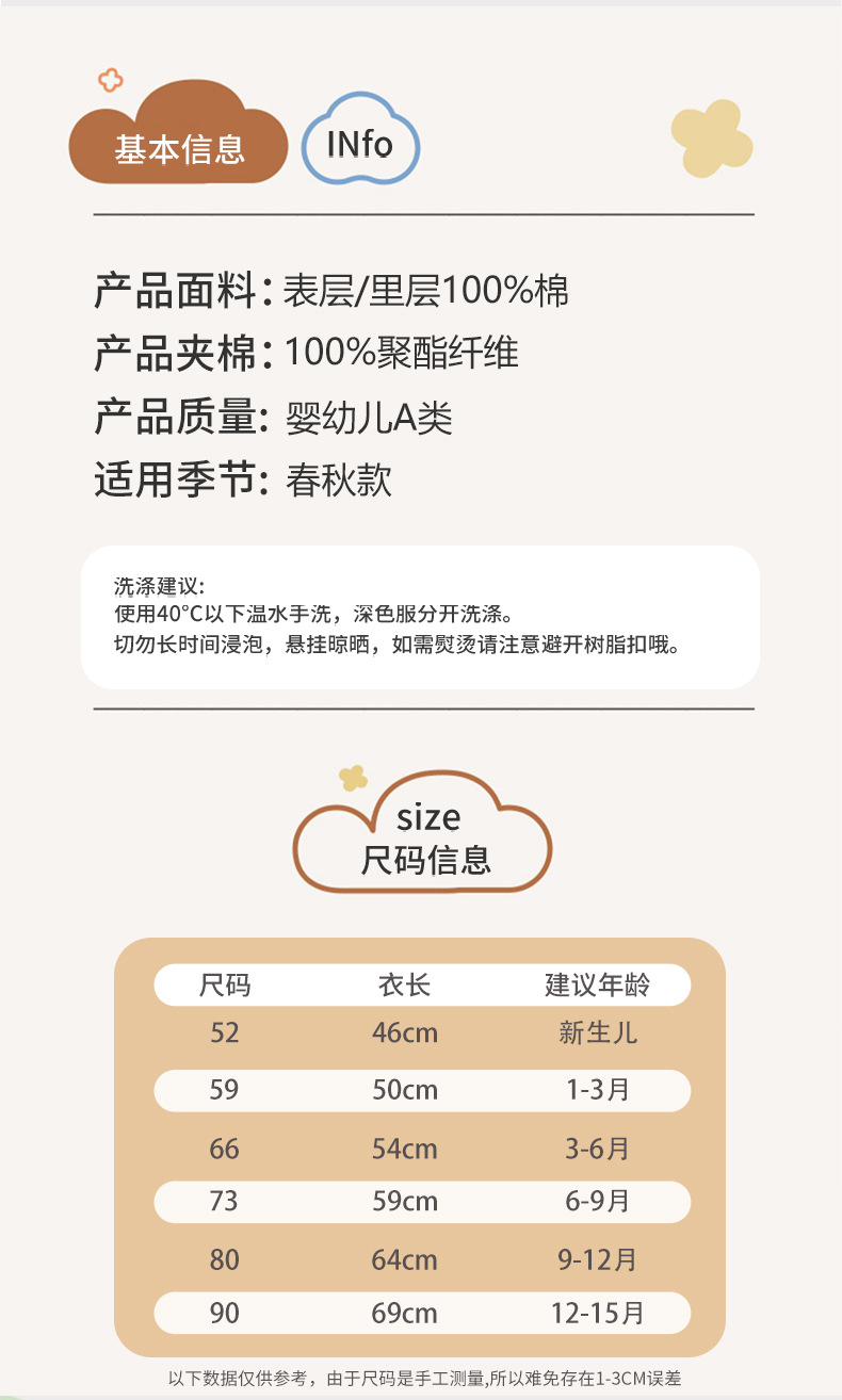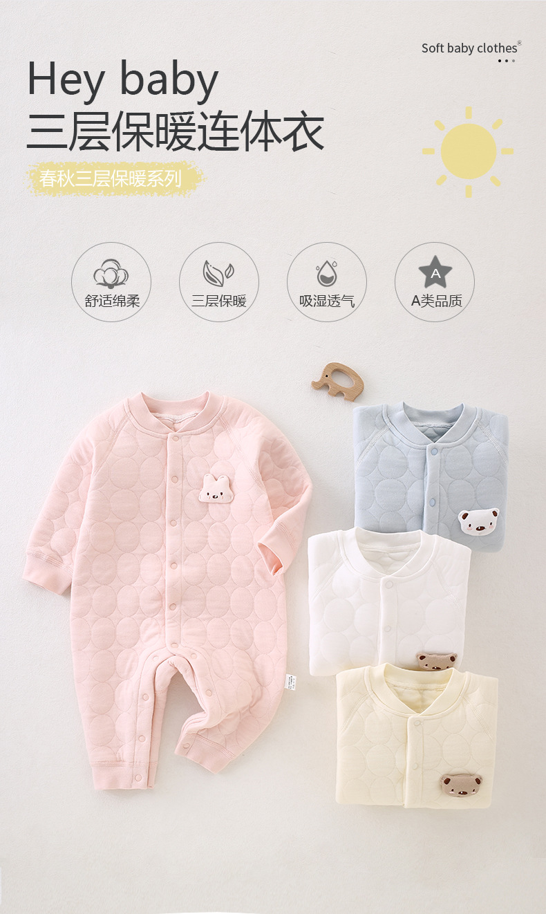 Ropa de bebé recién nacido primavera y otoño tipo A mono hombres y mujeres bebé algodón clip de algodón algodón cálido mameluco de bebé
