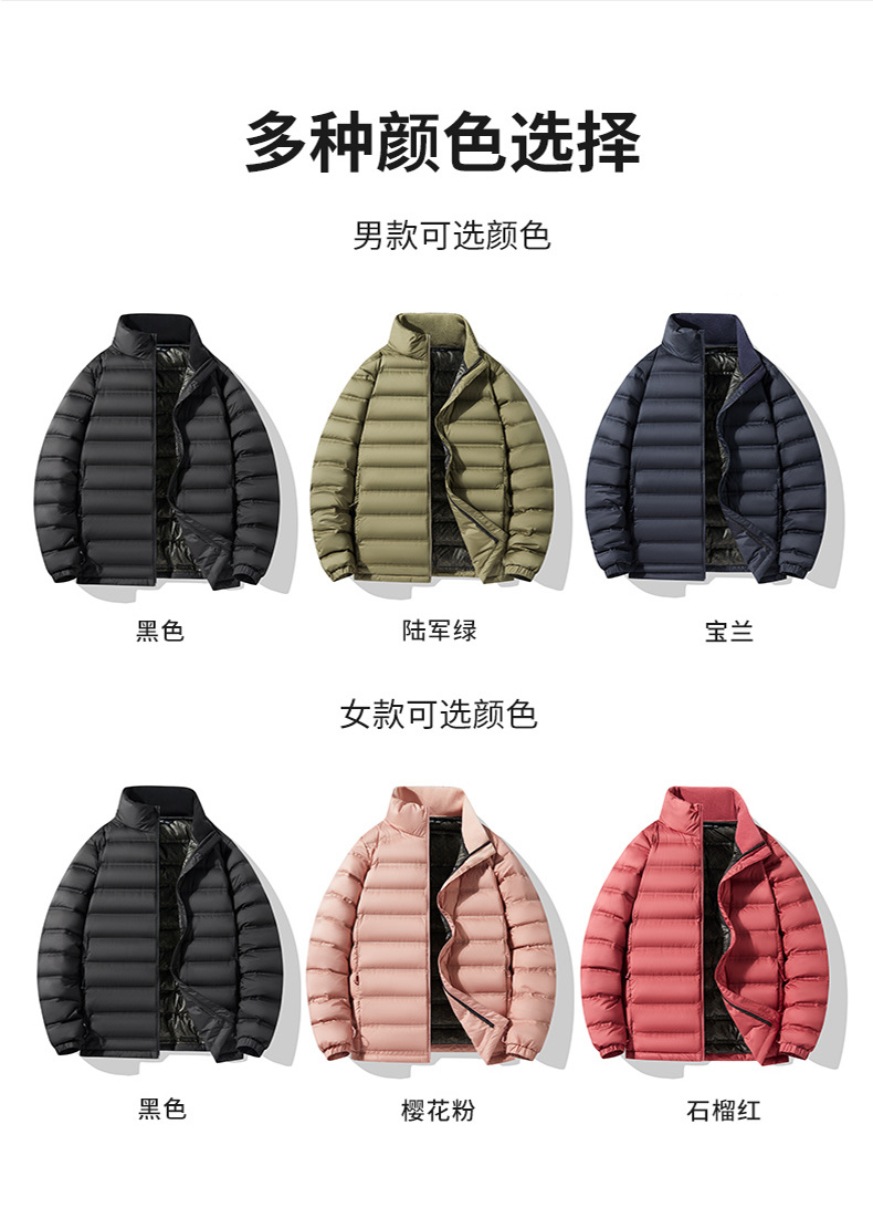 Nueva chaqueta de plumón ligera para pareja de talla extra collar de pie 90 pato abajo neto más tamaño para hombre y chaqueta de plumón para mujer