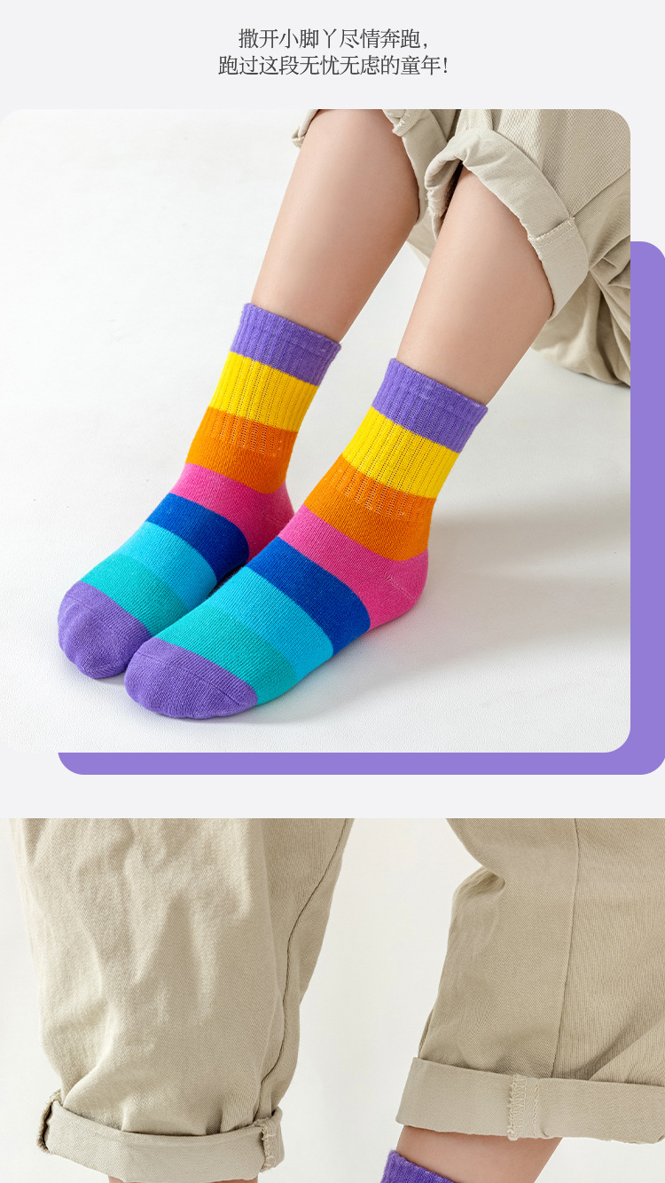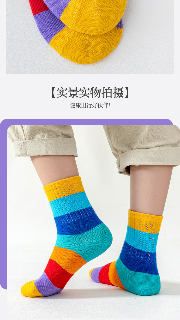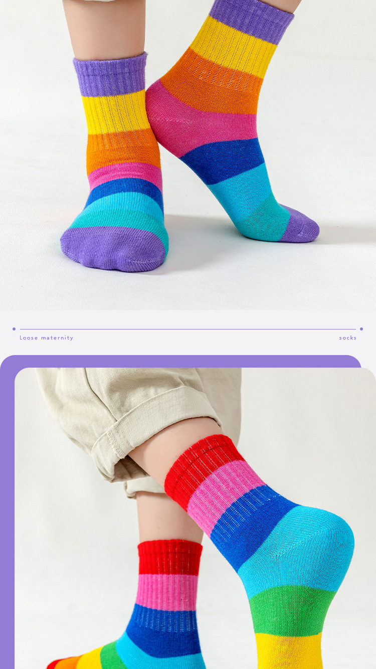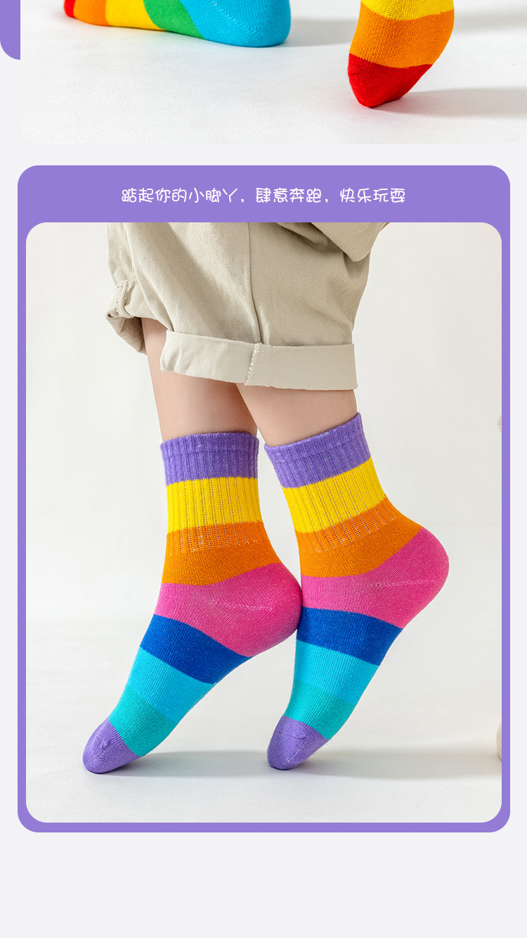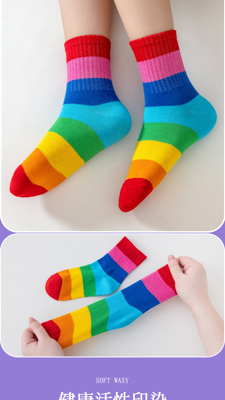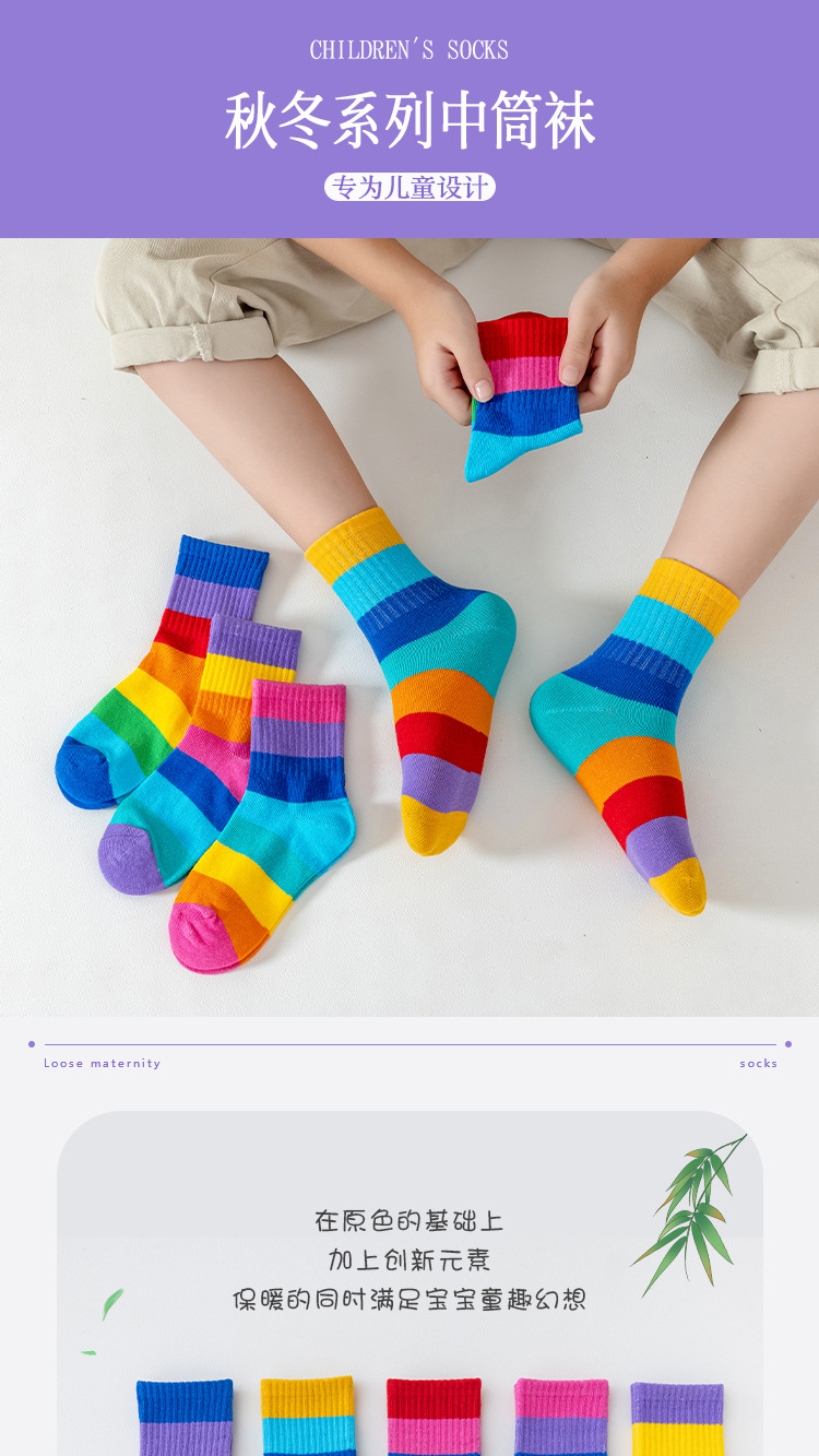 Calcetines para niños Otoño e Invierno Nueva moda coreana niños y niñas Arco Iris princesa calcetines a rayas calcetines de media pantorrilla calcetines de venta directa de fábrica