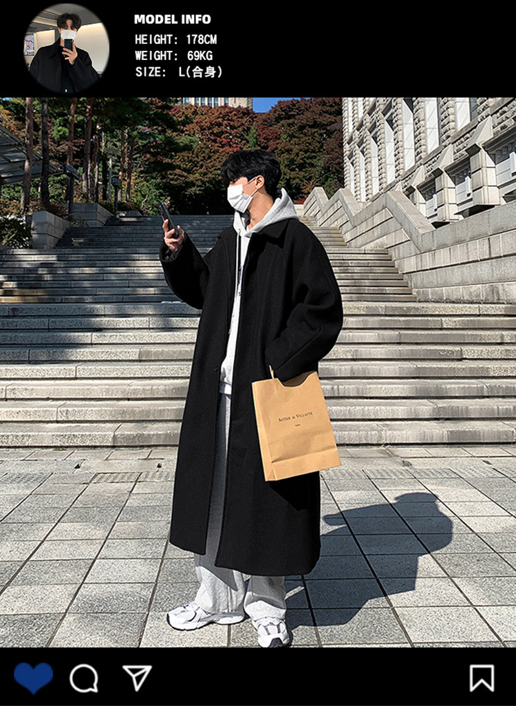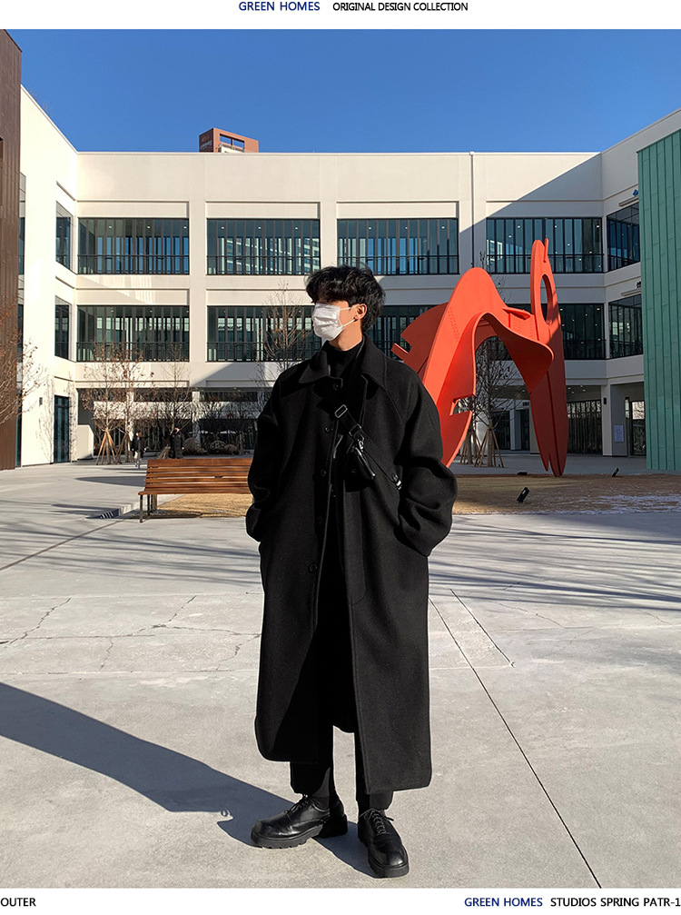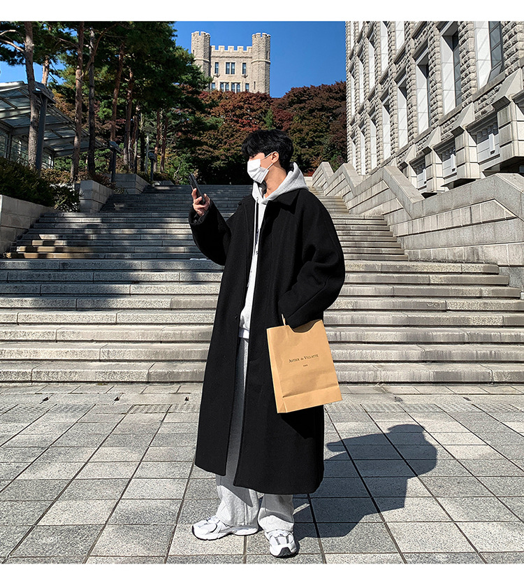 ASCLO otoño e invierno nuevo abrigo de lana largo de alta calidad abrigo grueso de lana de estilo coreano de moda de los hombres de longitud media