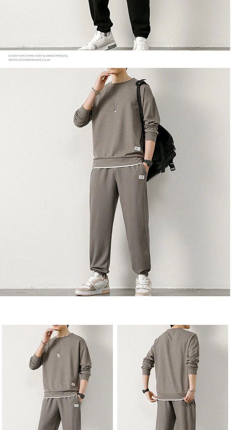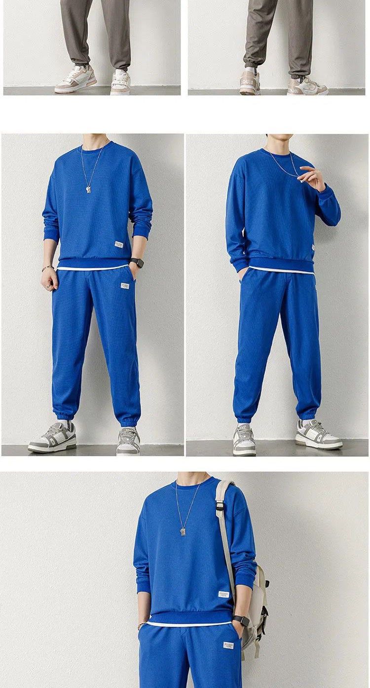 Waffle suéter traje de los hombres de Primavera y Otoño 2023 nueva moda falso de dos piezas de cuello redondo casual Deportes traje de los hombres