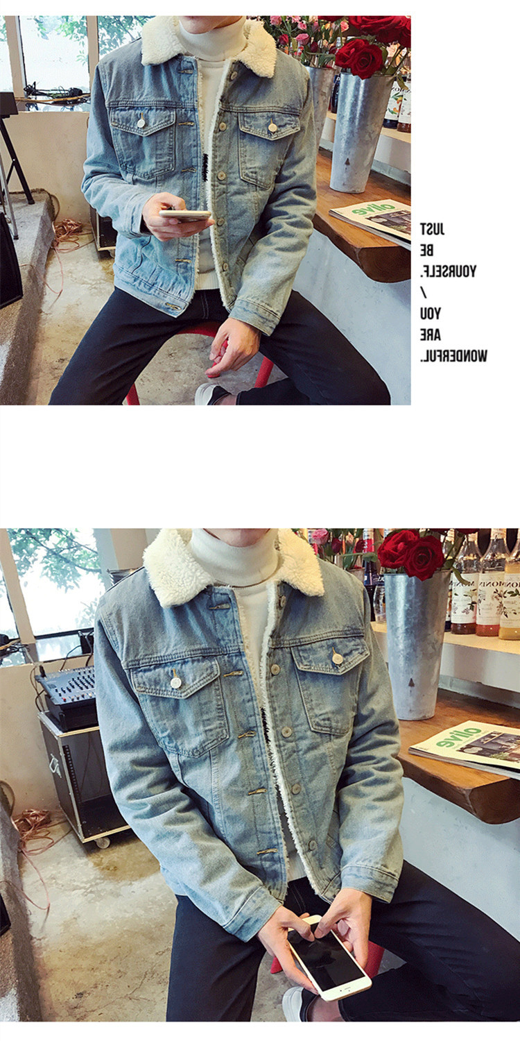 Abrigo de mezclilla con forro polar de invierno para hombre abrigo retro engrosado de algodón acolchado Cuello de piel ropa superior chaqueta abrigo de lana de cordero ropa de hombre