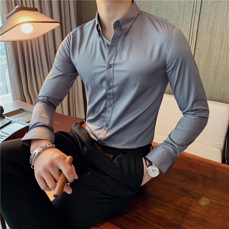 La camisa de manga larga del tamaño extra grande de los hombres, todas las estaciones, atmósfera SLIM-Fit de la dopamina, camisa casual