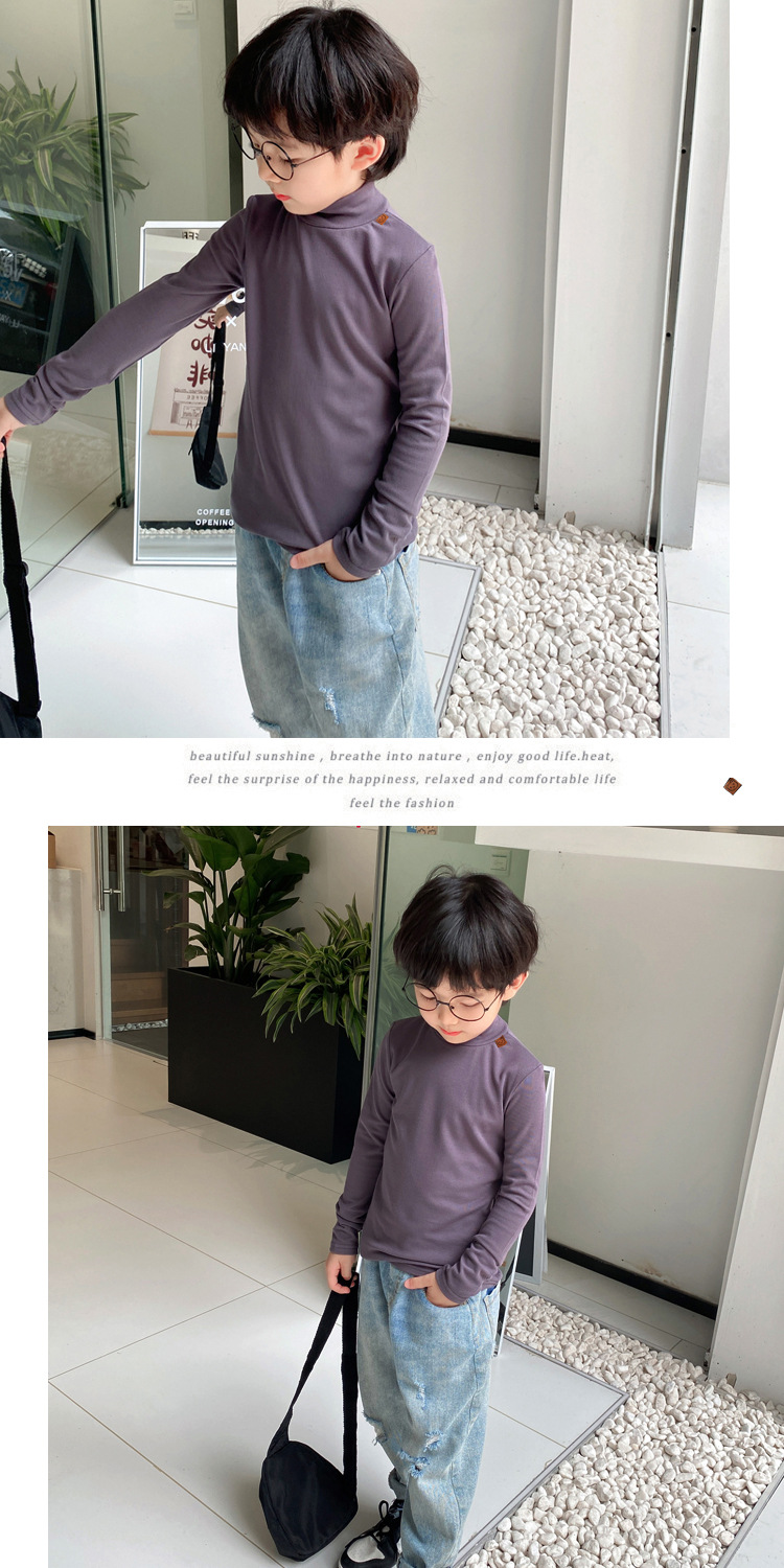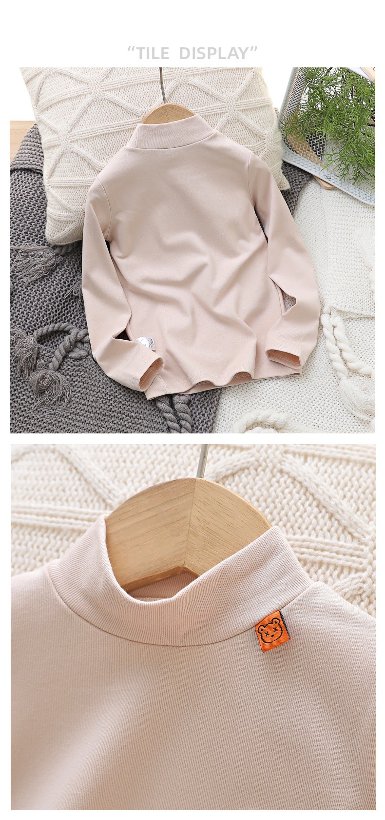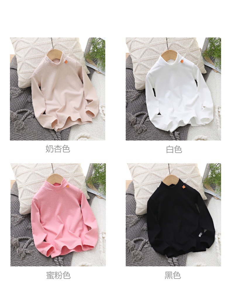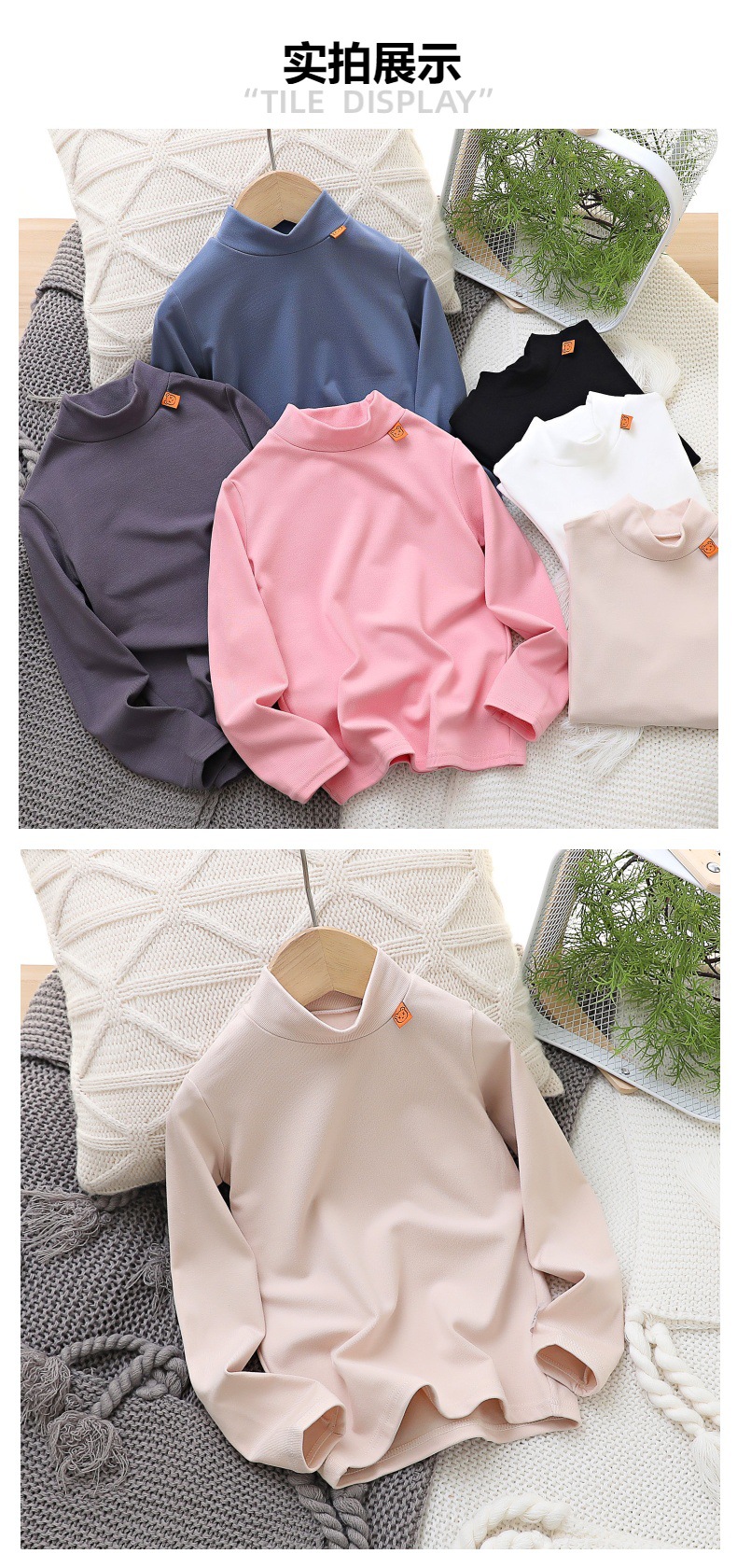 Ropa de otoño e invierno para niños nuevo estilo coreano color sólido camiseta de los muchachos medio cuello alto camisa de fondo para niñas engrosada bebé manga larga superior