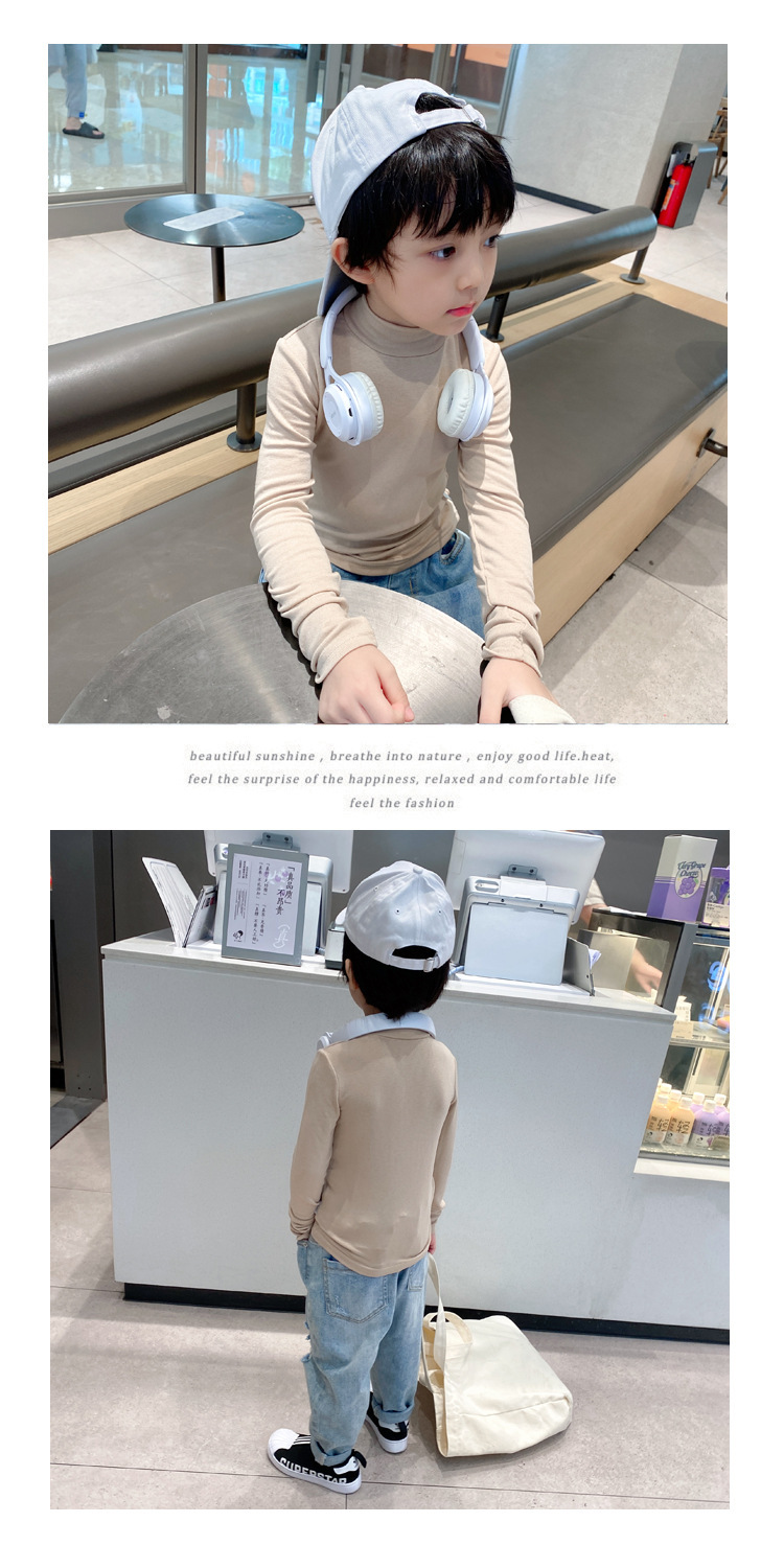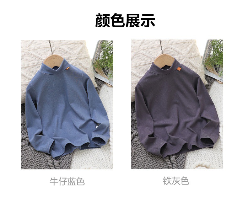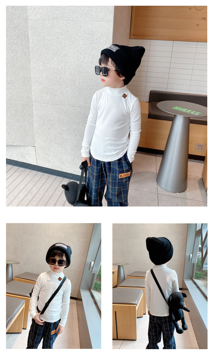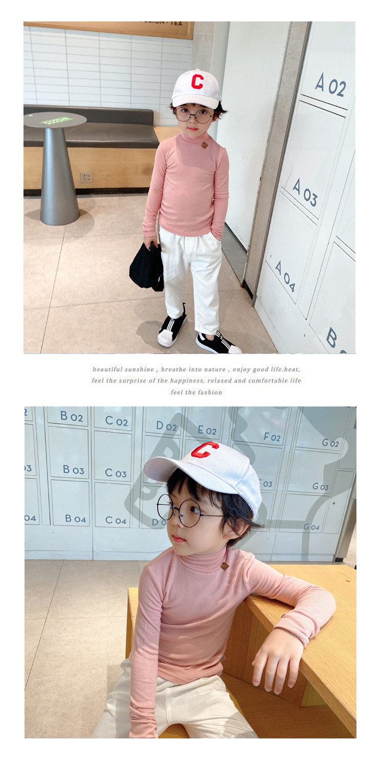 Ropa de otoño e invierno para niños nuevo estilo coreano color sólido camiseta de los muchachos medio cuello alto camisa de fondo para niñas engrosada bebé manga larga superior