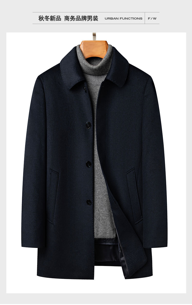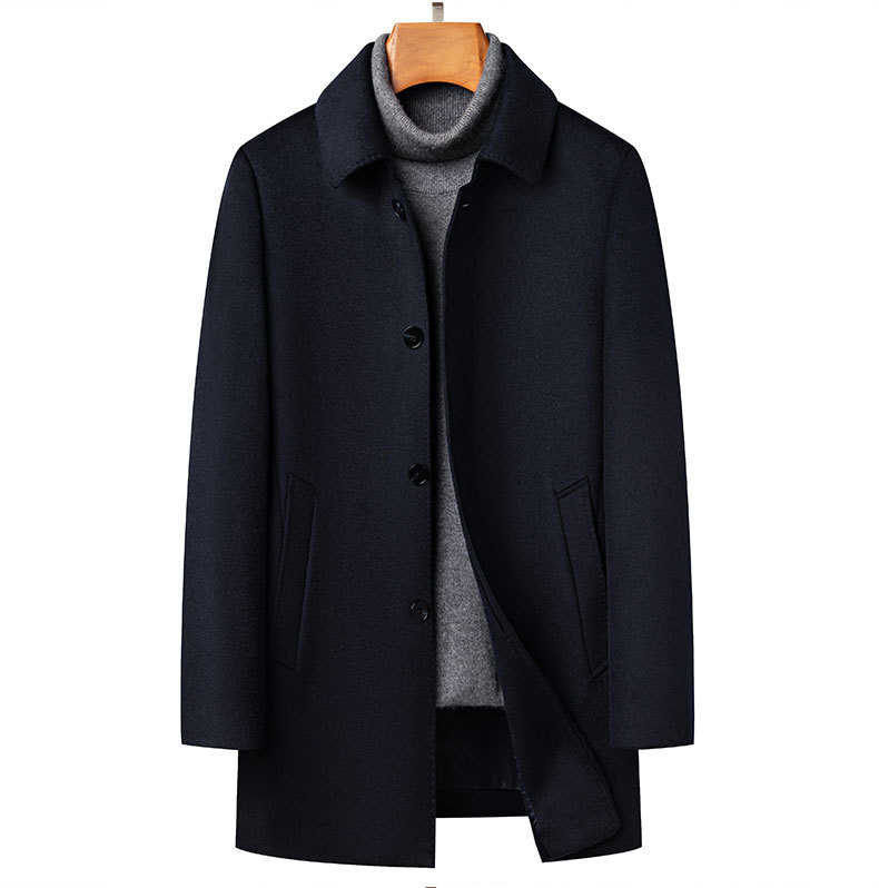 Abrigo de lana para hombres de negocios de longitud media engrosada ganso de mediana edad y ancianos otoño e invierno abrigo de lana de Cachemira papá desgaste transfronterizo