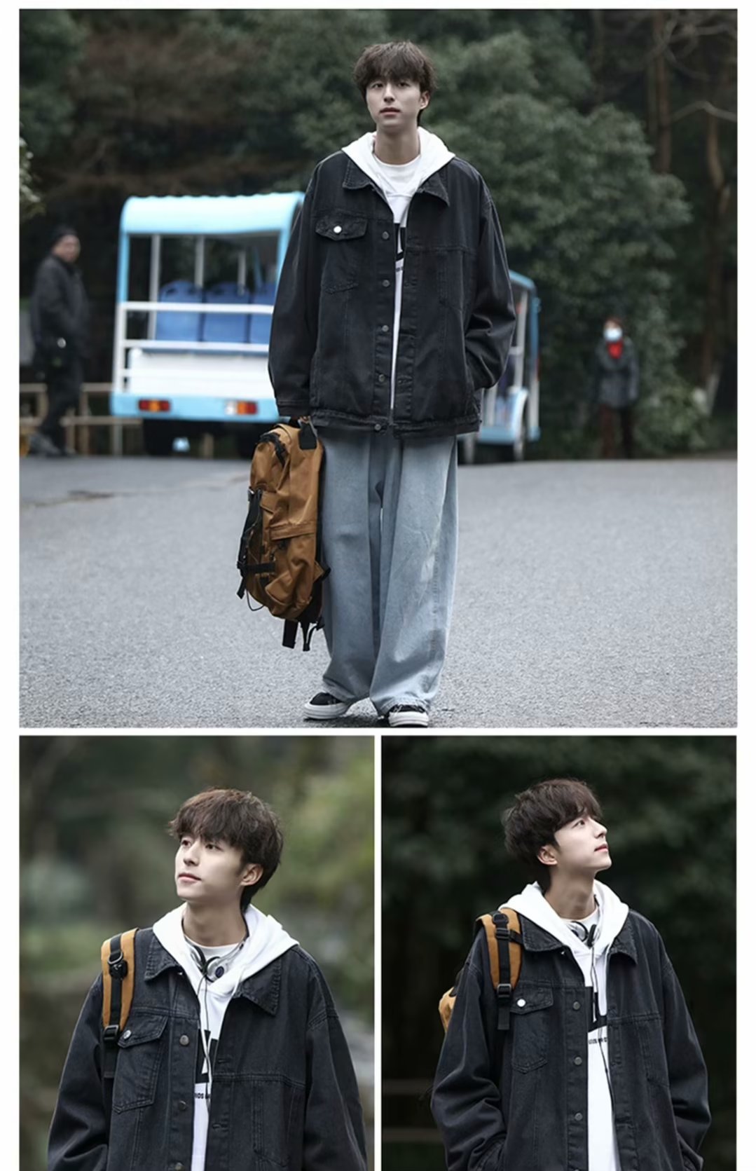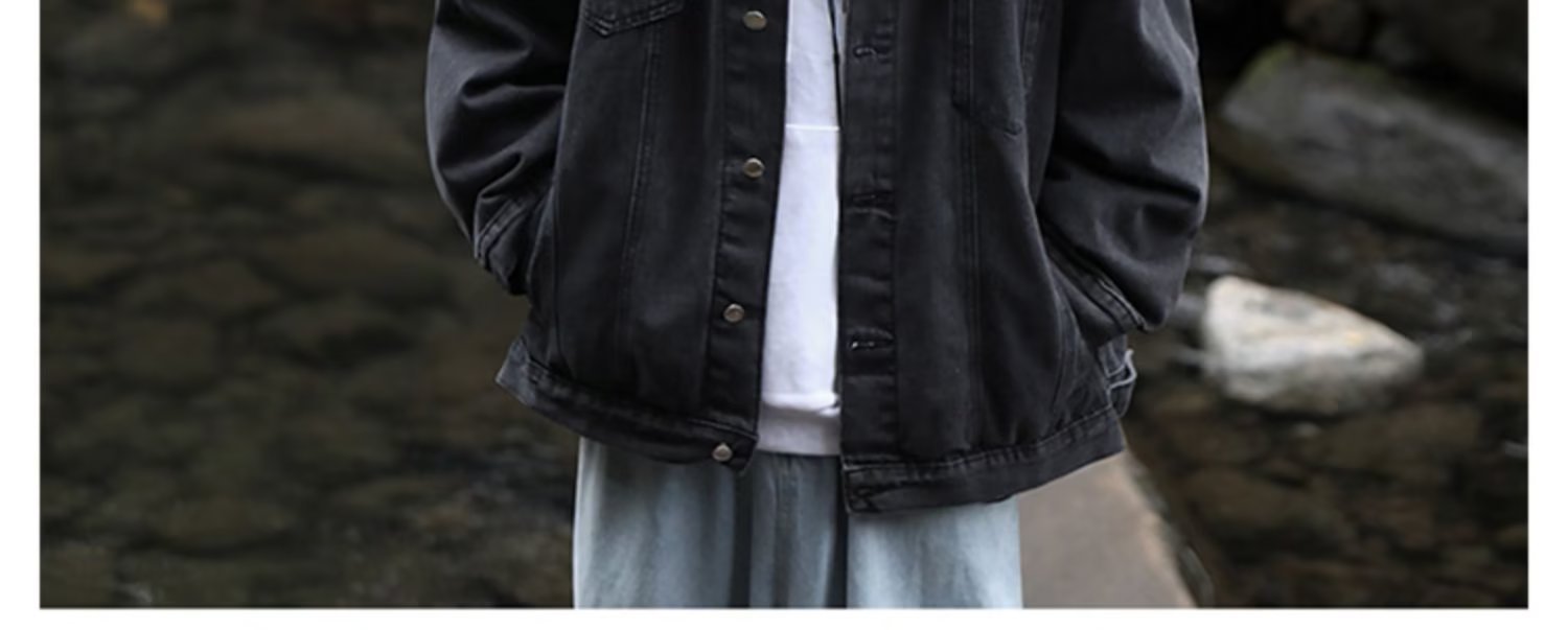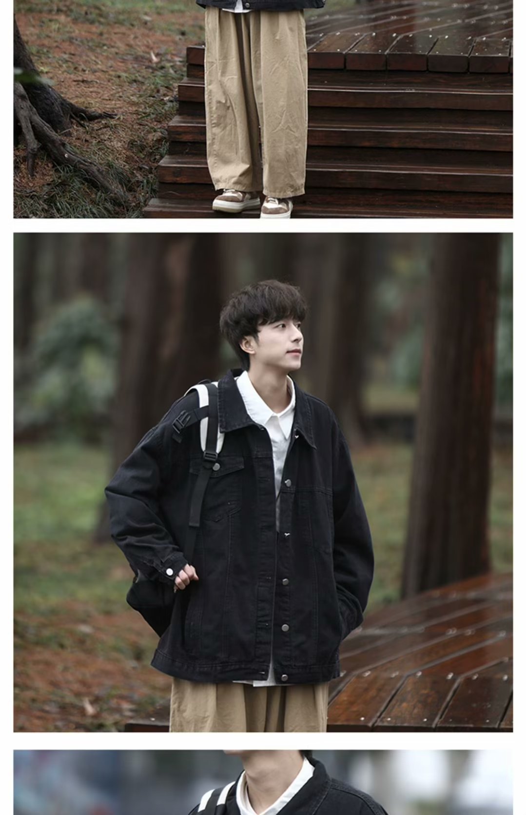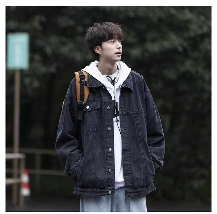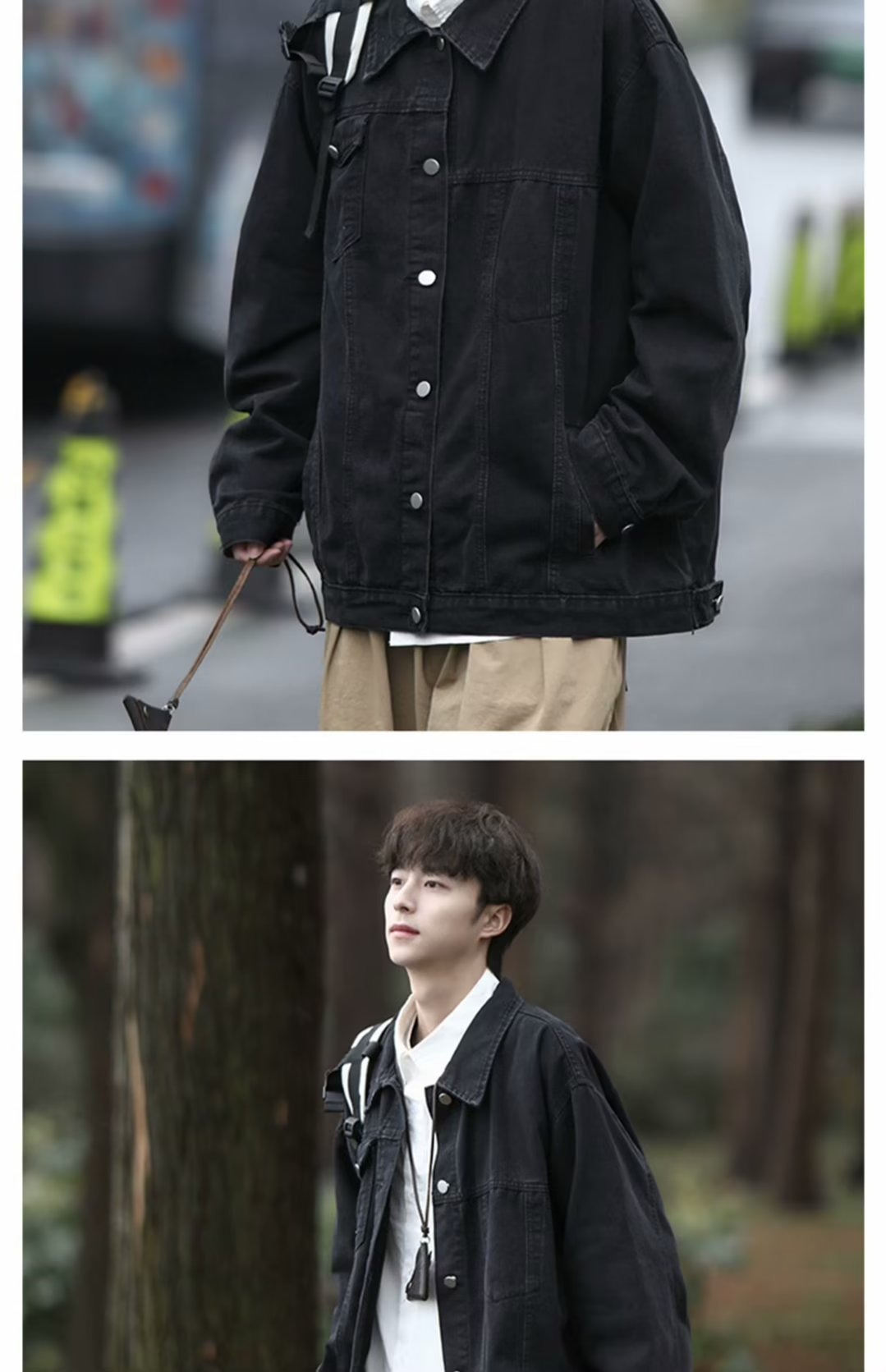 Primavera y verano nuevo estilo chaqueta de mezclilla para hombre American High Street marca de moda herramientas chaqueta de tendencia retro fino negro