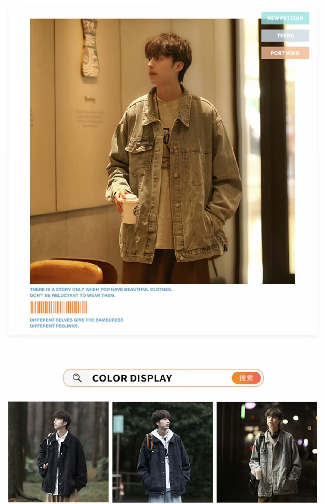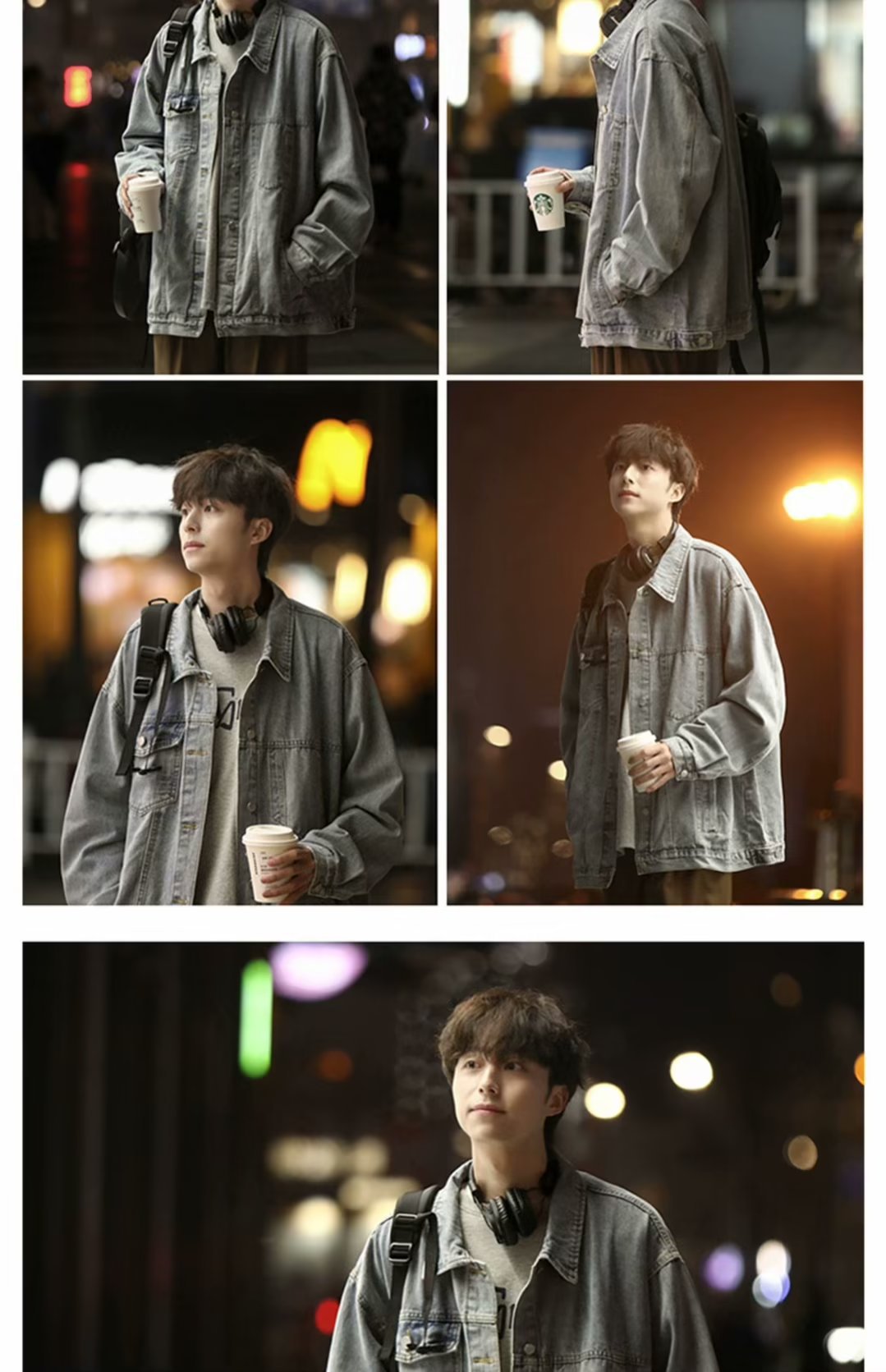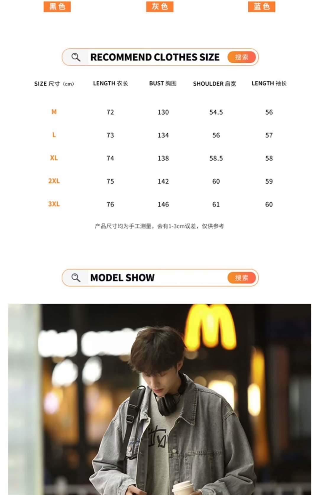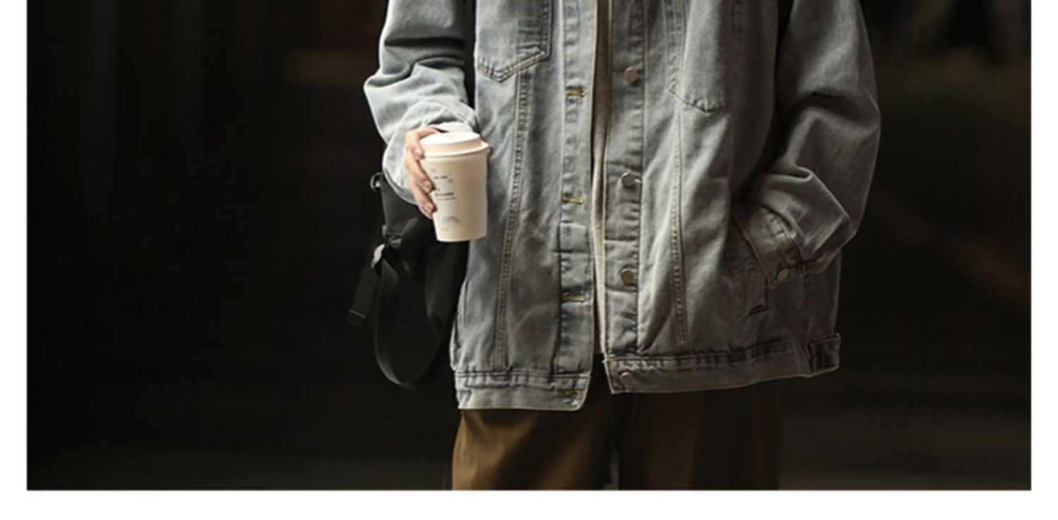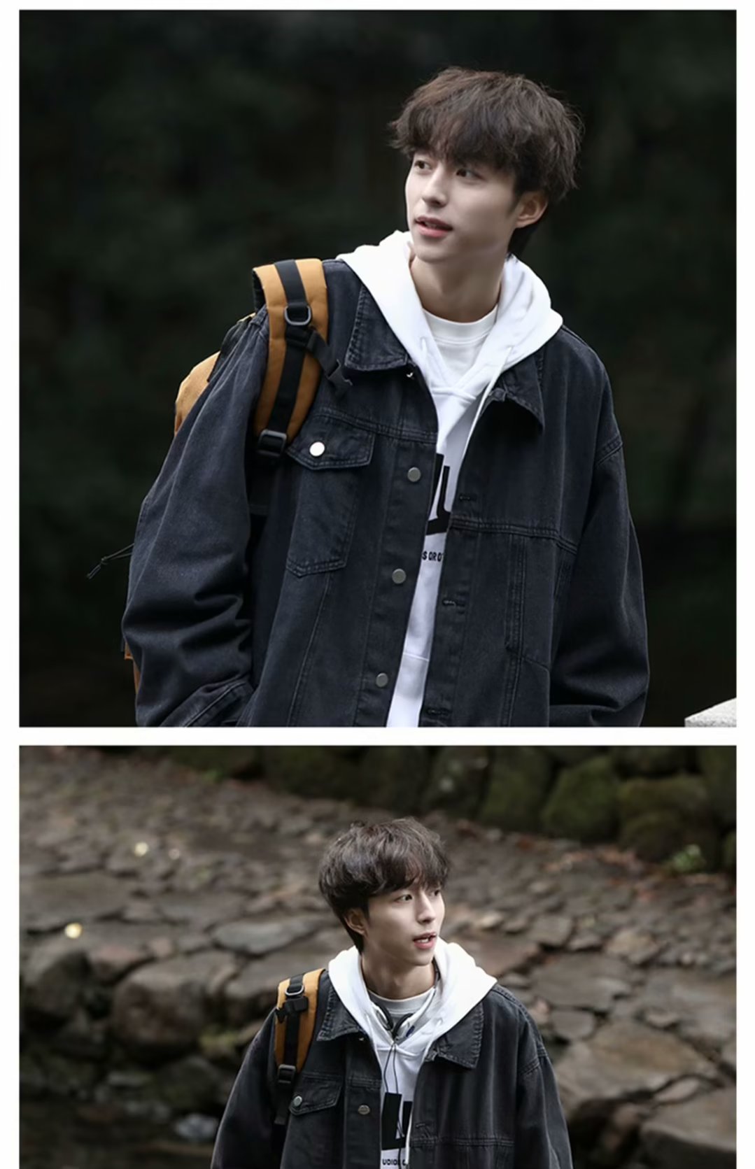 Primavera y verano nuevo estilo chaqueta de mezclilla para hombre American High Street marca de moda herramientas chaqueta de tendencia retro fino negro