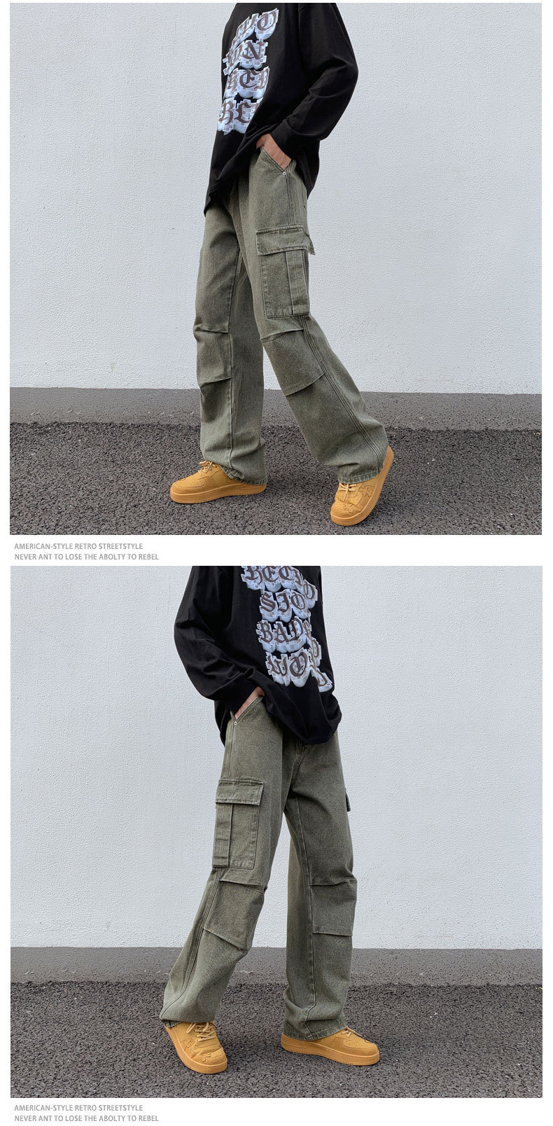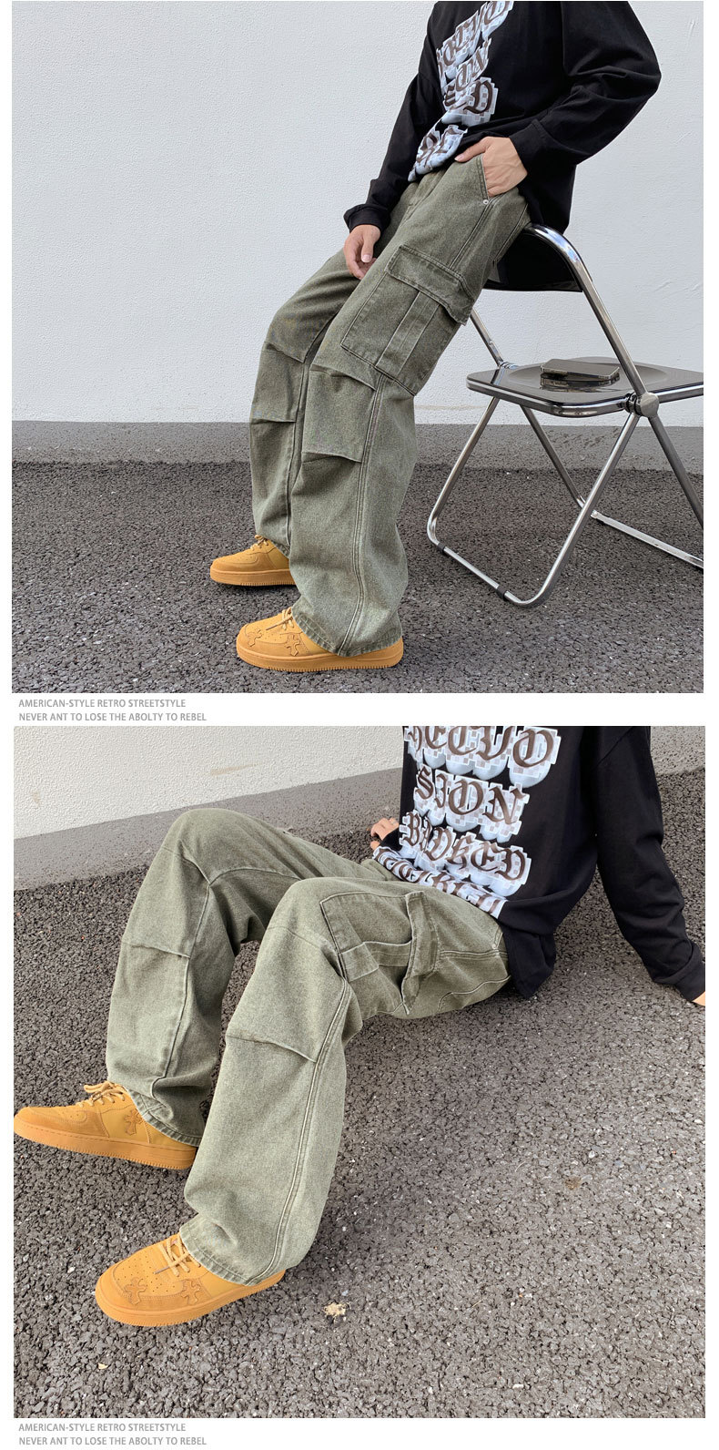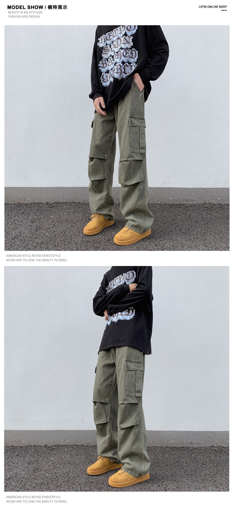 Lktm hombres # americano retro verde del ejército paracaidista trajes de los VIbe Loose straight casual Denim Pantalones