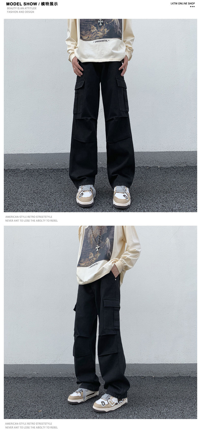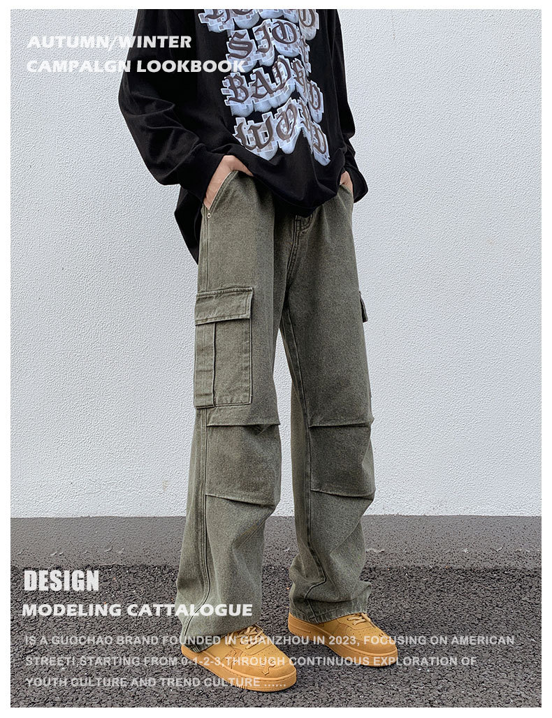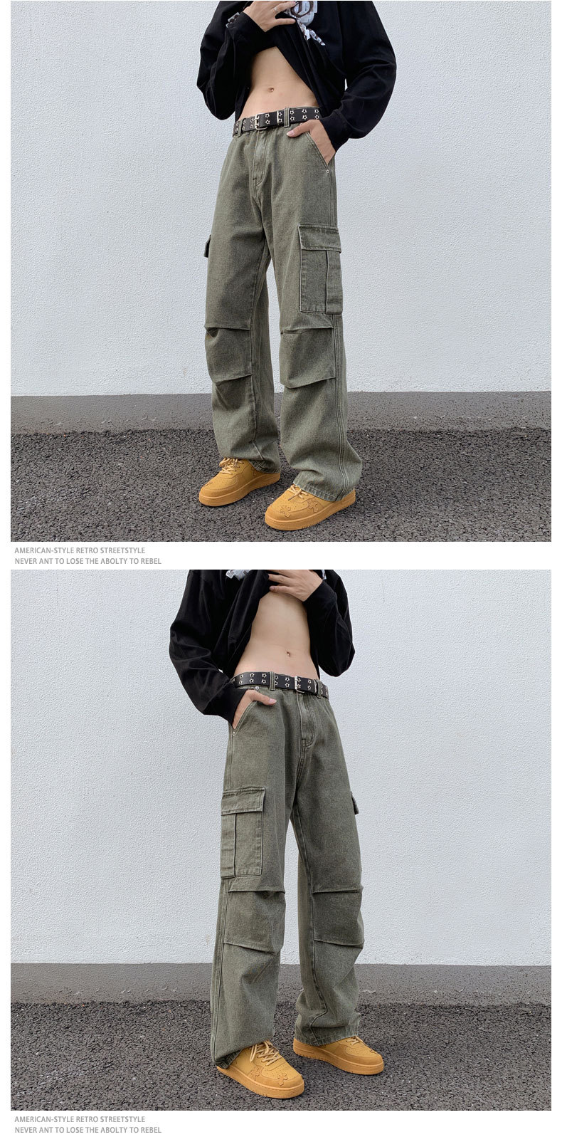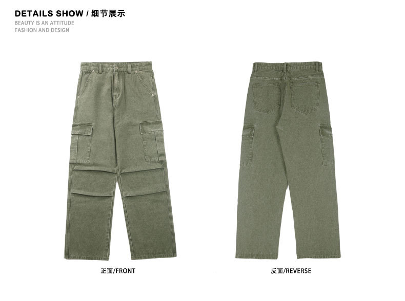 Lktm hombres # americano retro verde del ejército paracaidista trajes de los VIbe Loose straight casual Denim Pantalones