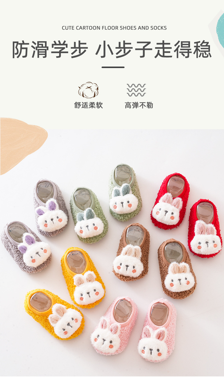 Lindo conejo Otoño e Invierno calcetines de piso Calcetines antideslizantes zapatos de piso calcetines engrosados calcetines de bebé calcetines de Interior para niños pequeños
