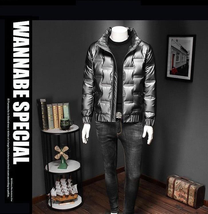 Invierno engrosada abajo de algodón-acolchado chaqueta de moda de los hombres collar brillante abajo chaqueta caliente Chaqueta corta