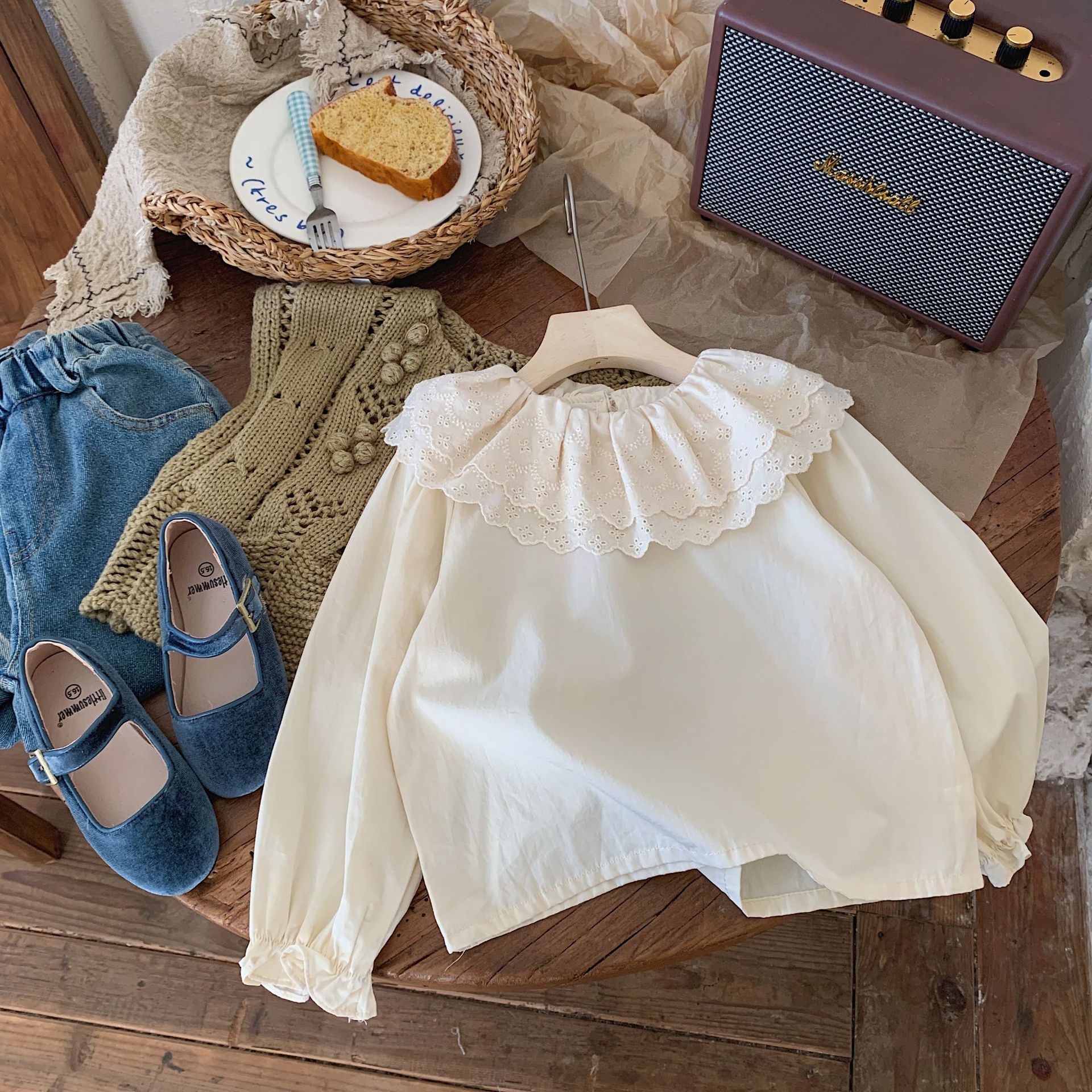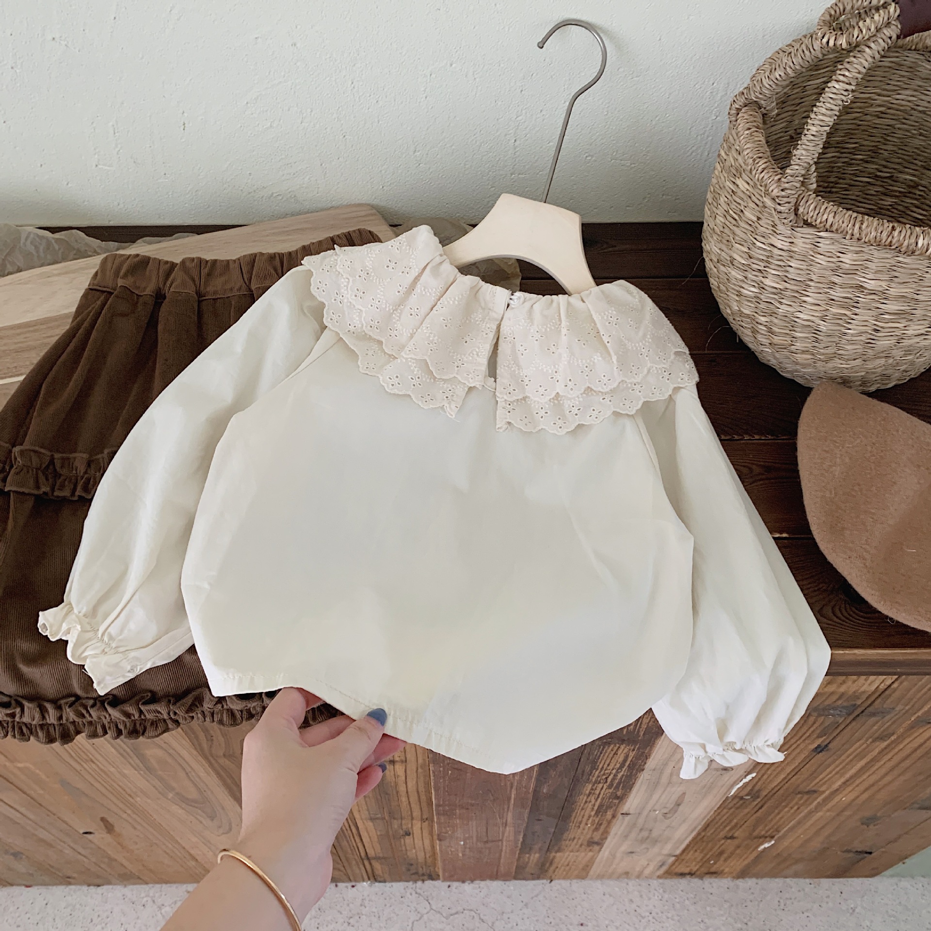 Ropa para niños camisa de cuello de muñeca para niñas 2024 Primavera y otoño Nueva camisa de cuello de loto para niñas de estilo coreano camisa de manga larga para niños