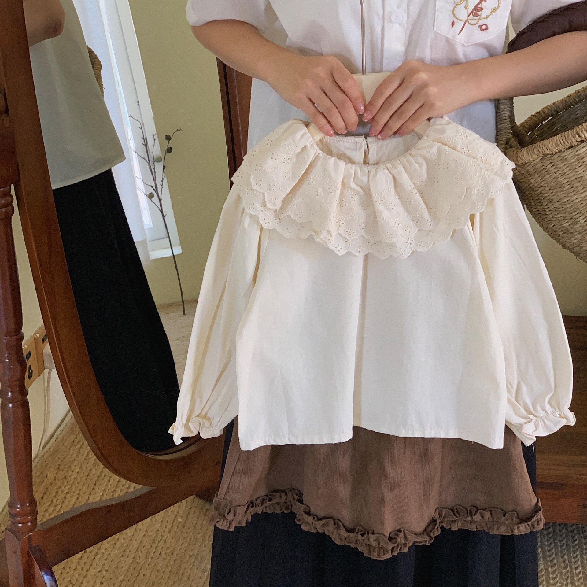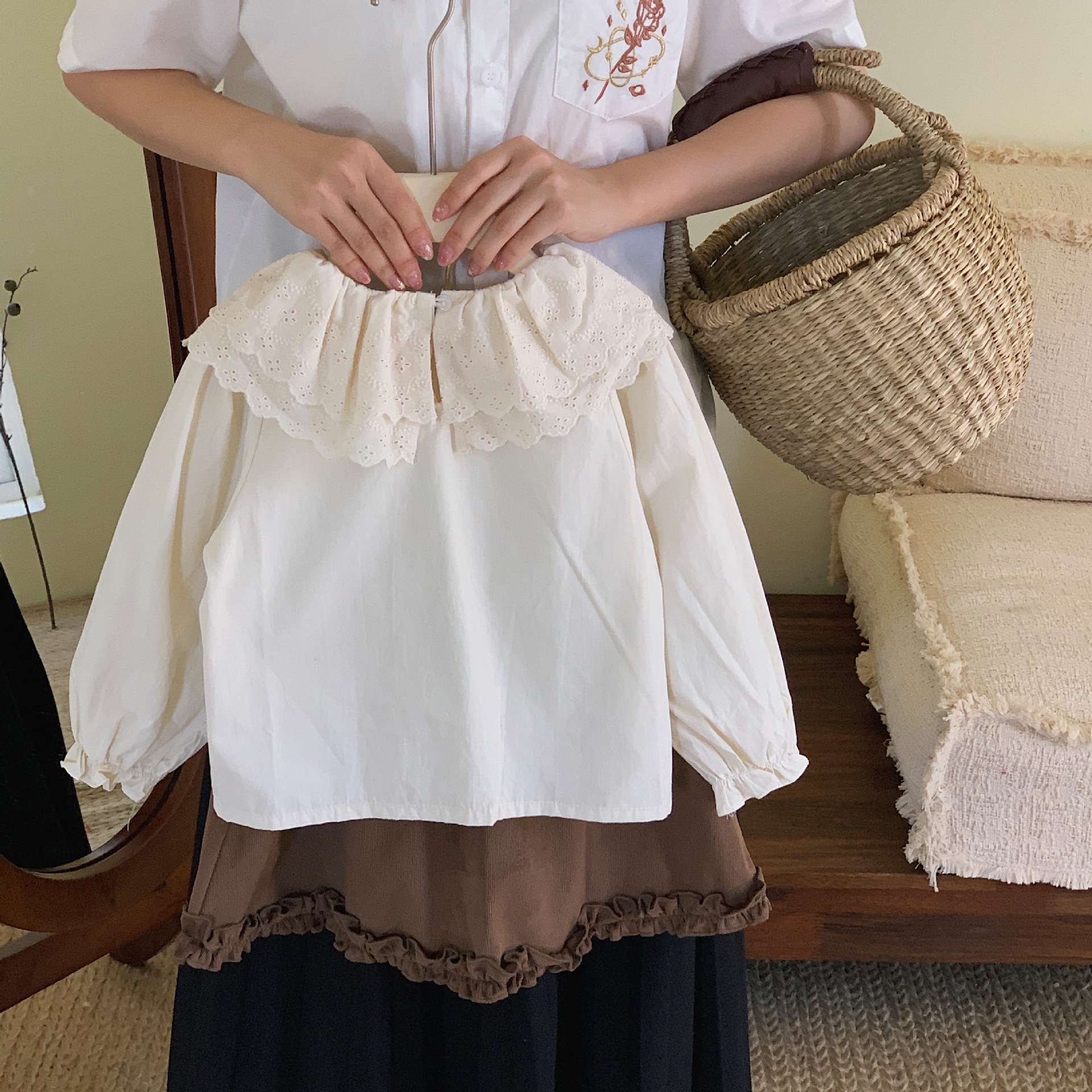| Colores | Camisa de cuello doble beige (en stock) |