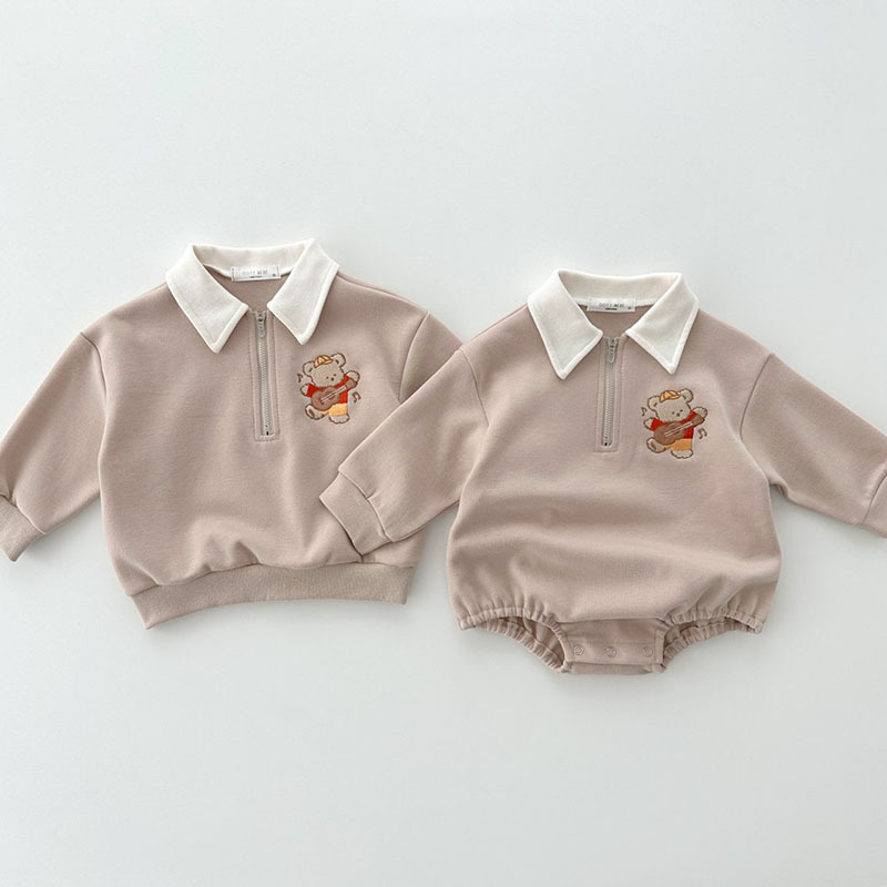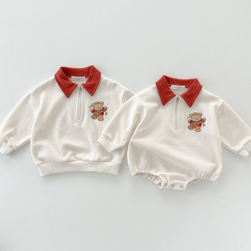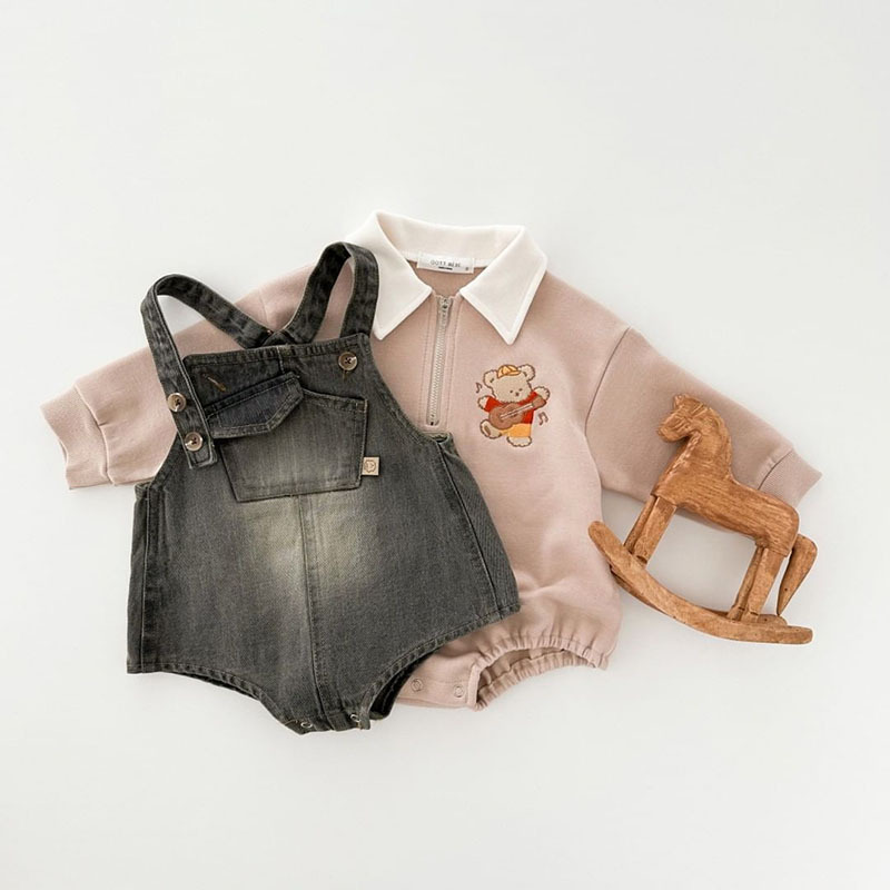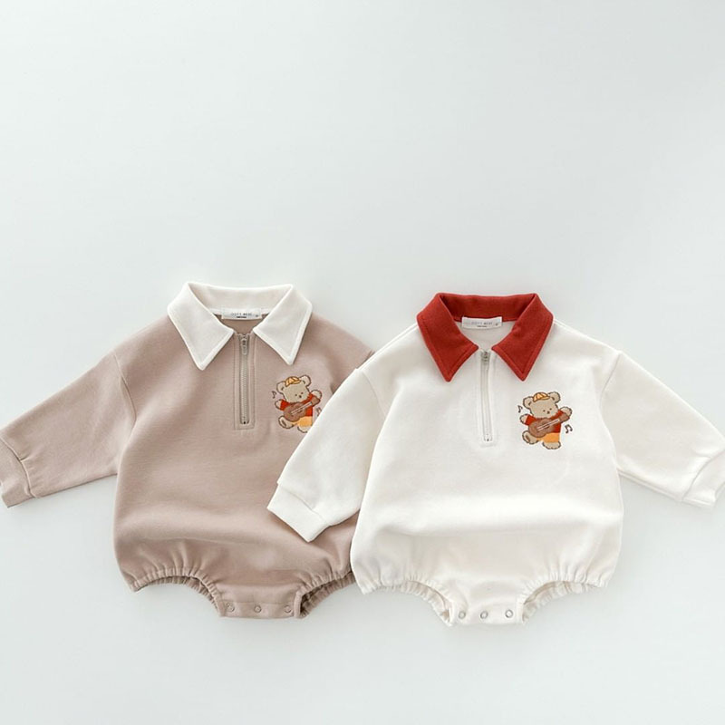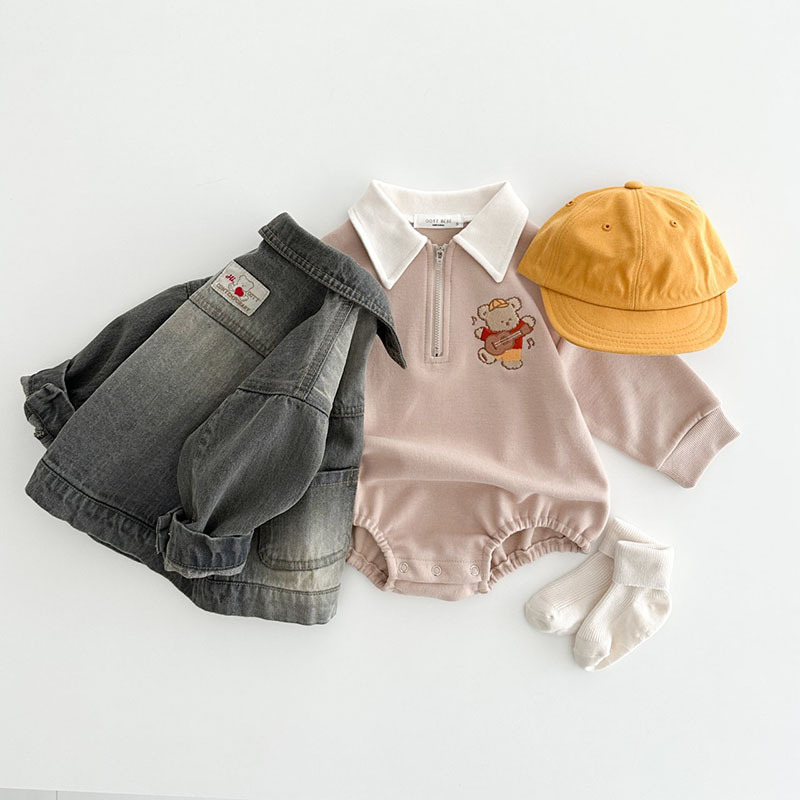 Ropa Infantil de Otoño Estilo Coreano, Mono de Manga Larga con Bordado de Oso y Solapa de Algodón para Niños y Niñas